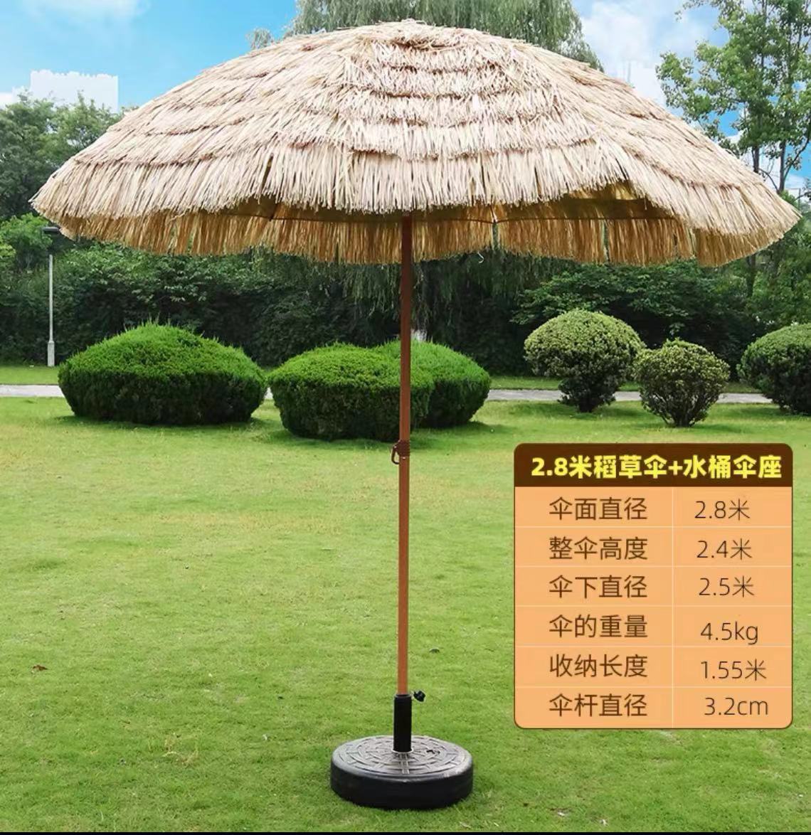 顏色分類 【2 米】單頂稻草傘+傘坐,【2.4米】單頂稻草傘+傘坐,【2.8米】單頂稻草傘+傘坐,【3.0米】單頂稻草傘+傘坐,【2 米】單頂稻草傘+傘坐+蛋卷桌+4大號摺疊椅,【120*60*45】蛋卷桌+4大號摺疊椅,【90*90*43】八角蛋卷桌+4大號摺疊椅