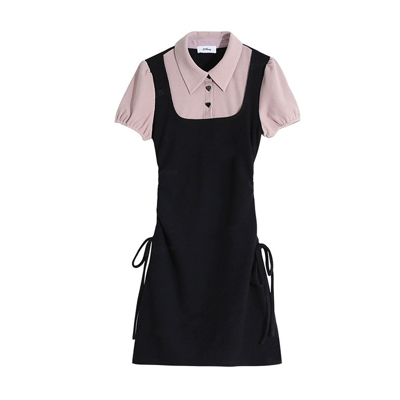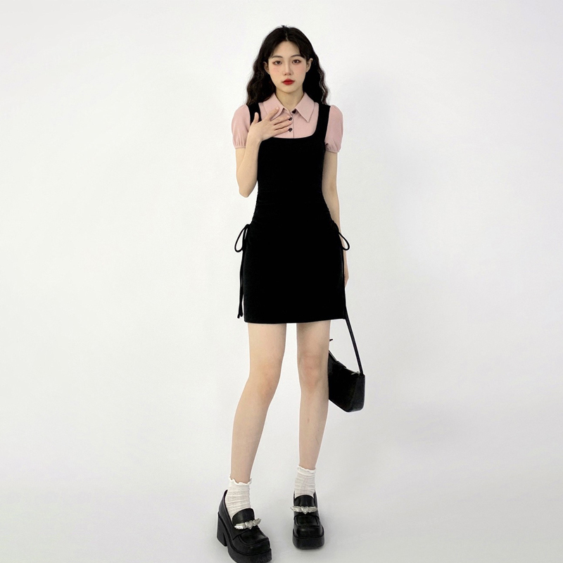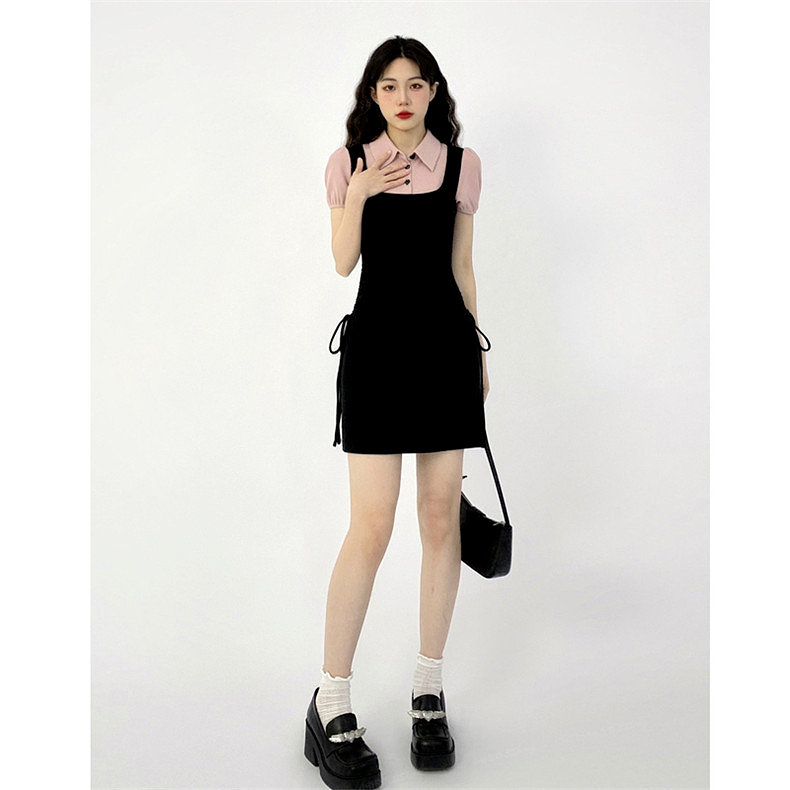 顏色分類 【黑色】【Polo裙/假兩件洋裝/辣妹套裝/氣質/收腰/夏裝搭配一整套/2023新款/溫柔系炸街奶乖套裝/小個子穿搭一整套/Polo洋裝/甜辣套裝】