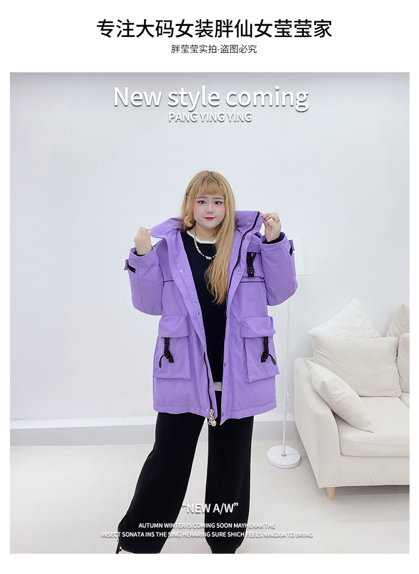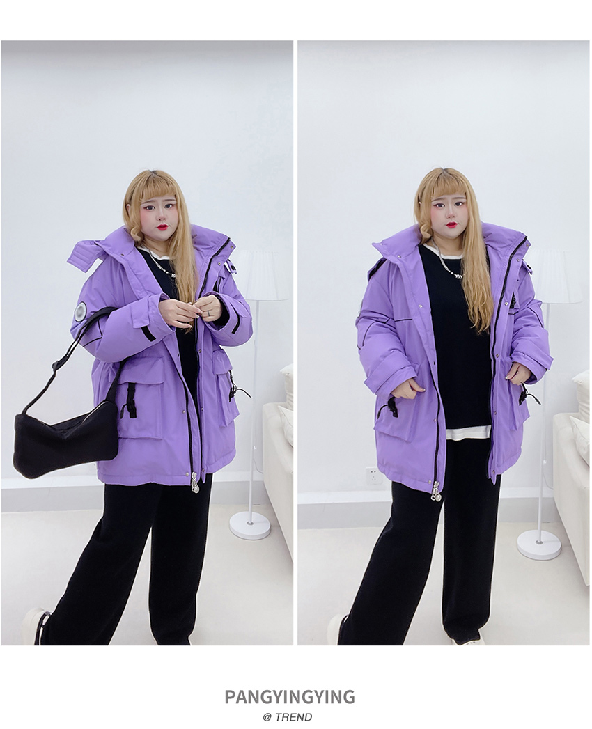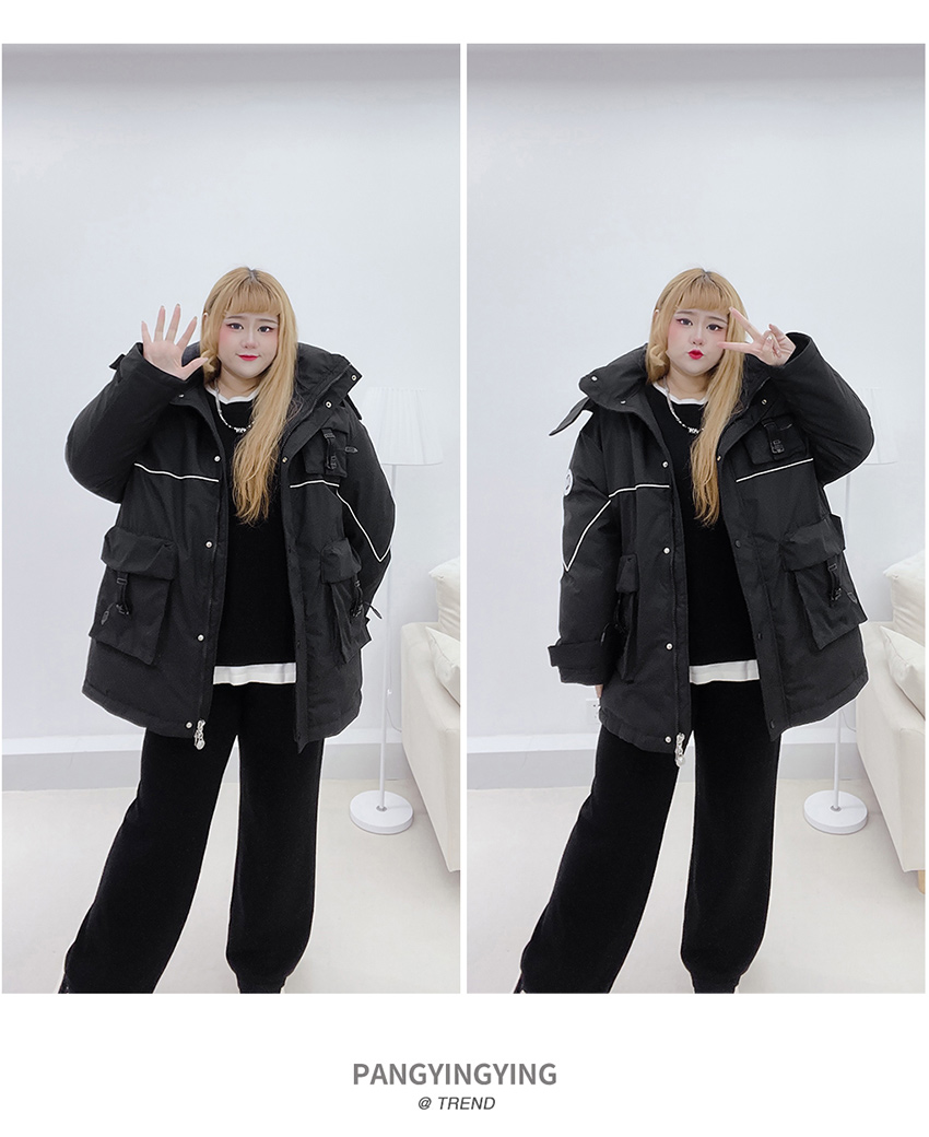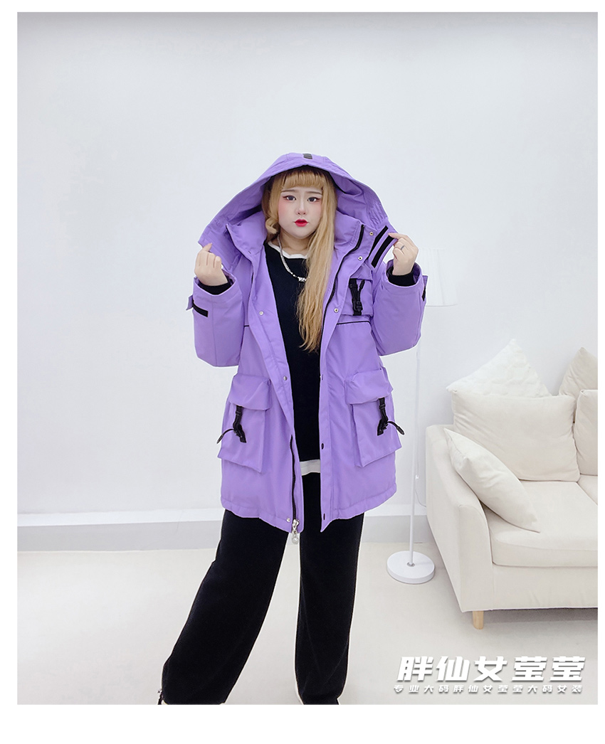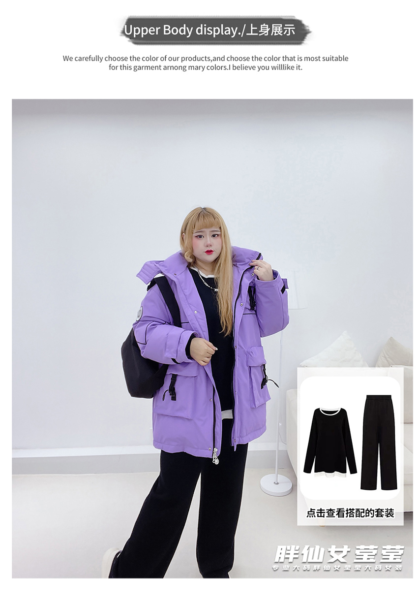 胖瑩瑩大尺碼女裝新款冬季胖mm時尚工裝防風加肥加厚保暖連帽羽絨外套