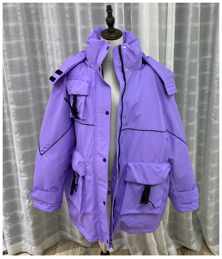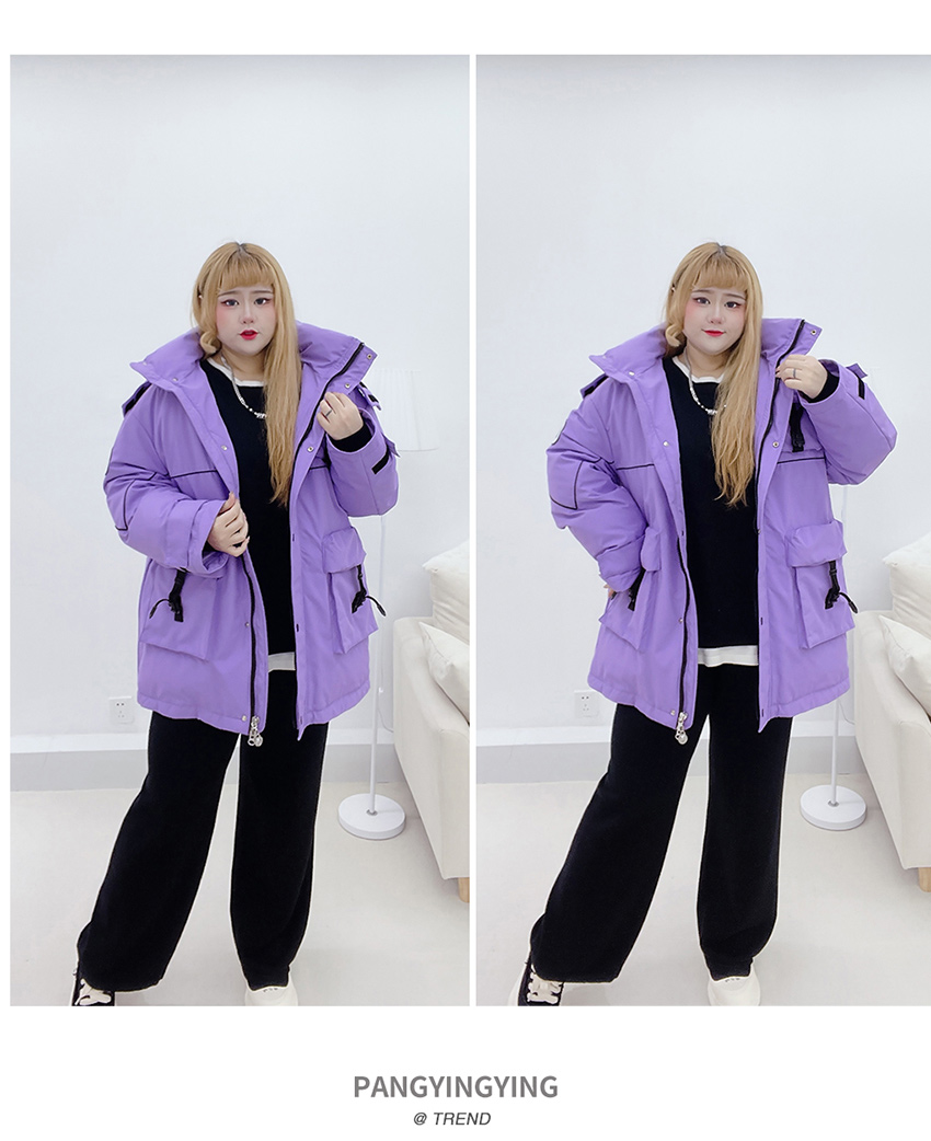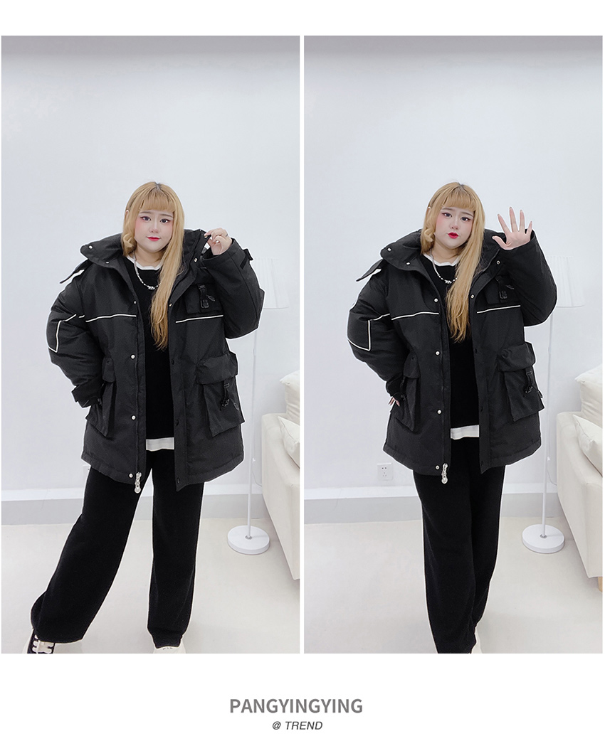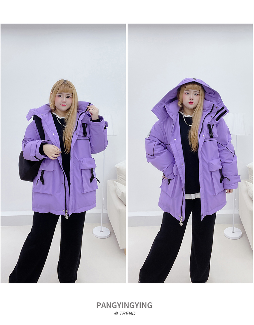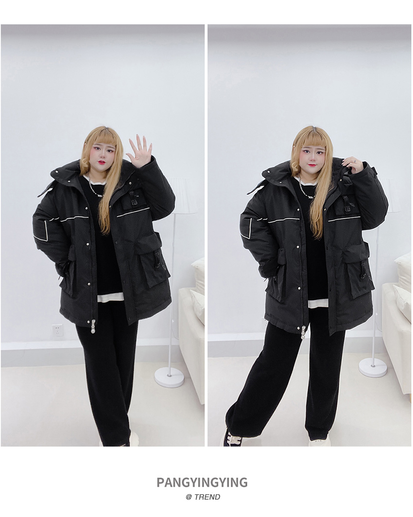 胖瑩瑩大尺碼女裝新款冬季胖mm時尚工裝防風加肥加厚保暖連帽羽絨外套