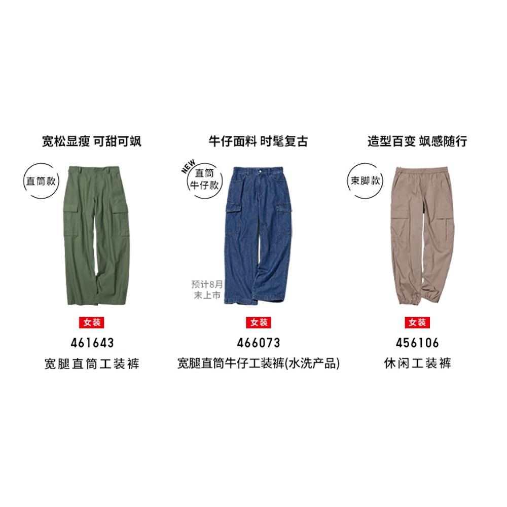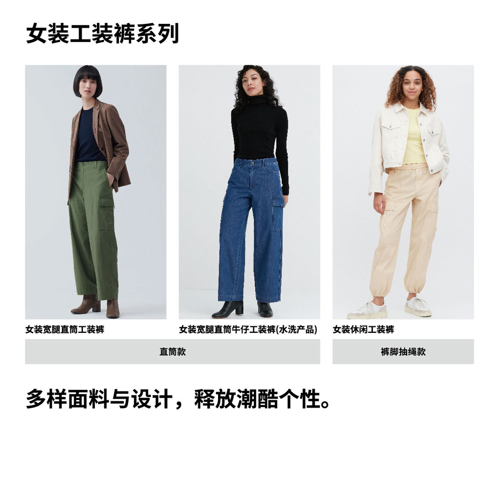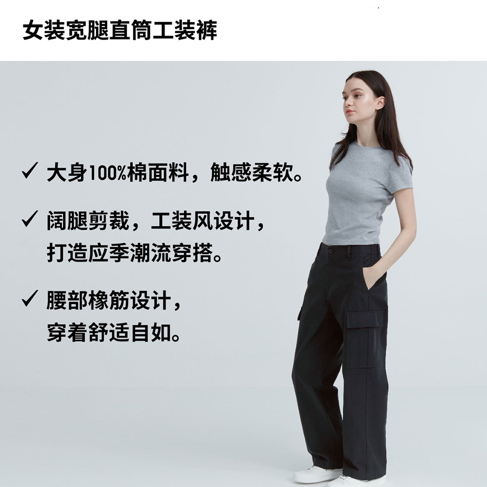 Uniqlo 女裝 寬腿直筒工裝褲(大口袋 寬鬆 休閒褲 闊腿褲)461643