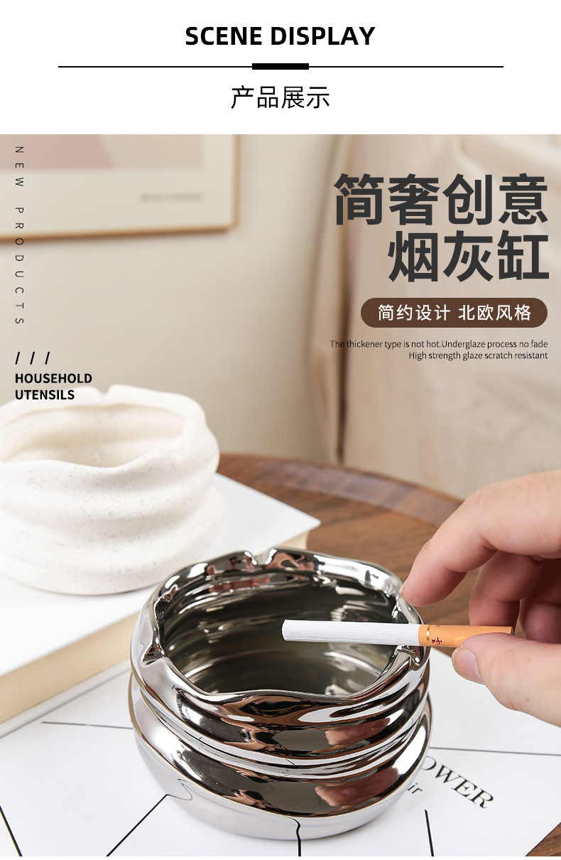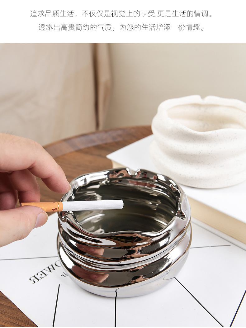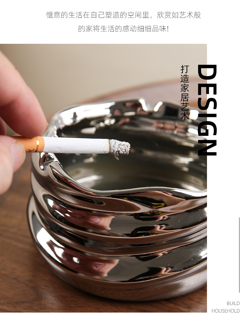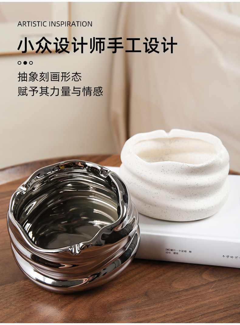 创意陶瓷烟灰缸北欧风家用客厅创意个性小众镜面陶瓷烟缸收纳摆件