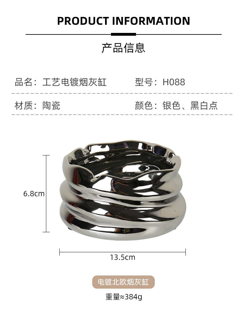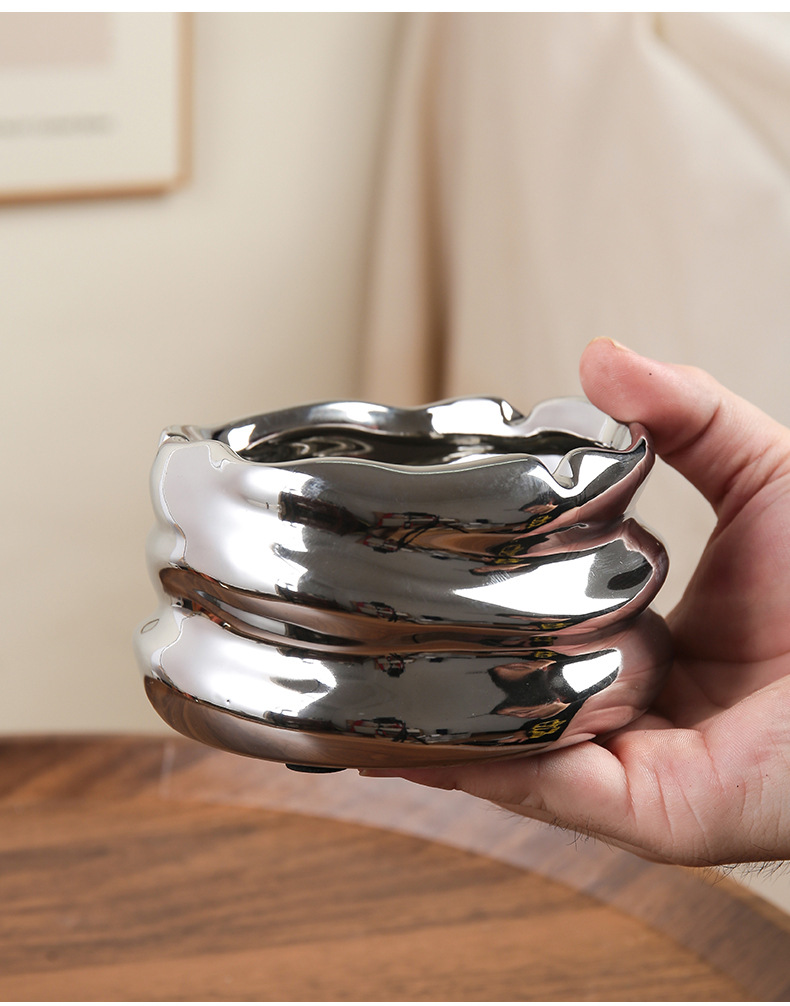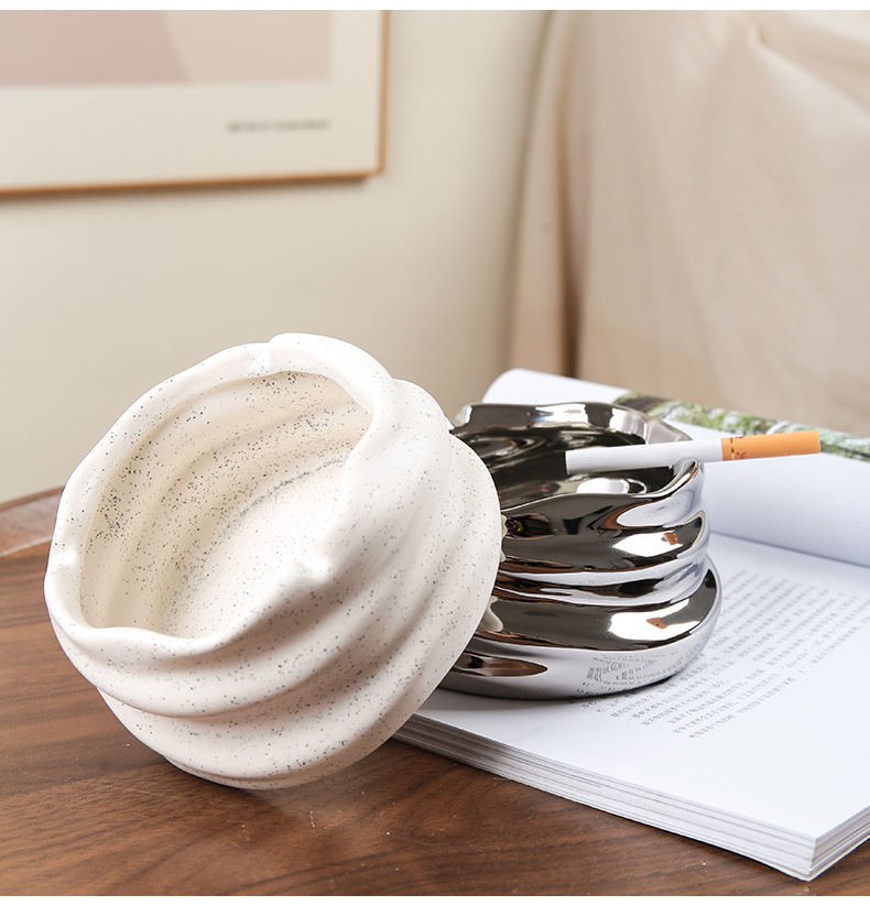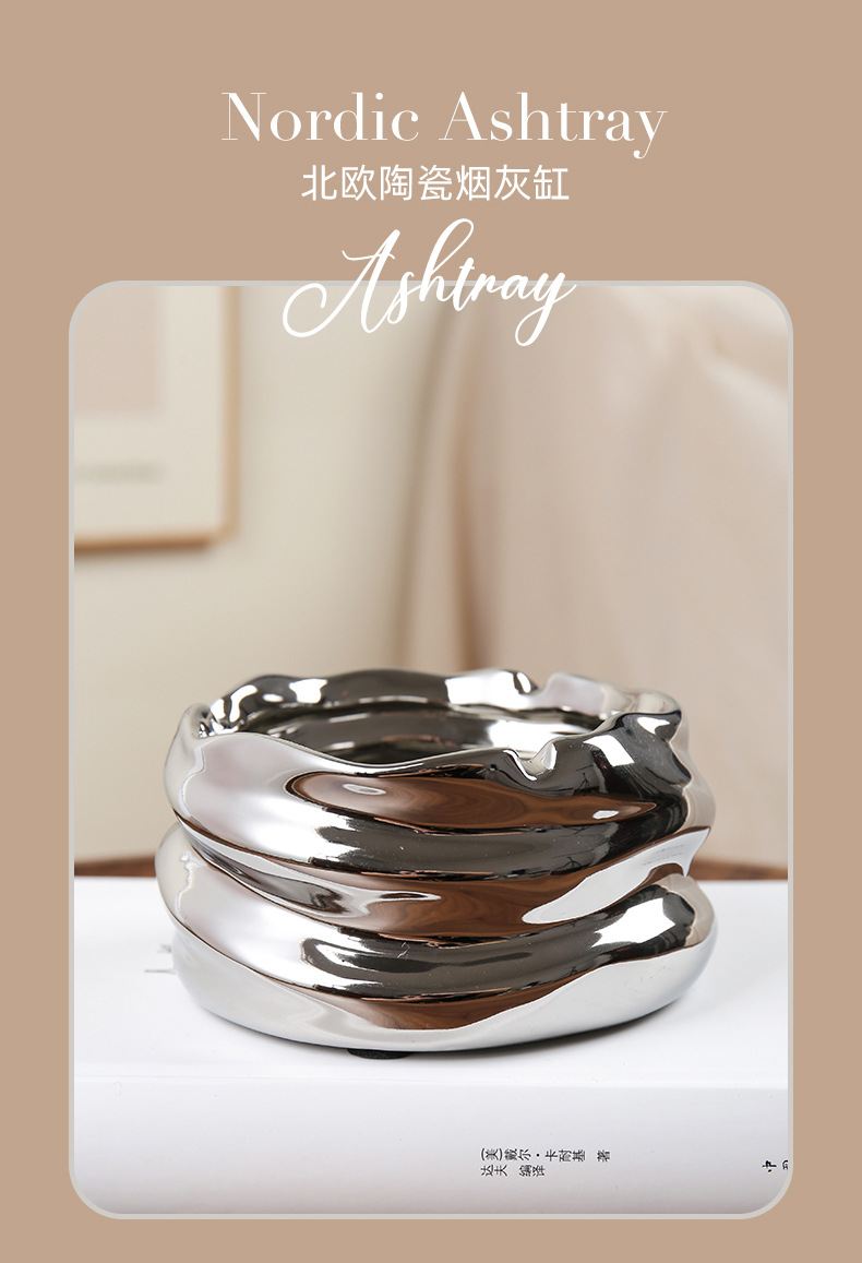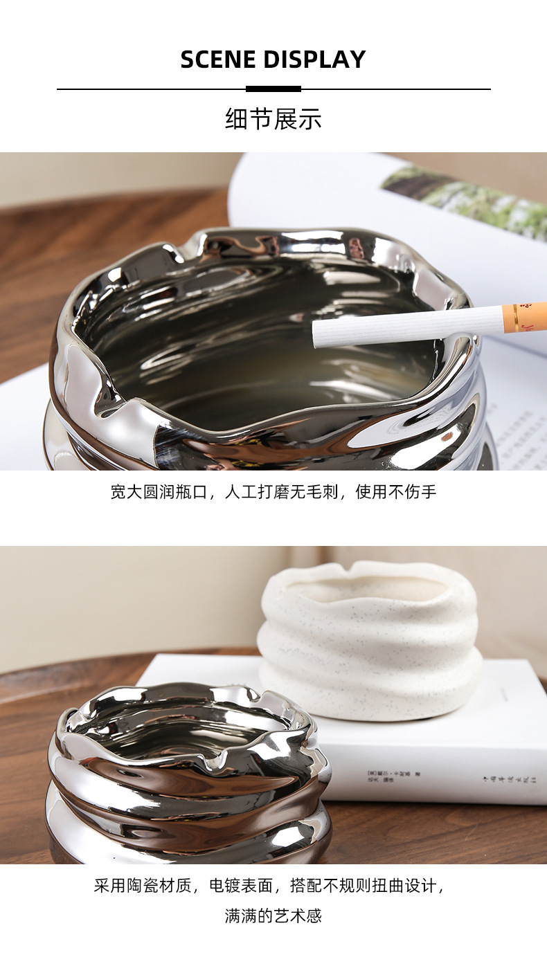 创意陶瓷烟灰缸北欧风家用客厅创意个性小众镜面陶瓷烟缸收纳摆件