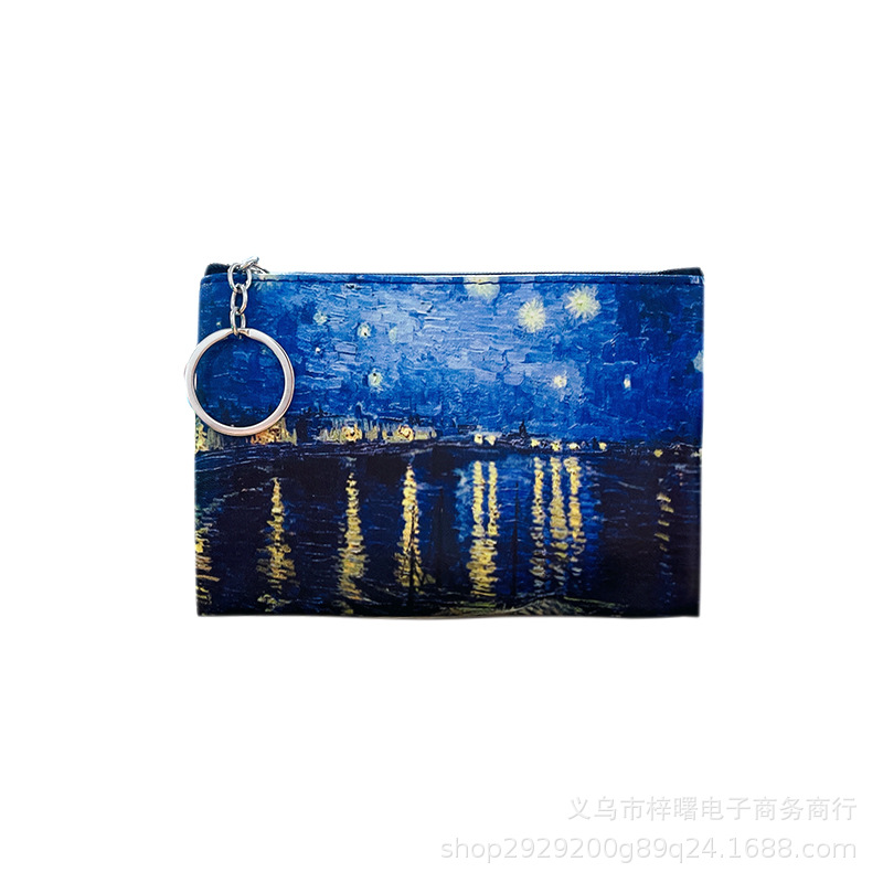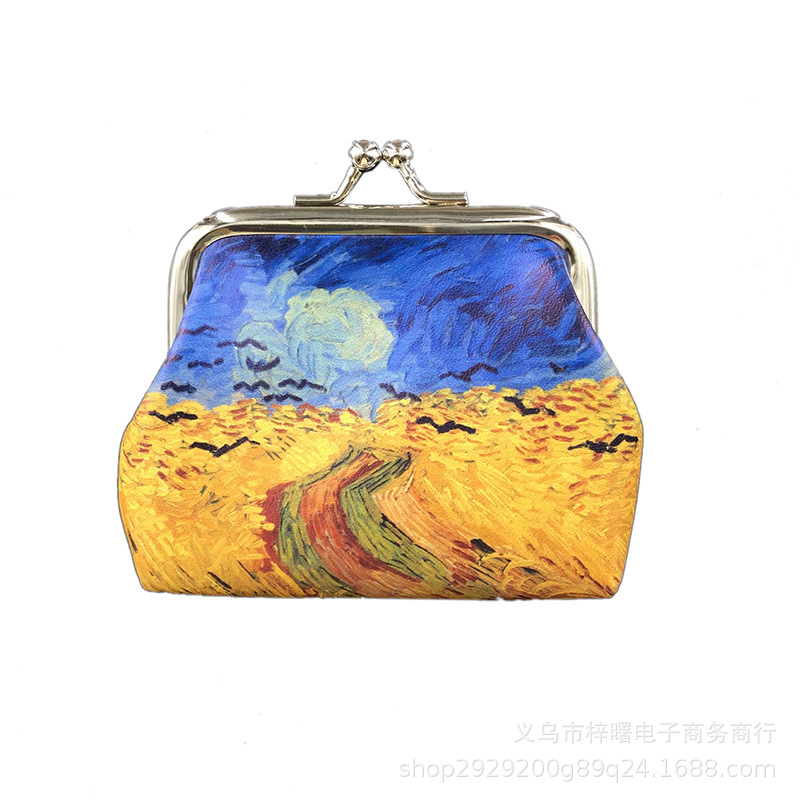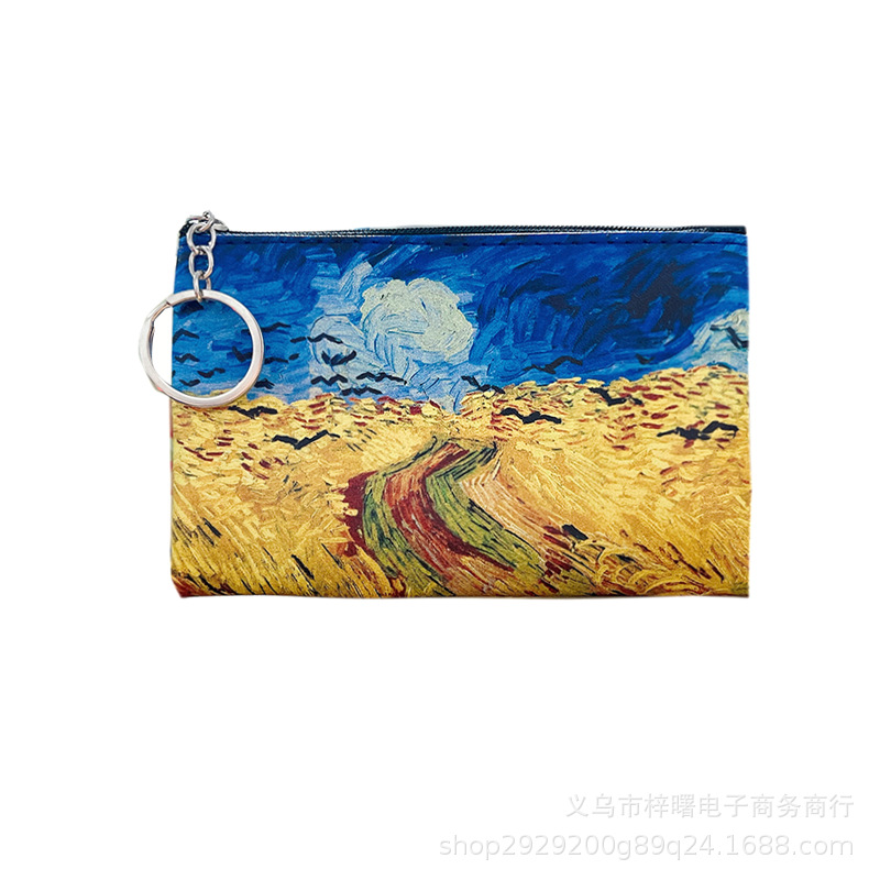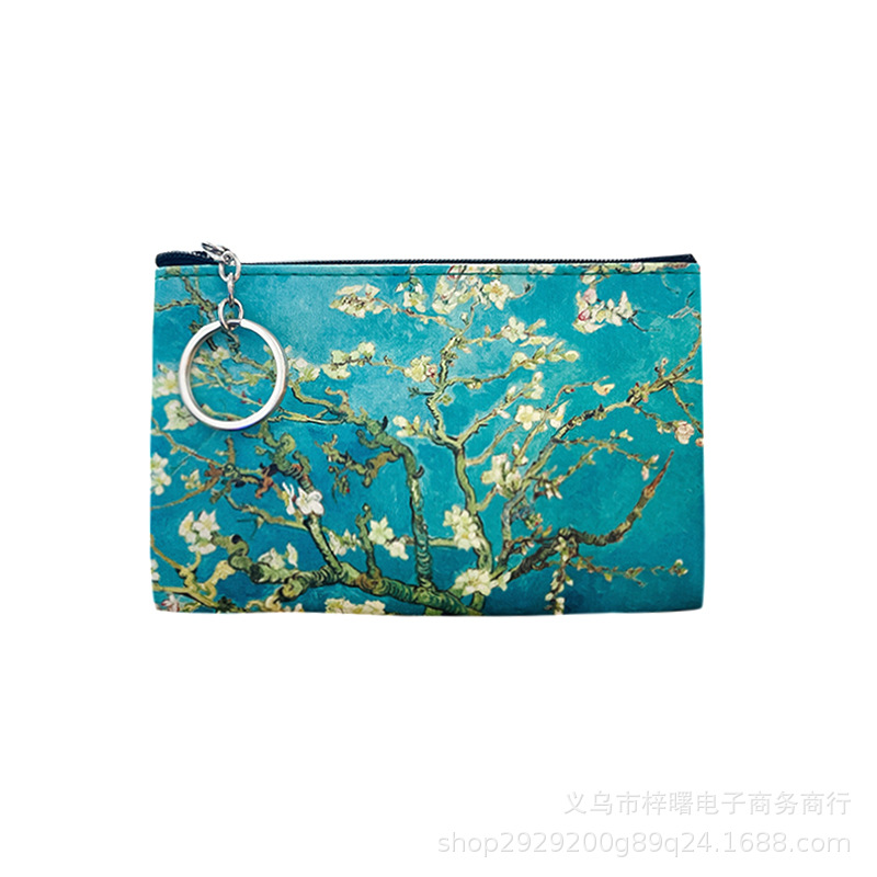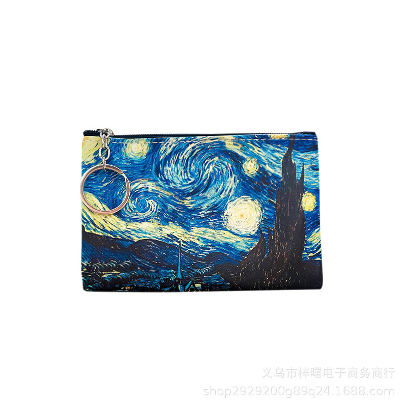 梵高油画硬币收纳包女士钥匙收纳包PU皮小零钱包