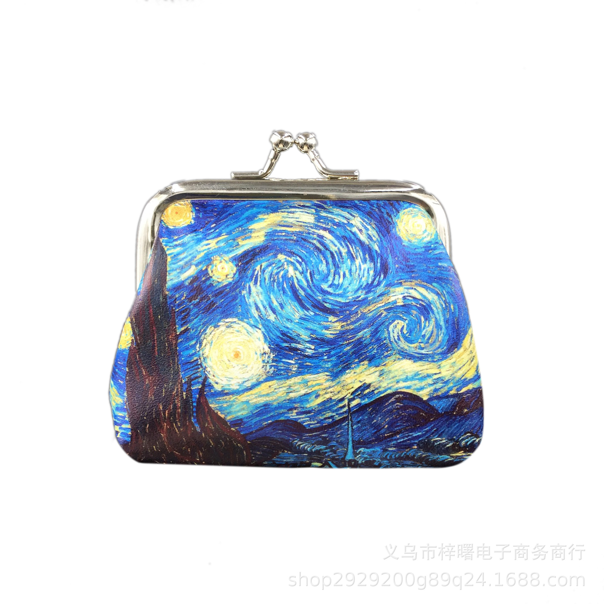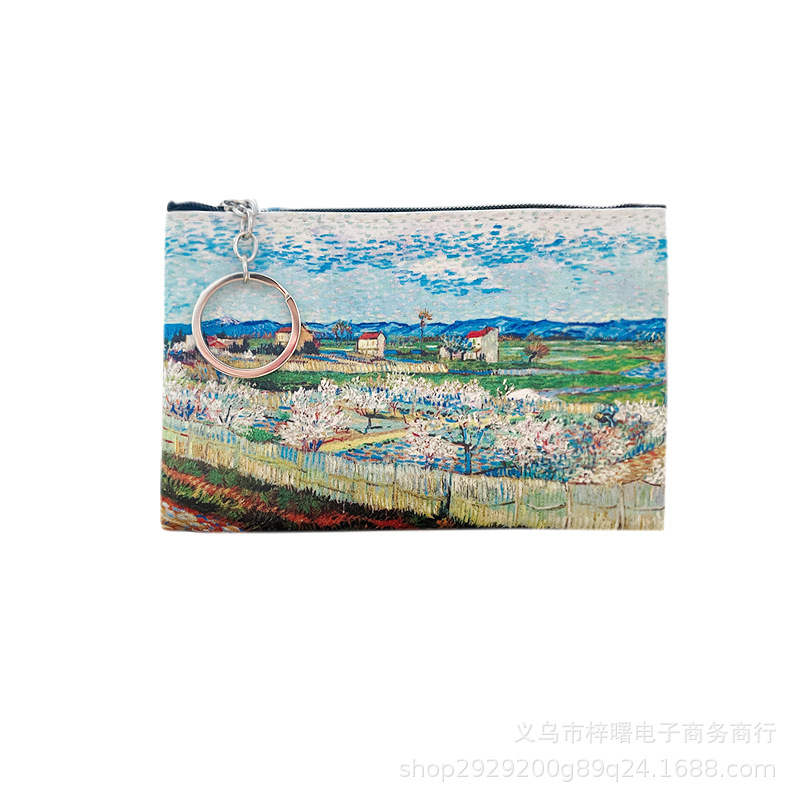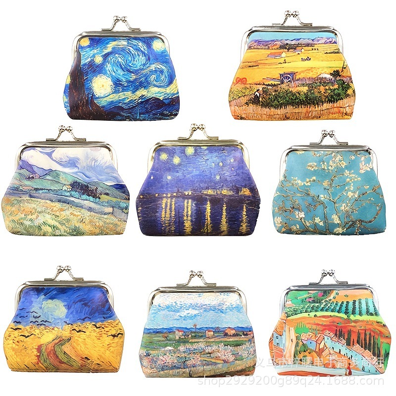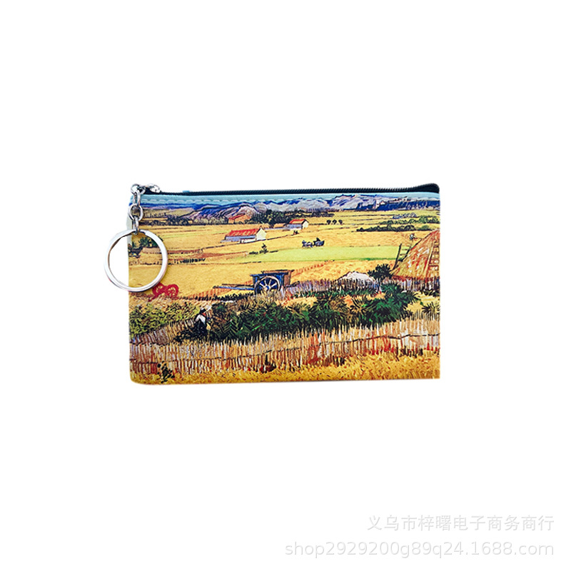 梵高油画硬币收纳包女士钥匙收纳包PU皮小零钱包