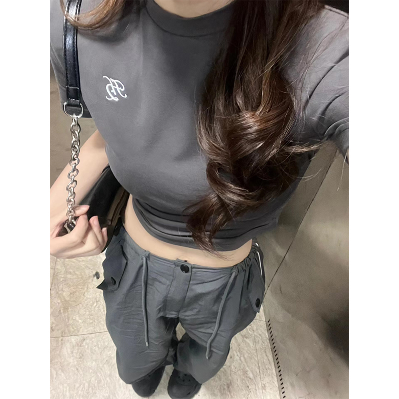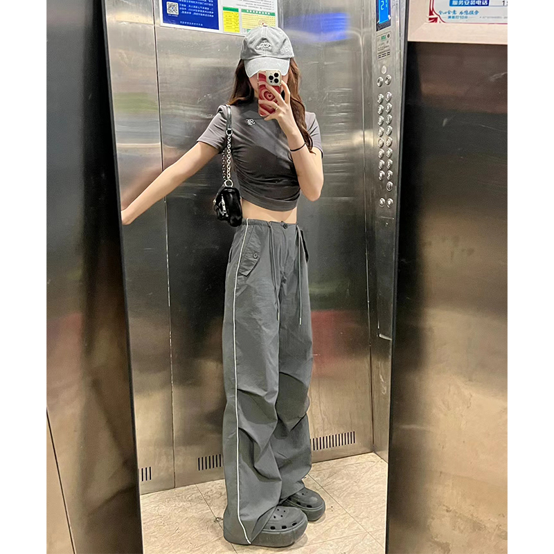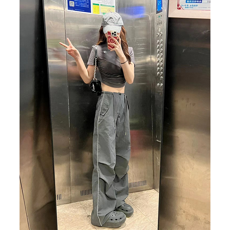 深灰白條速乾美式高街直筒工裝褲寬鬆運動褲女男顯瘦闊腿褲子秋潮