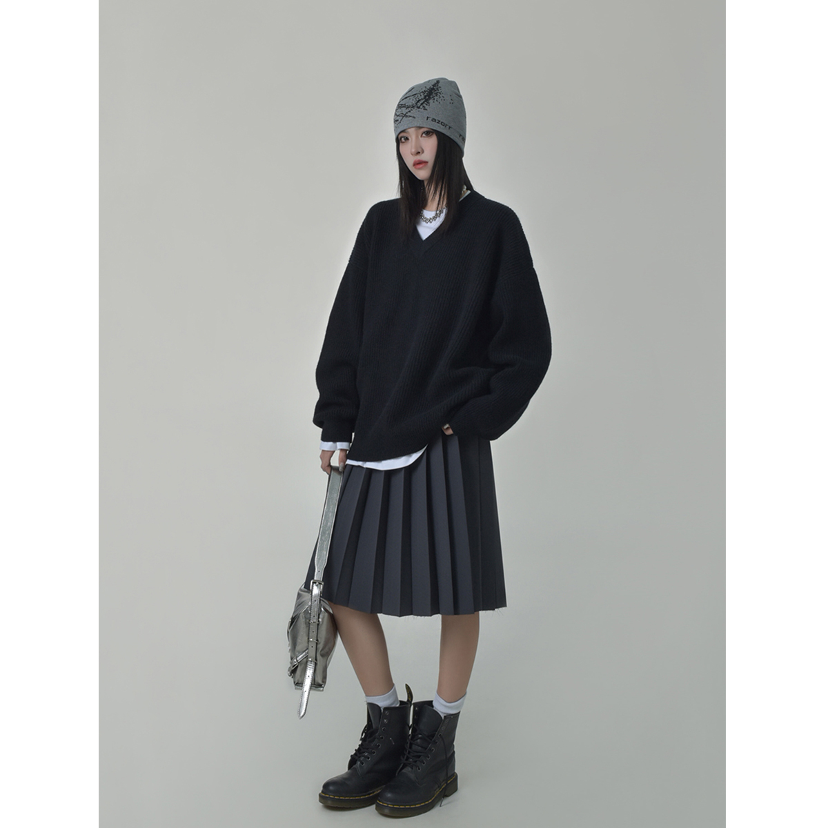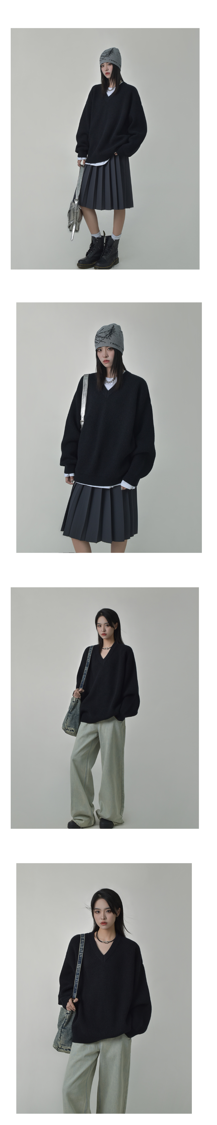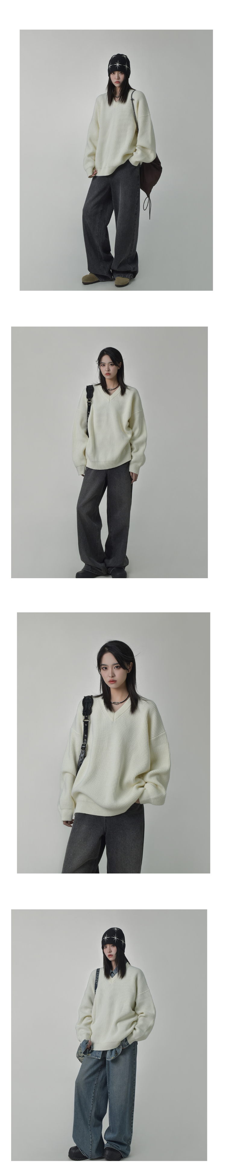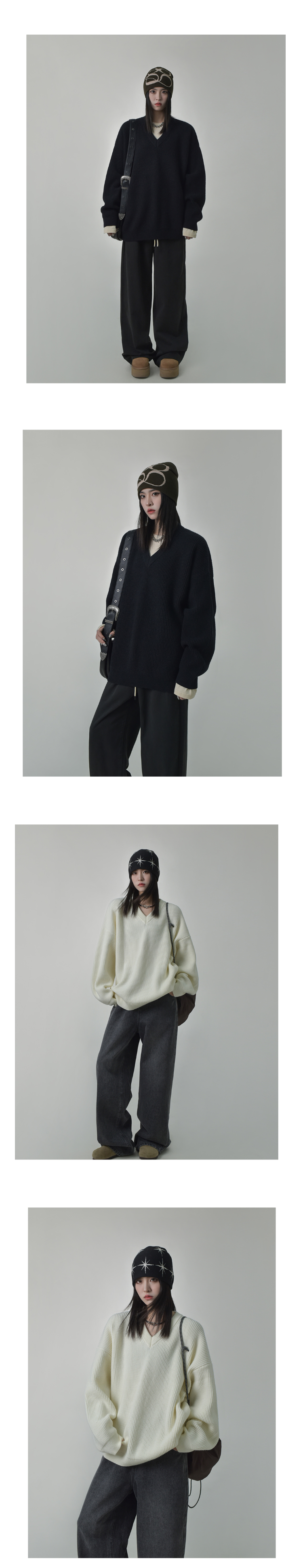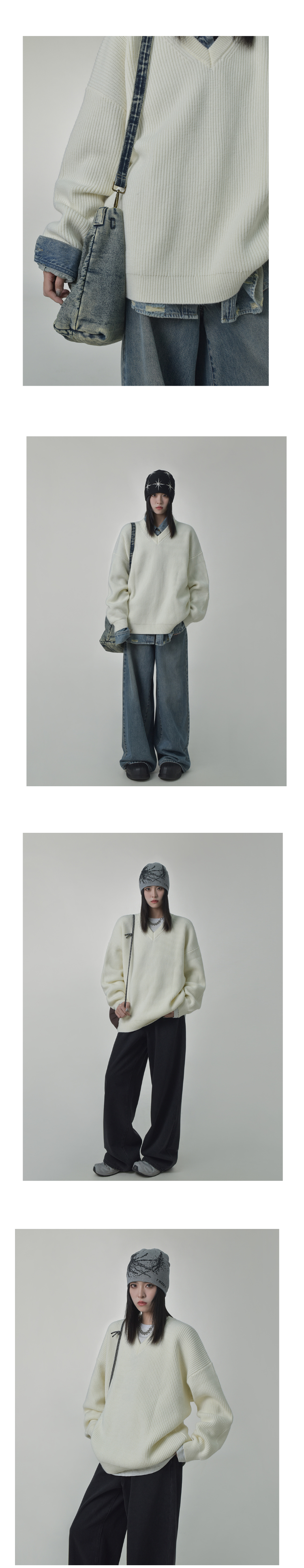 SIXI四喜家秋季 時髦慵懶感軟糯V領毛衣女顯瘦套頭廓形毛針織衫