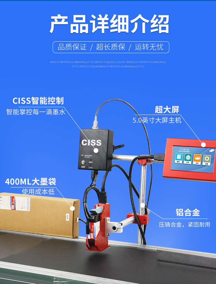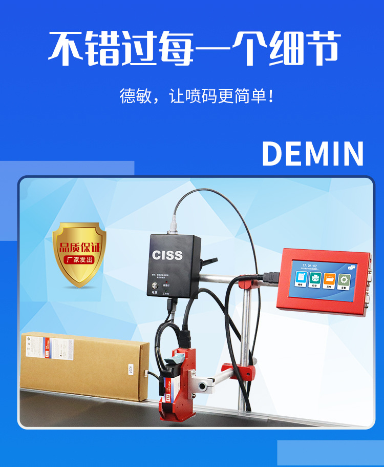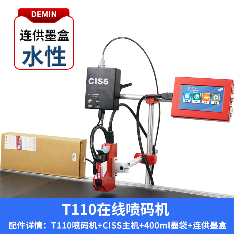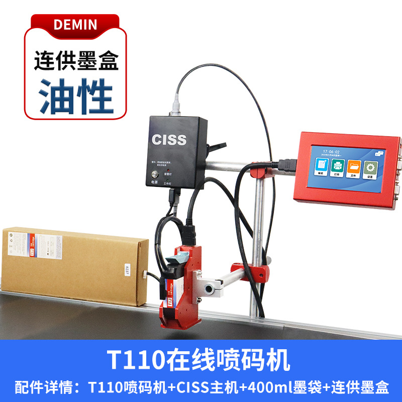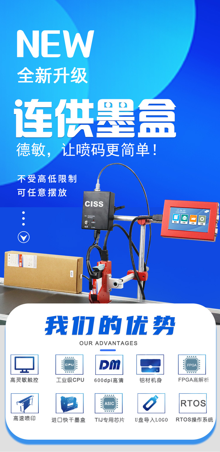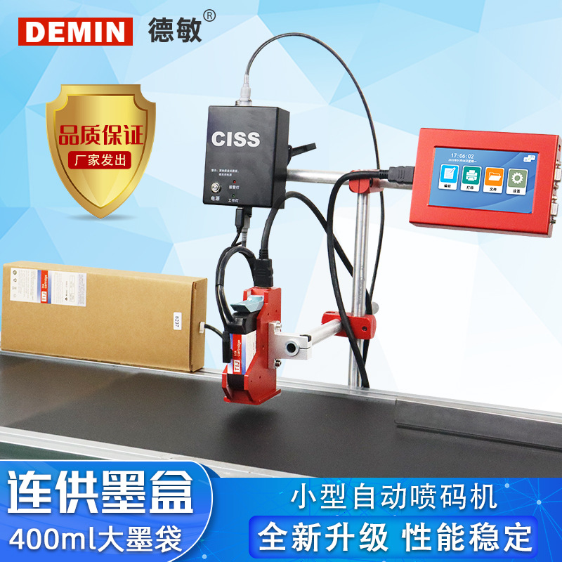 德敏连供墨盒打码机打生产日期批号logo自动喷印大容量喷墨喷码机
