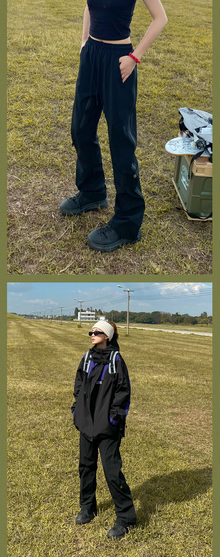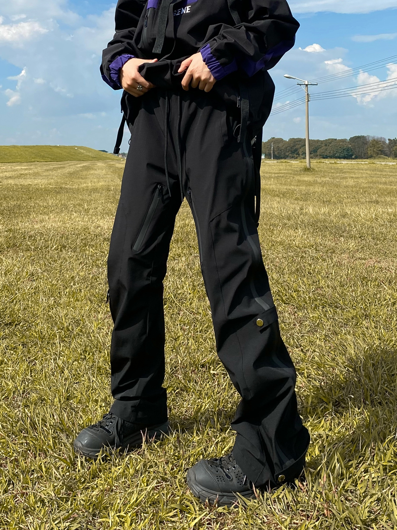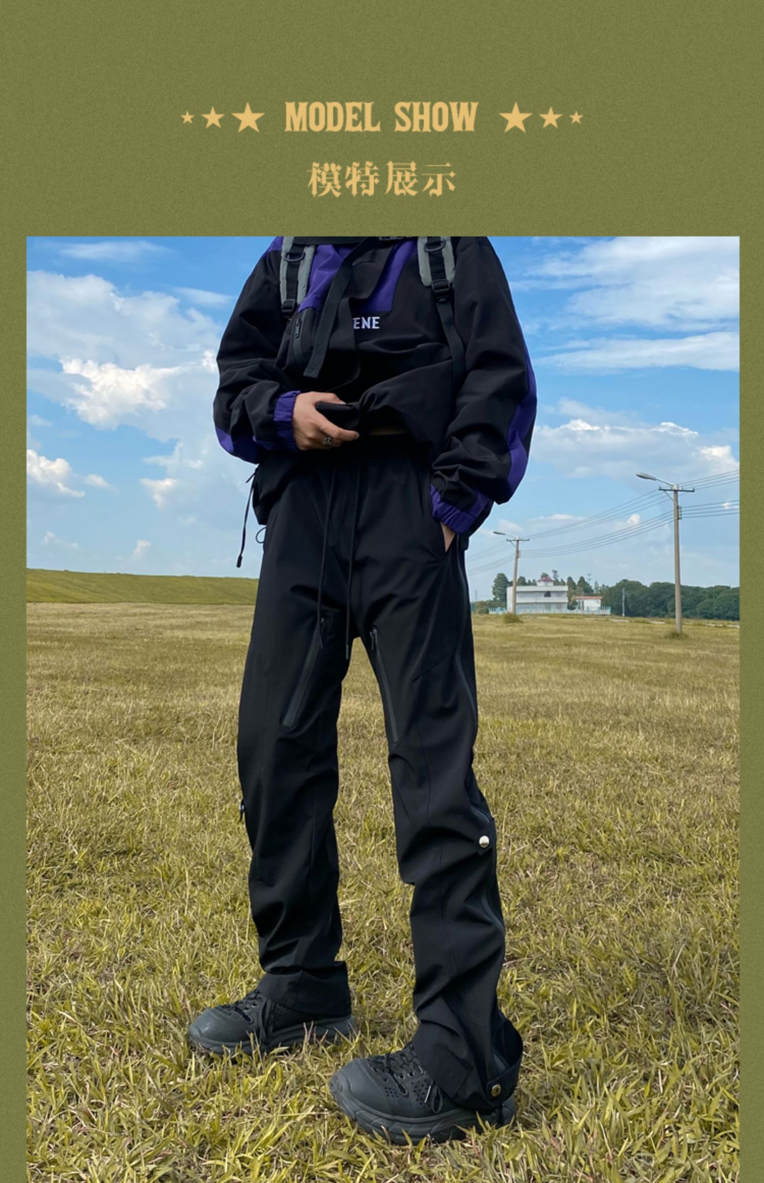 美式復古街頭防水加絨衝鋒褲ins潮牌拉鍊直筒微喇高街加厚機能褲