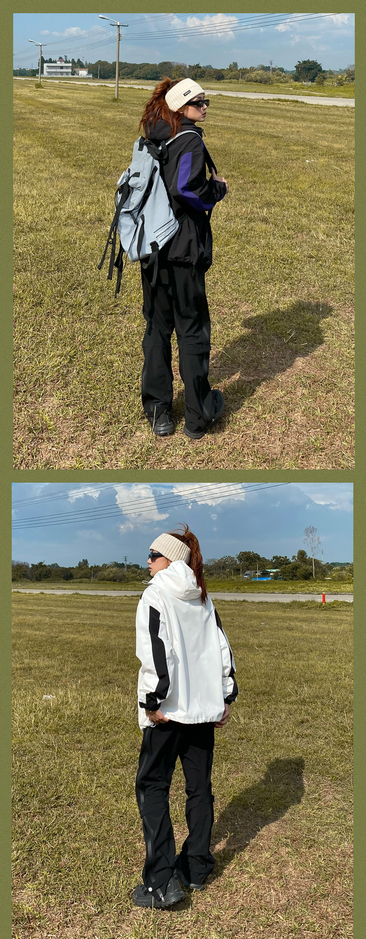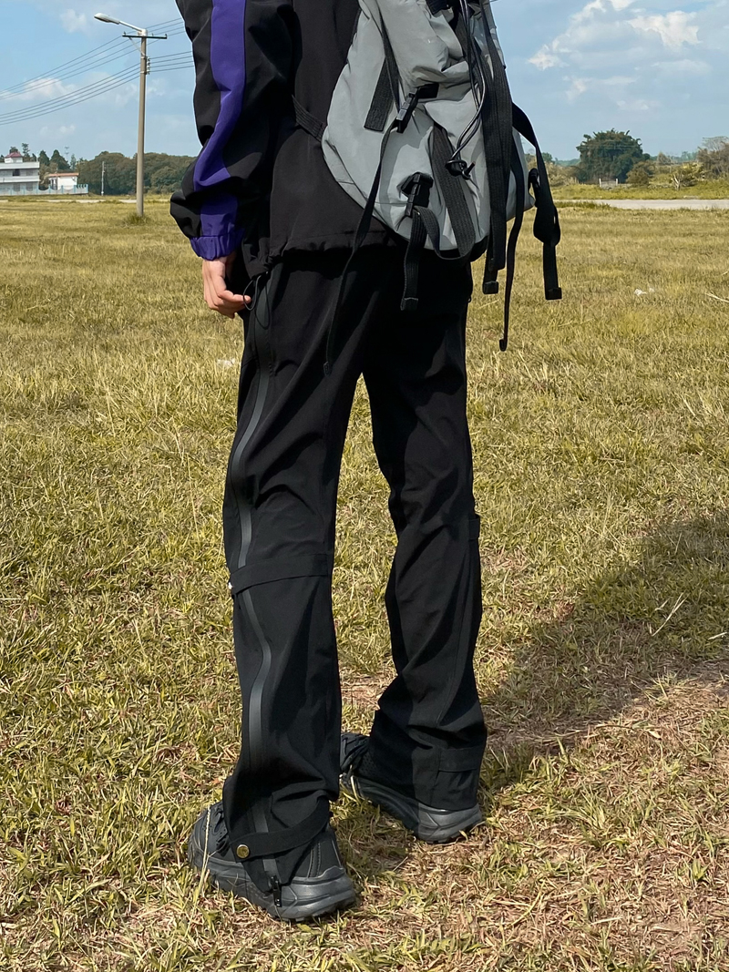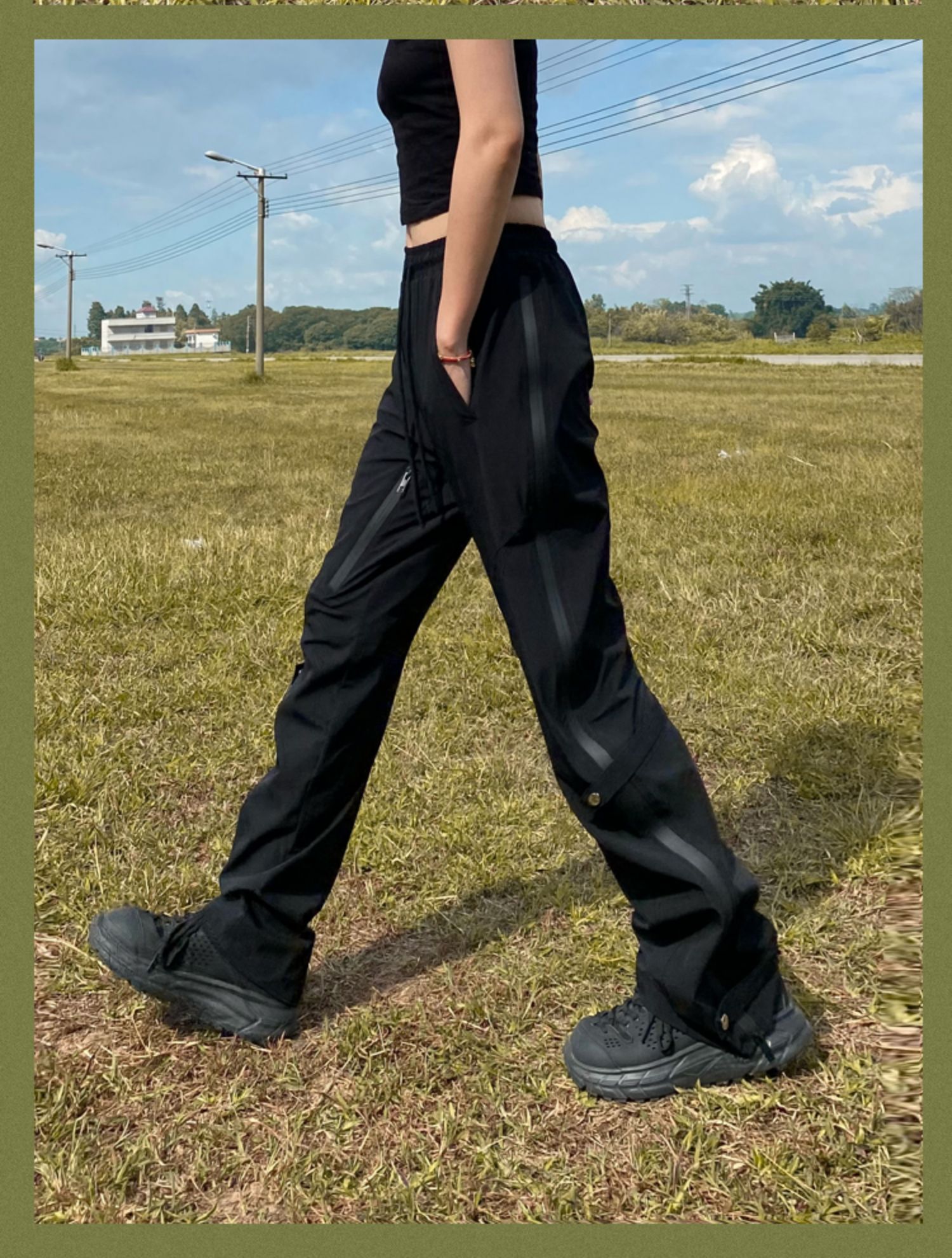 美式復古街頭防水加絨衝鋒褲ins潮牌拉鍊直筒微喇高街加厚機能褲
