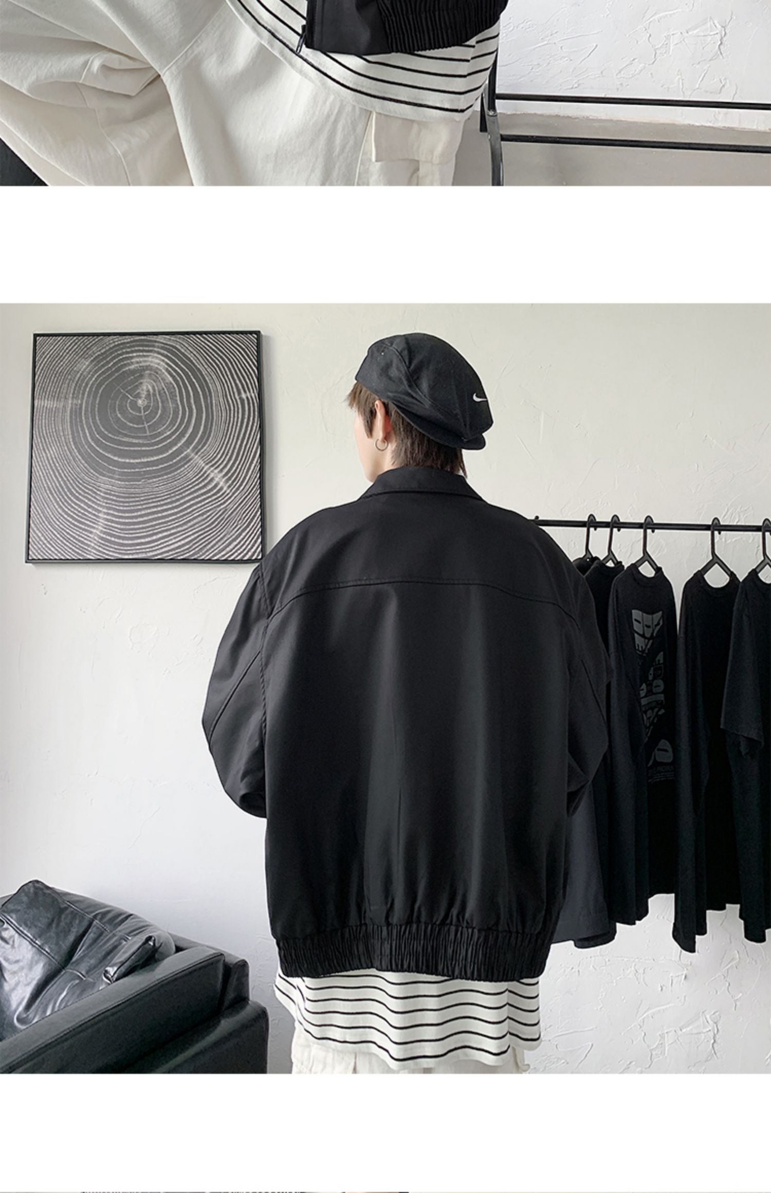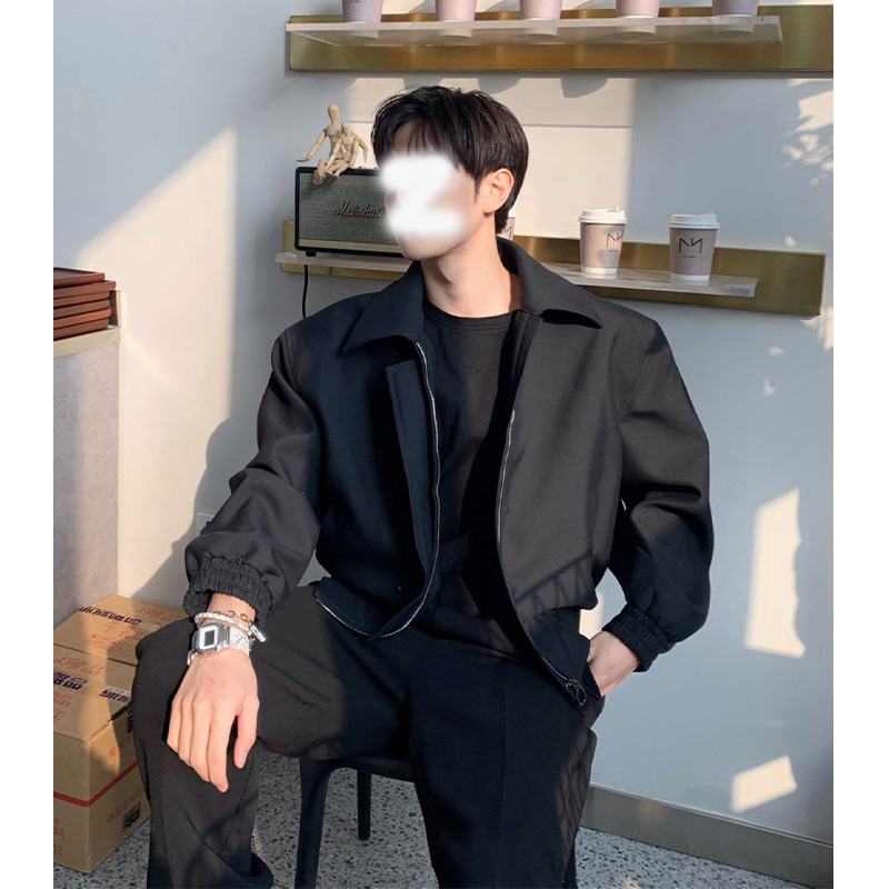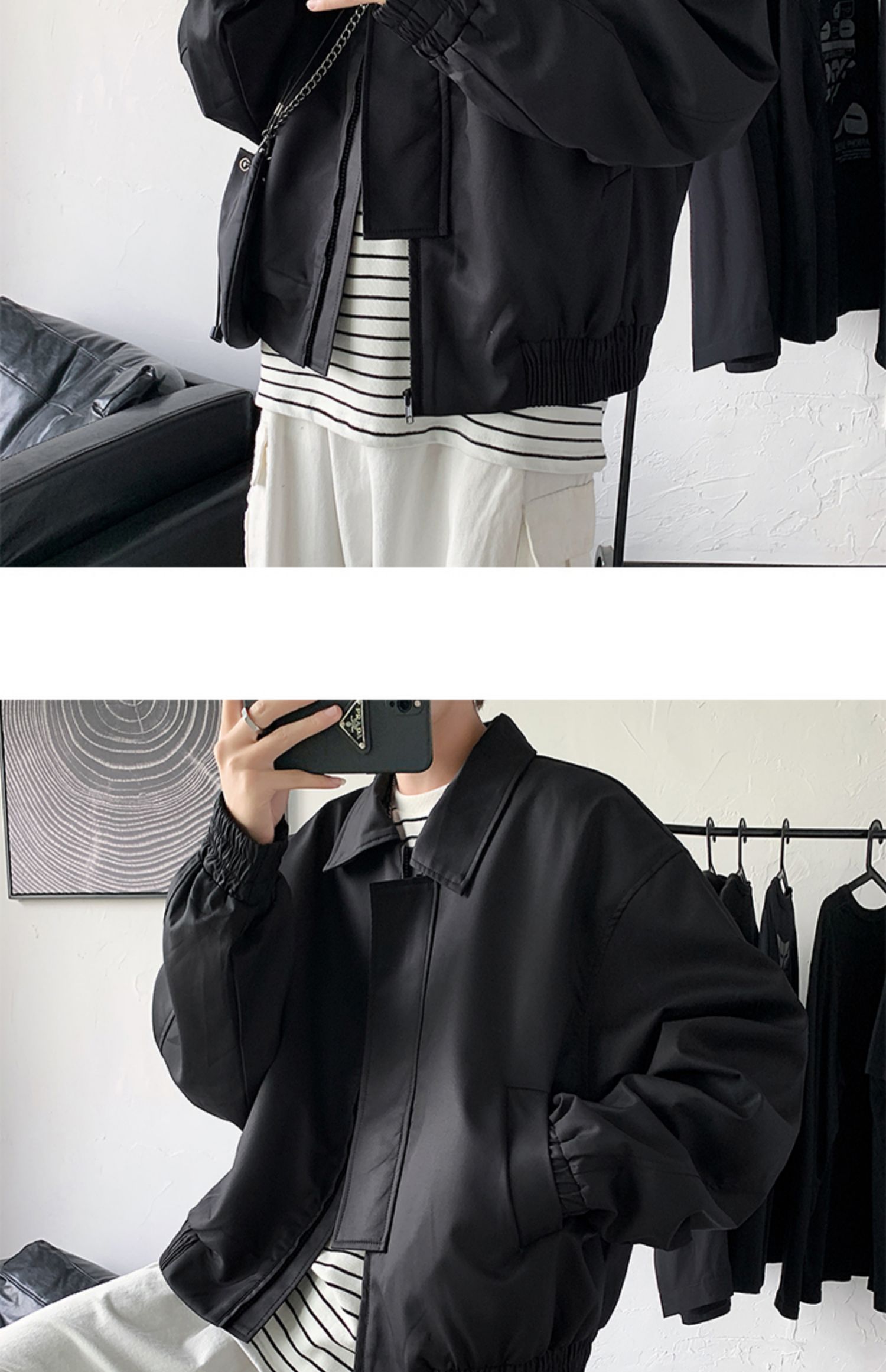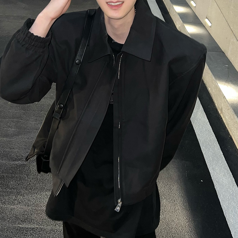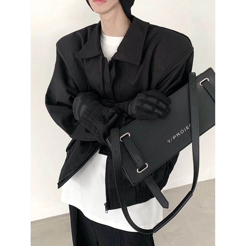 山本耀司短款飛行夾克男春秋款純黑色cleanfit外套墊肩機車騎行服