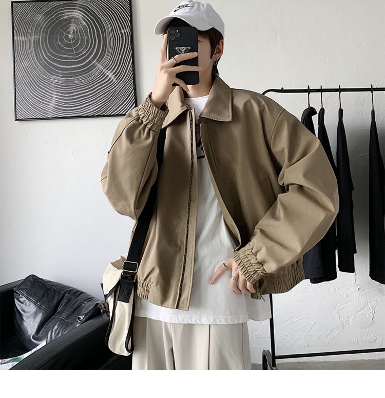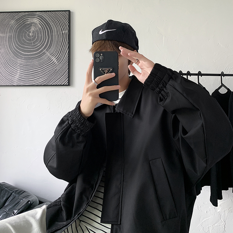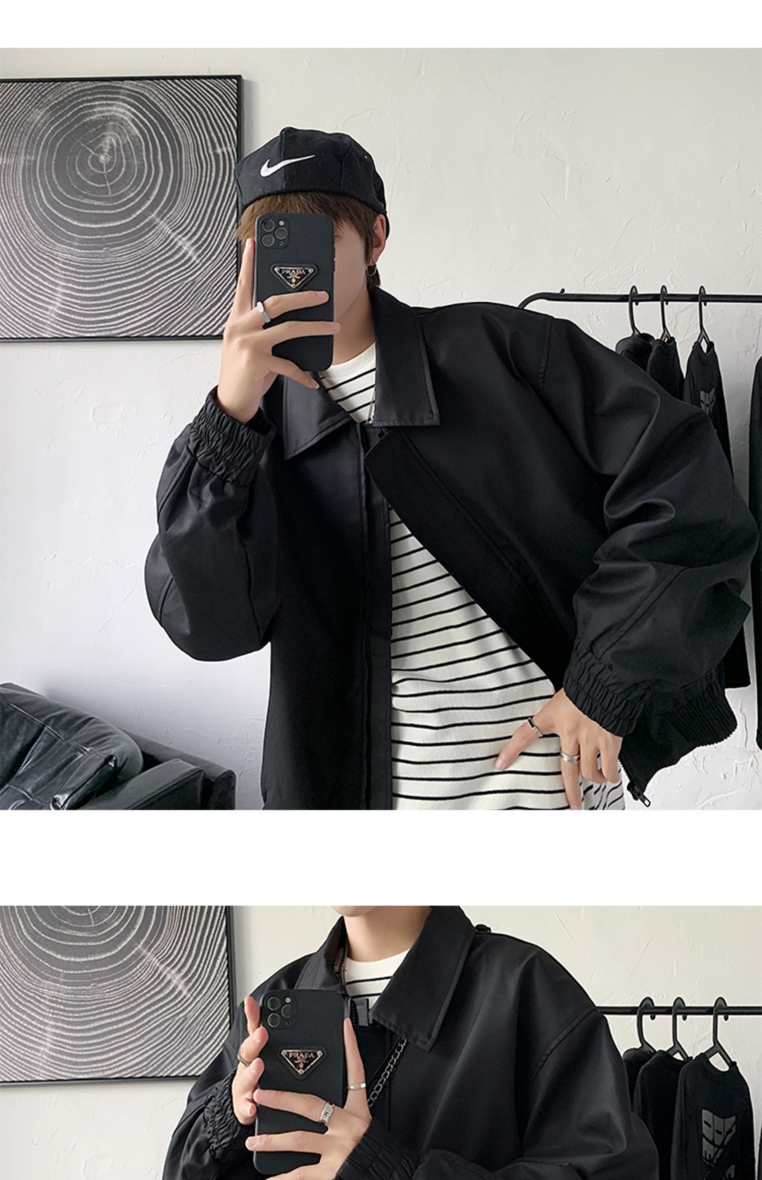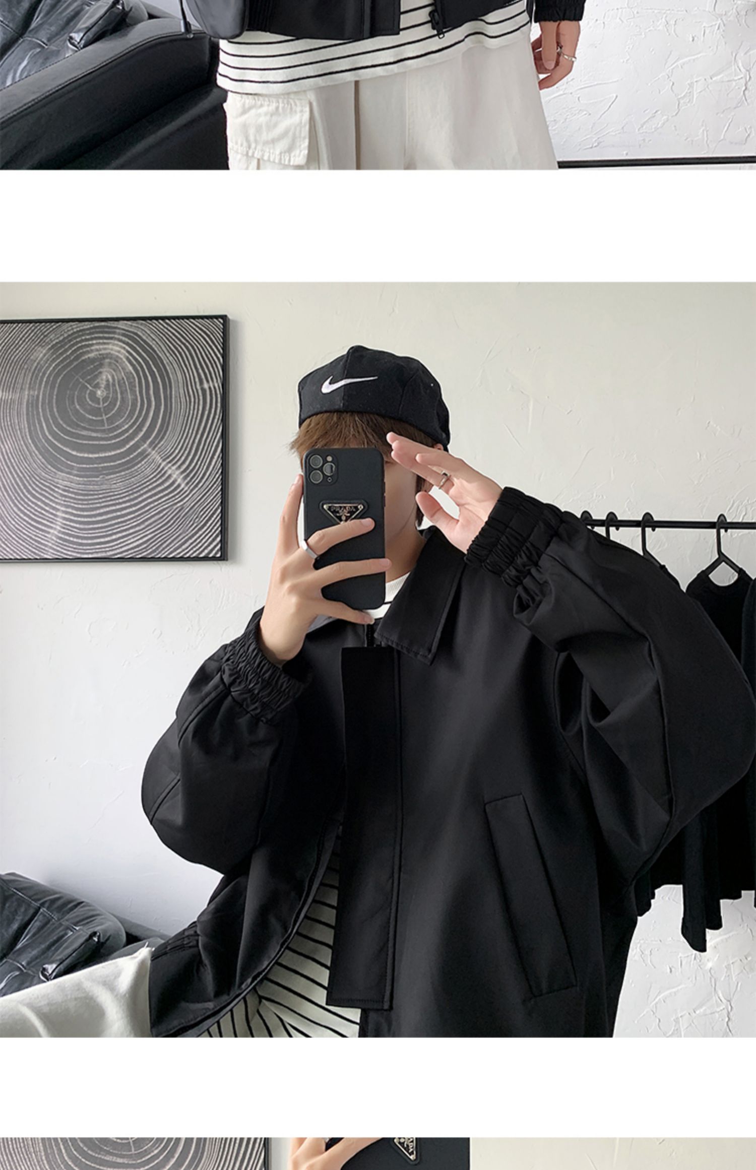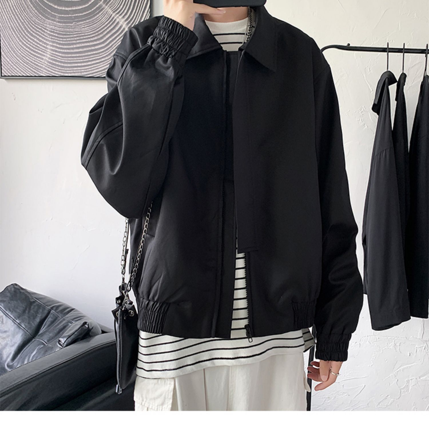 山本耀司短款飛行夾克男春秋款純黑色cleanfit外套墊肩機車騎行服