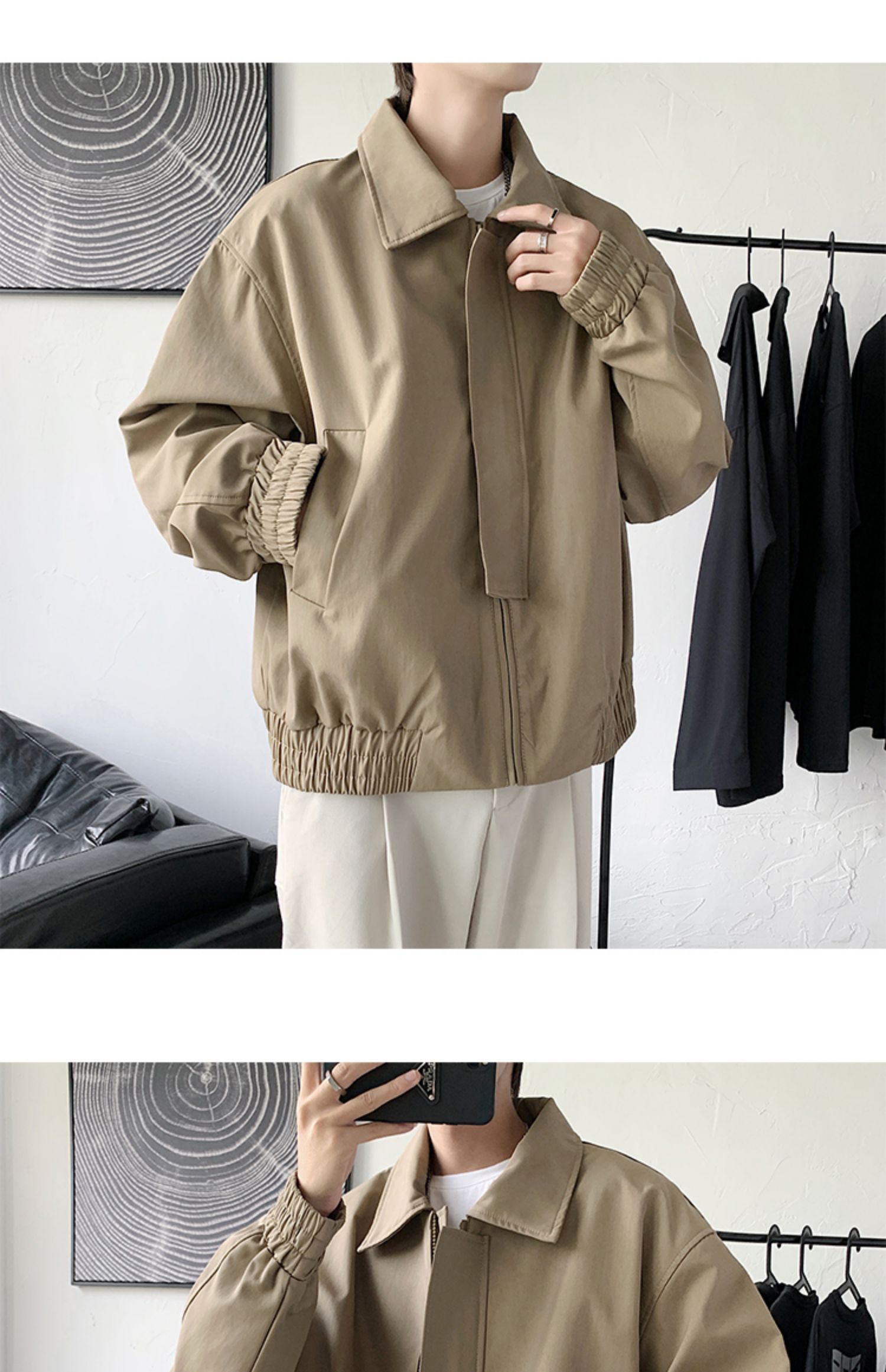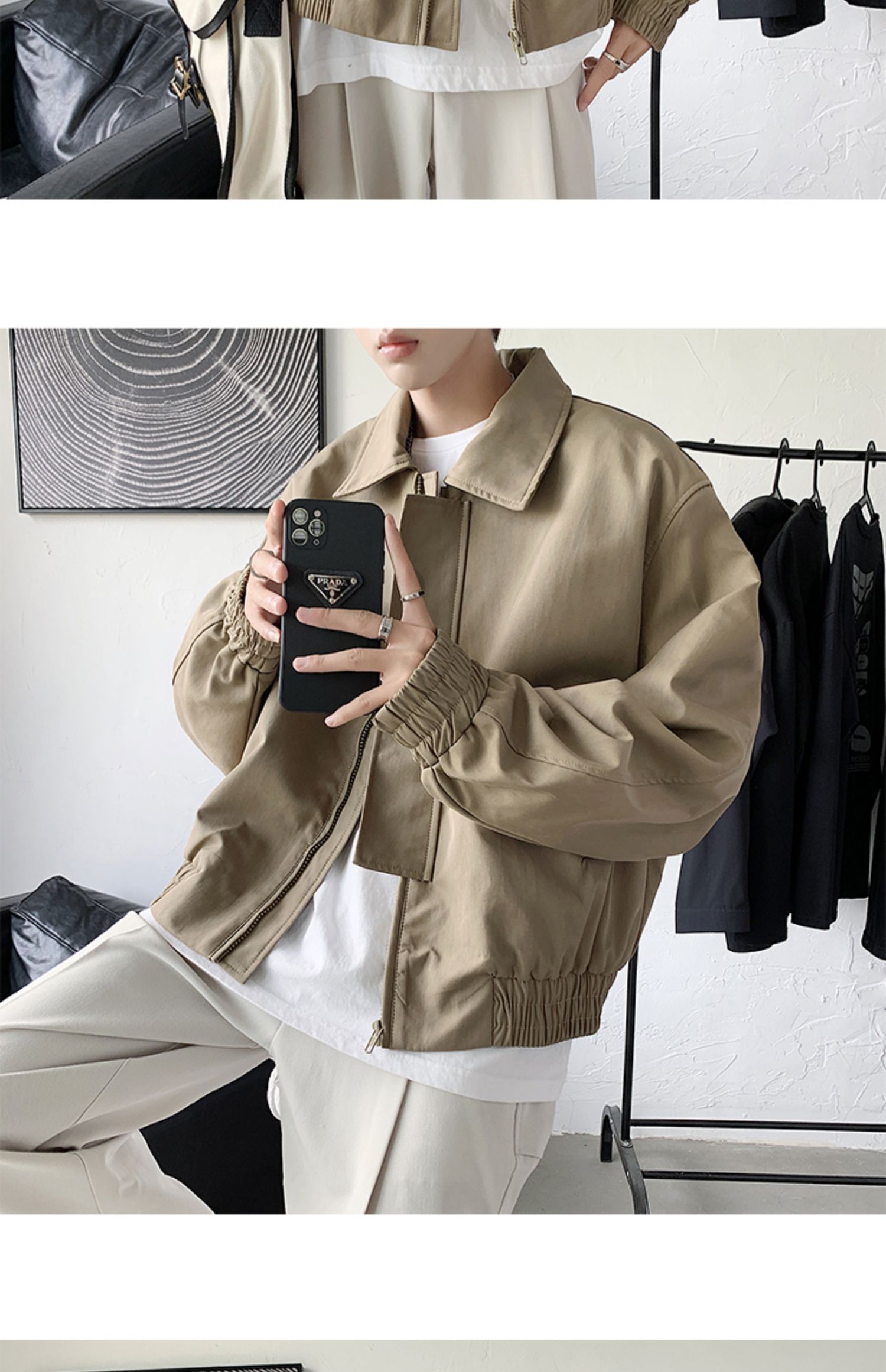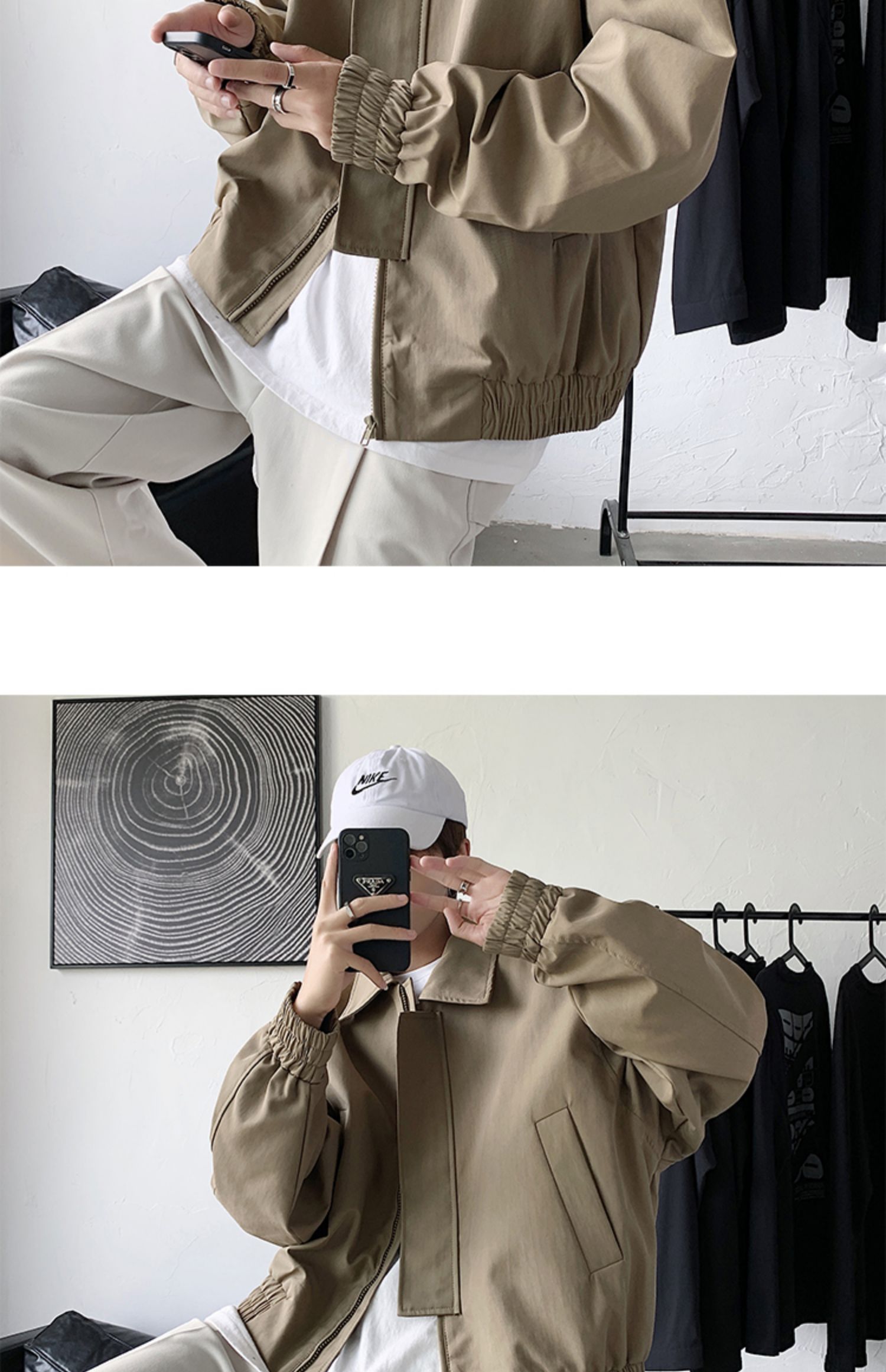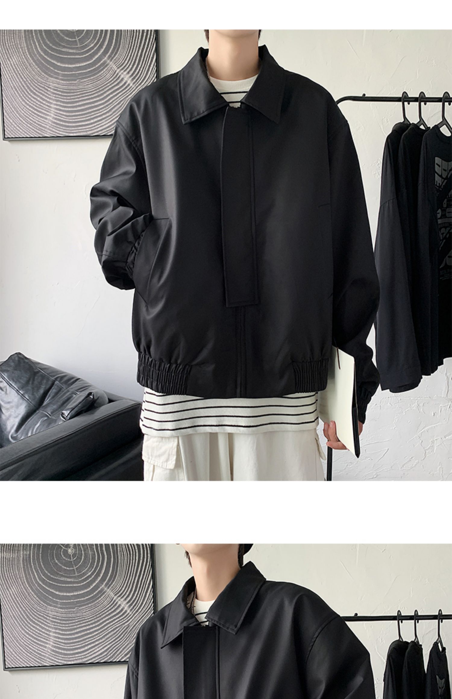 山本耀司短款飛行夾克男春秋款純黑色cleanfit外套墊肩機車騎行服