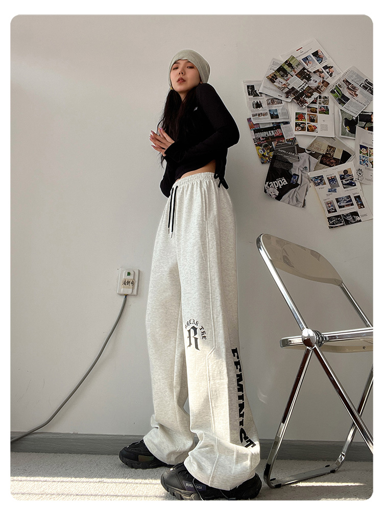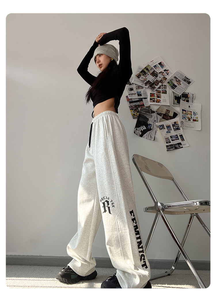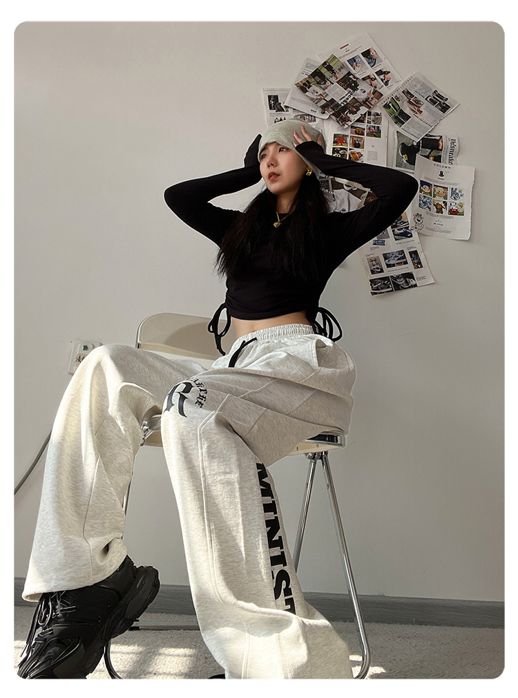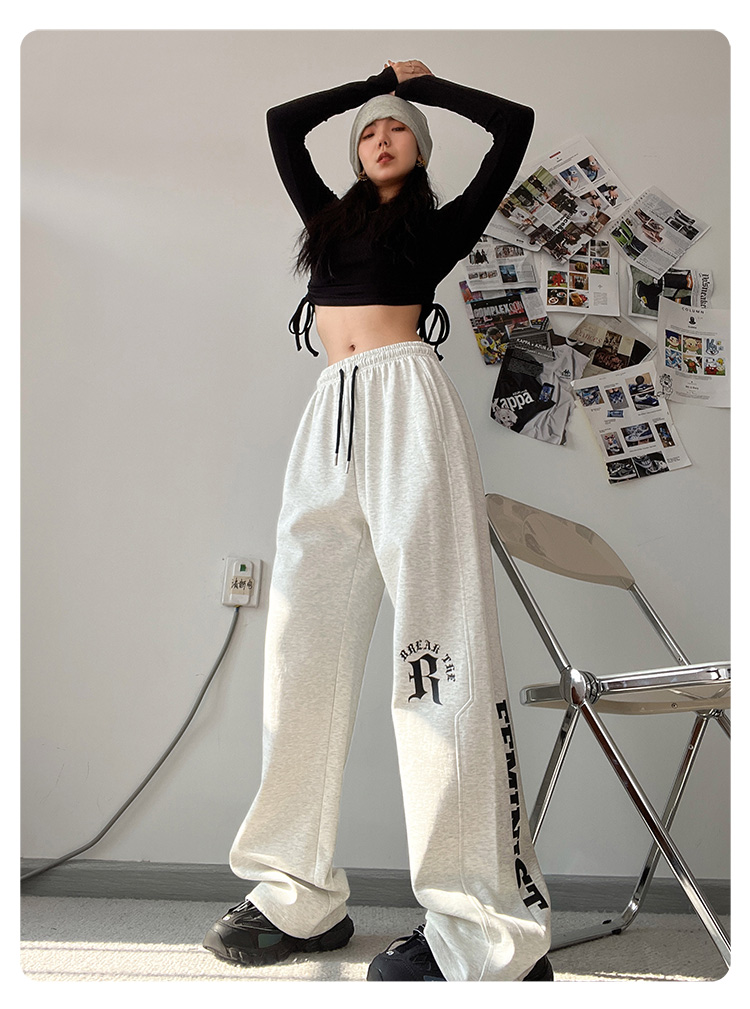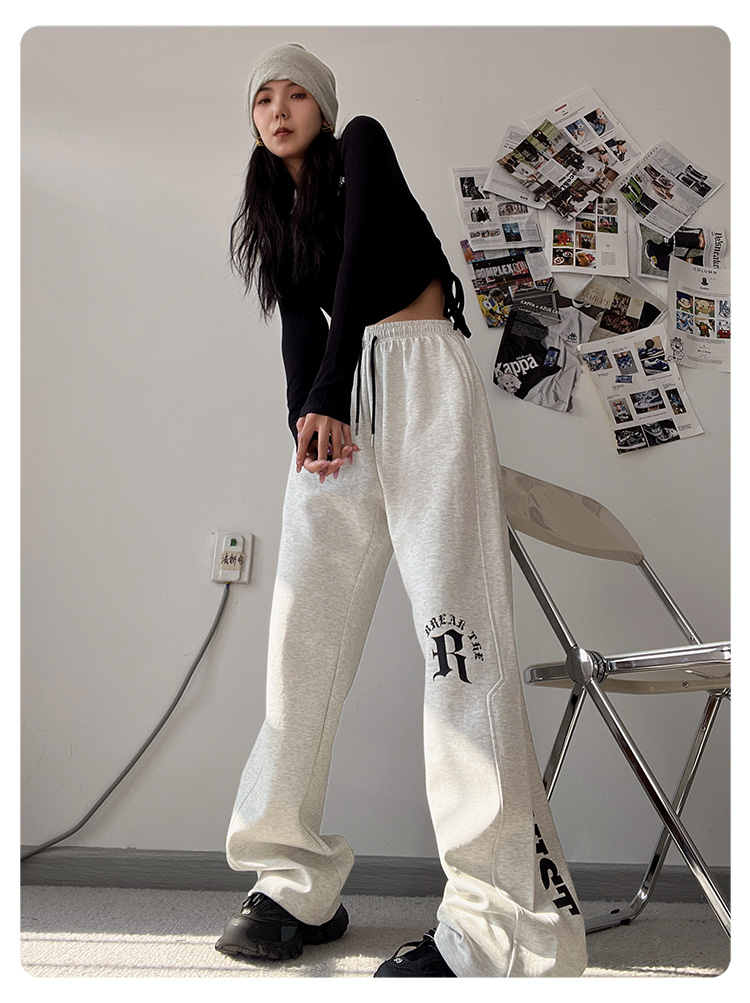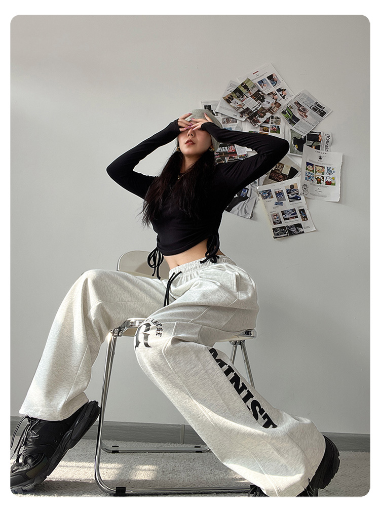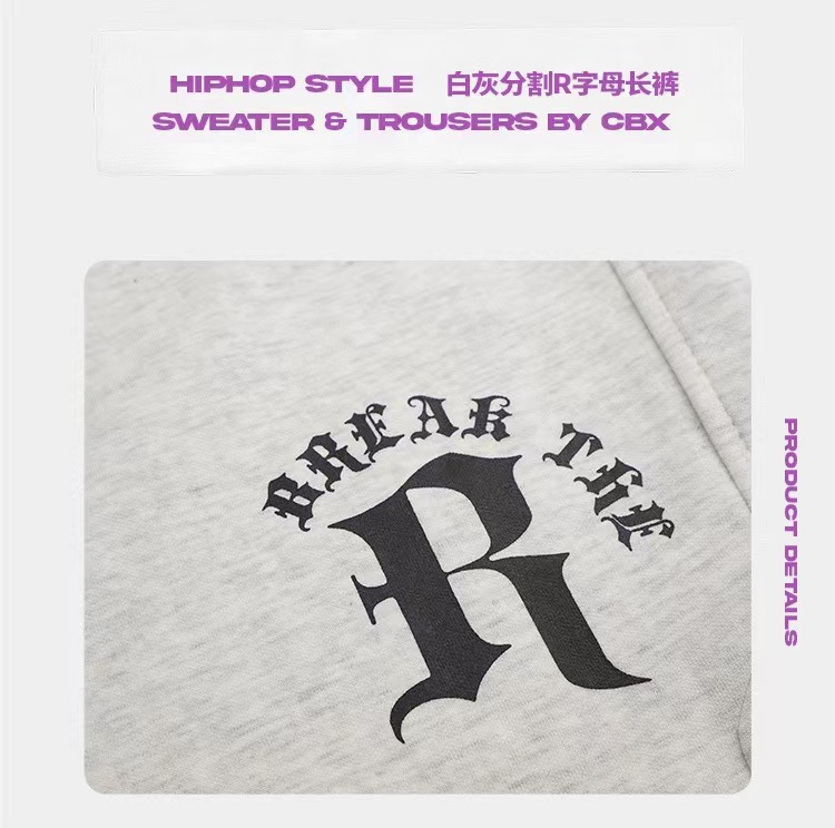 CBX高級感白灰色字母長褲女嘻哈寬鬆爵士舞直筒運動hiphop休閒褲