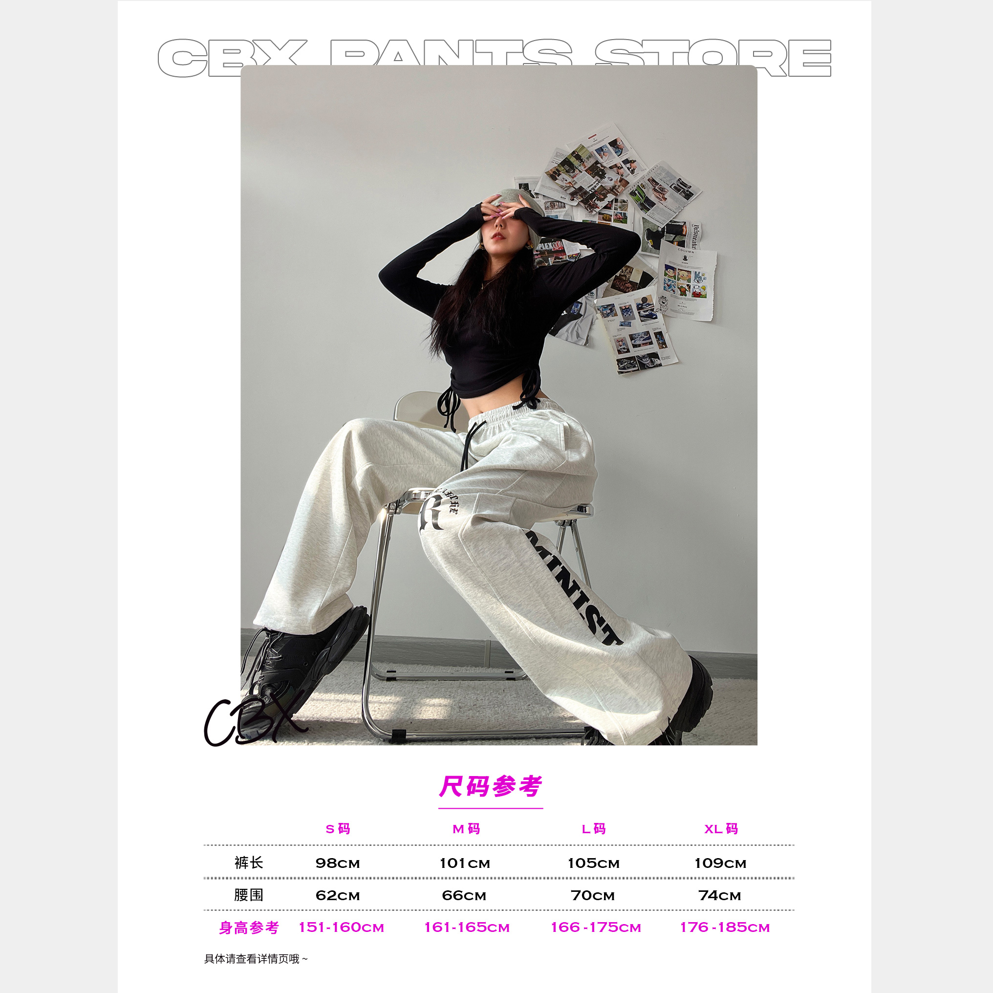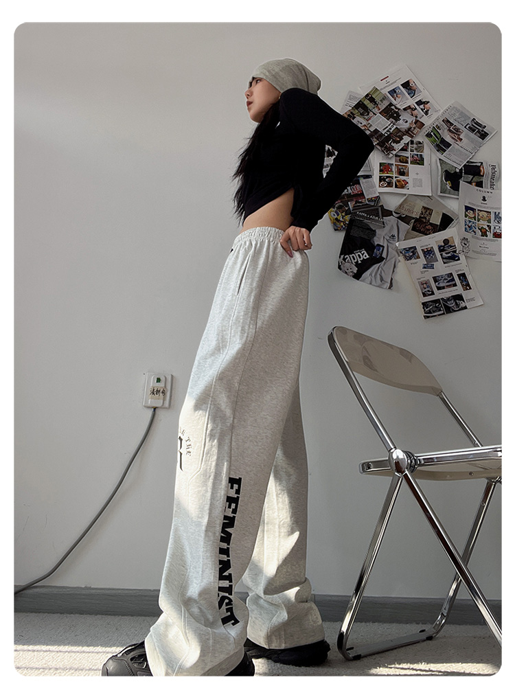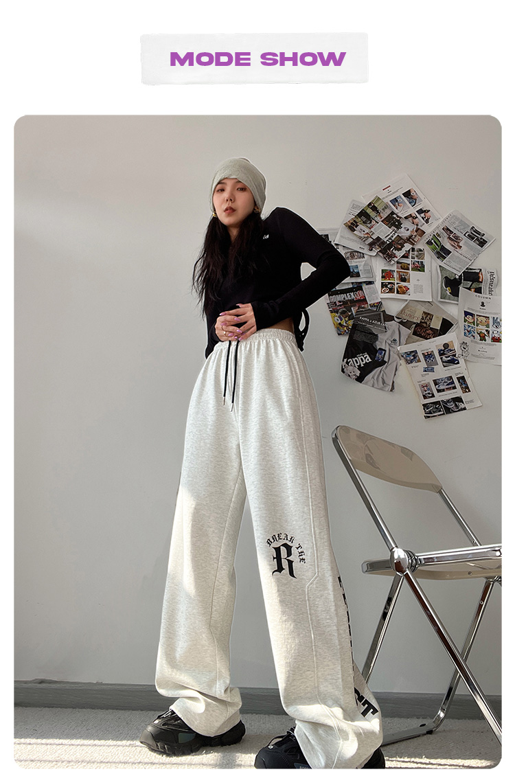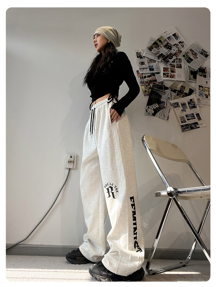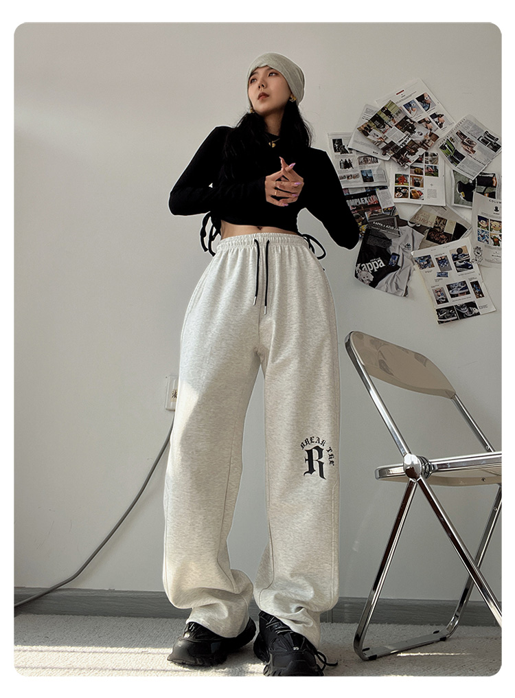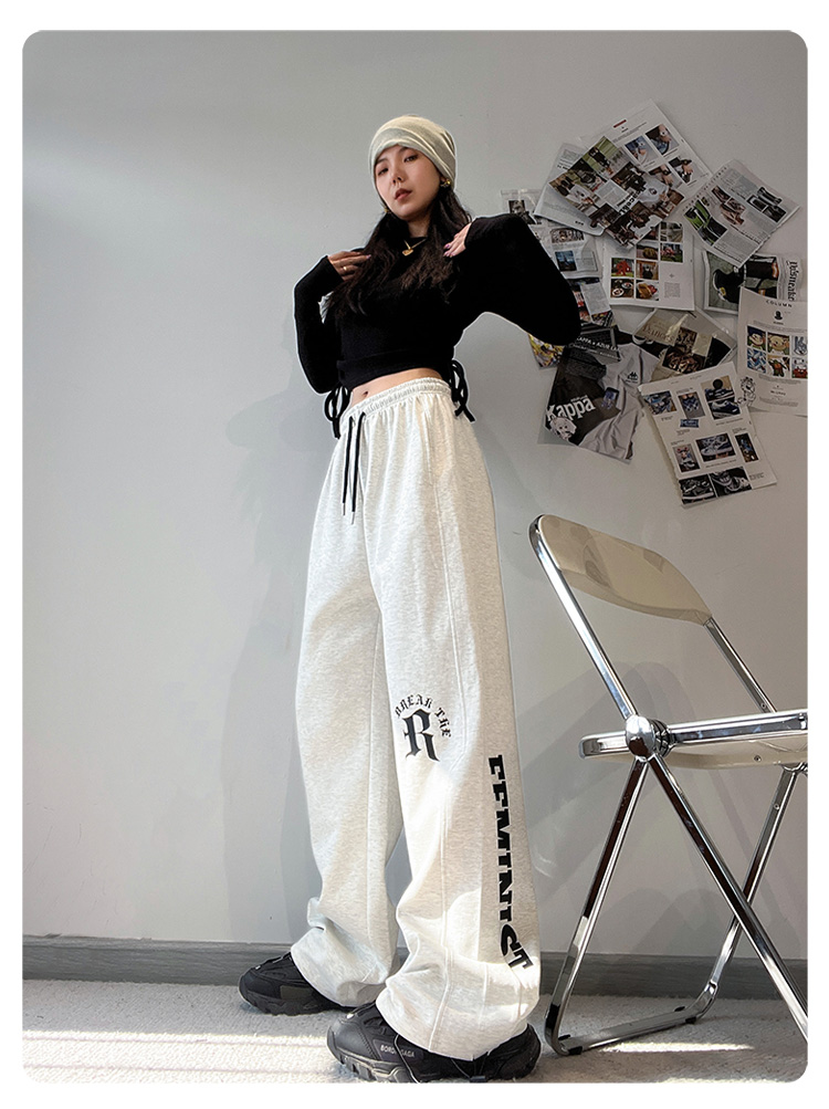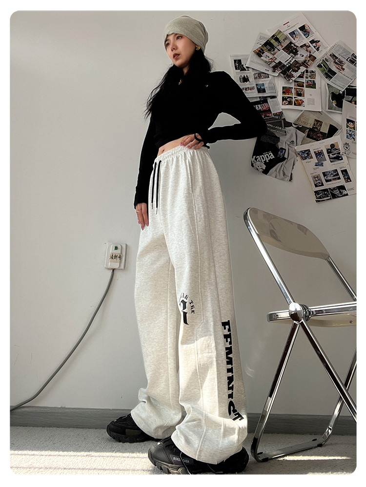 CBX高級感白灰色字母長褲女嘻哈寬鬆爵士舞直筒運動hiphop休閒褲