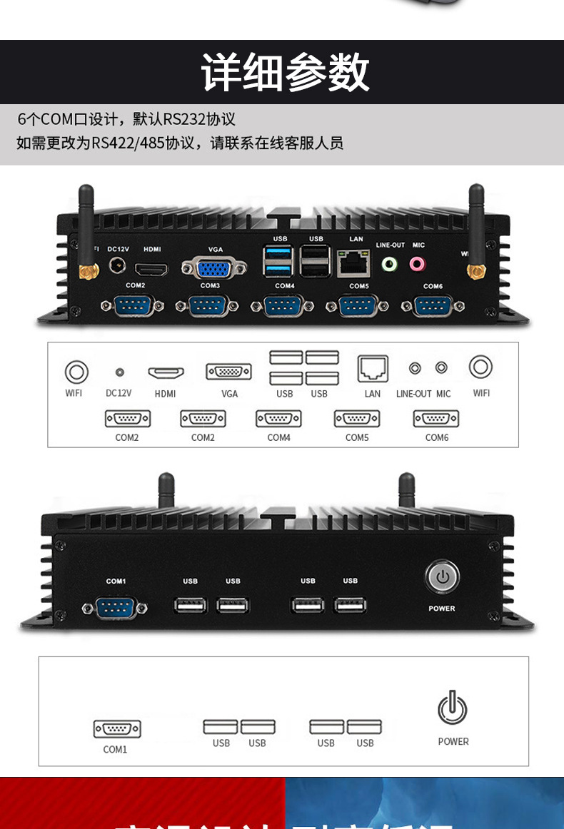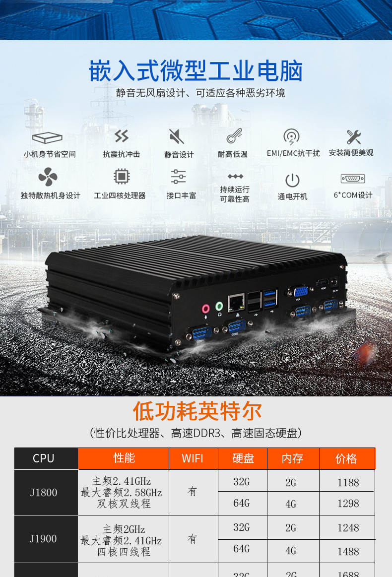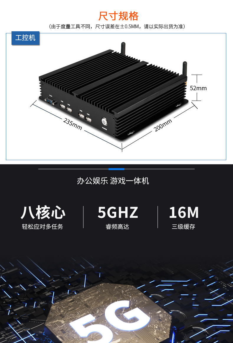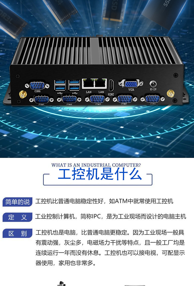 厂家J1900迷你OPS电脑微型工控机i3/i5/i7单双网口工业迷你主机