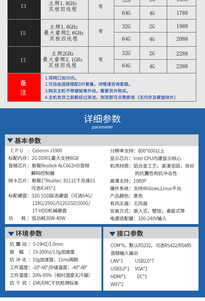 尺寸 J1900+4G+128G,I3+4G+128G,I5+4G+128G,I7+4G+128G