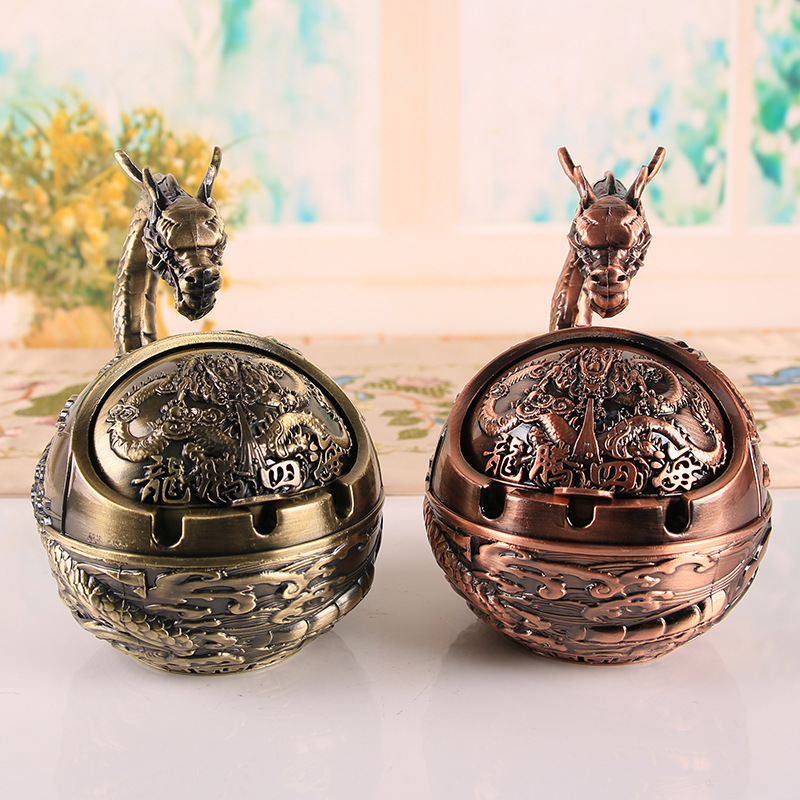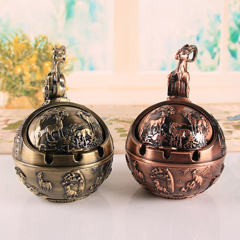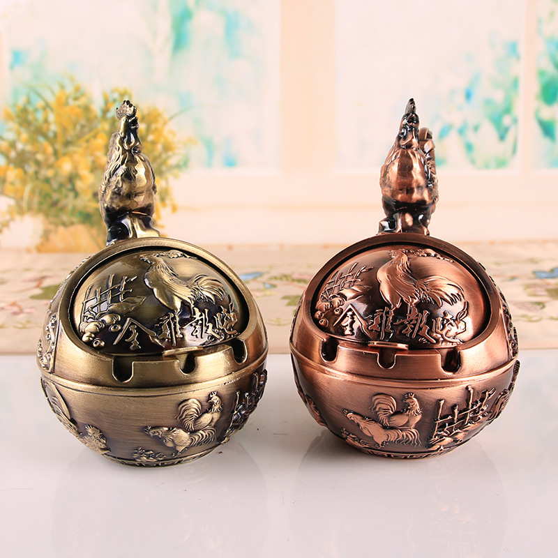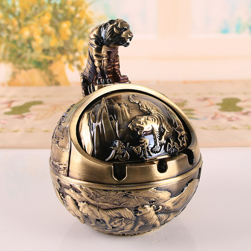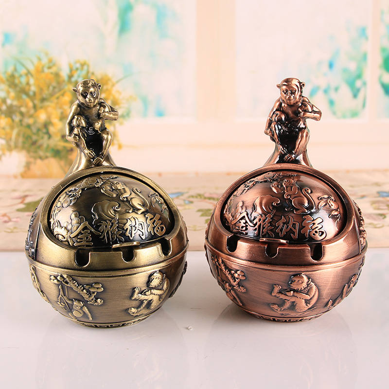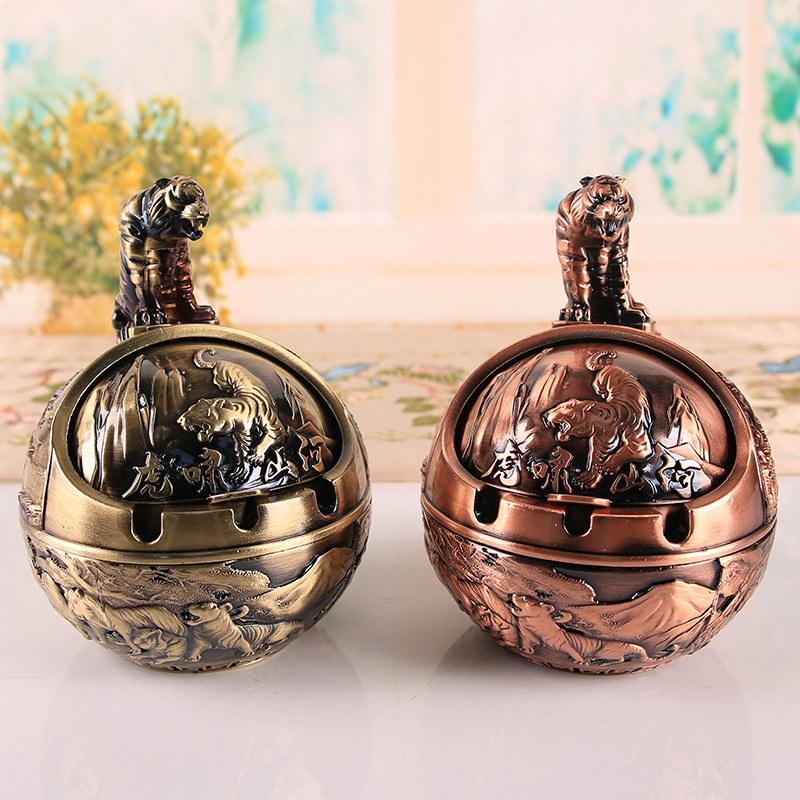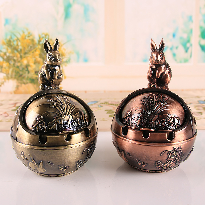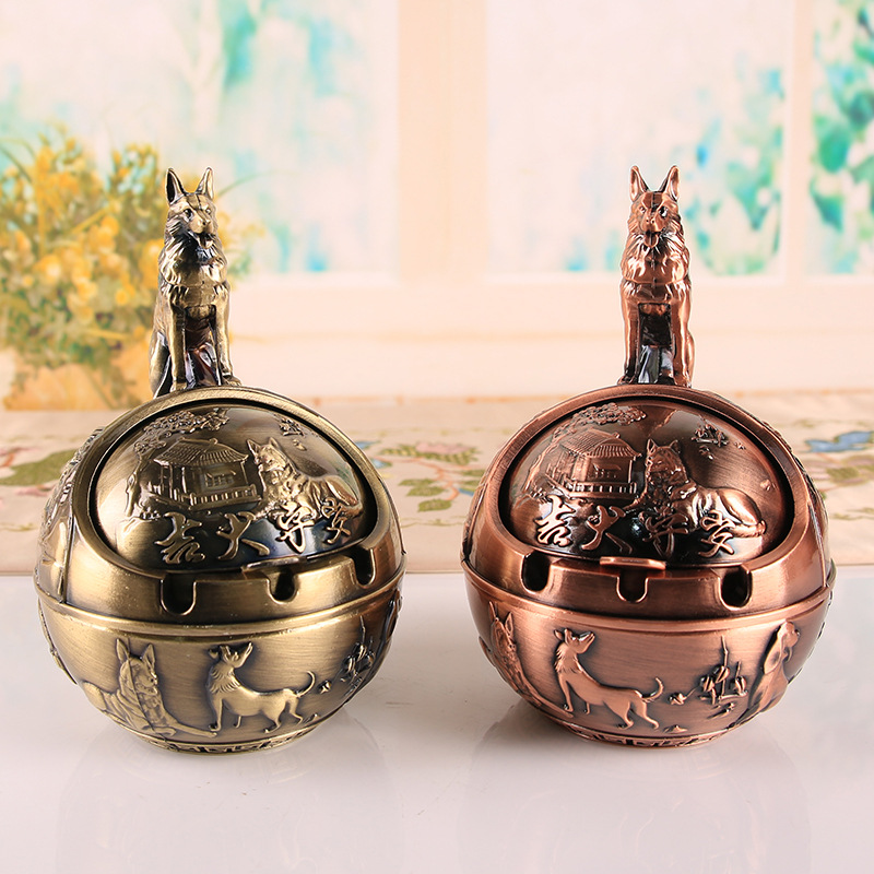 十二生肖复古烟灰缸带盖防风防灰飞防烟味防摔家用办公室烟缸摆件