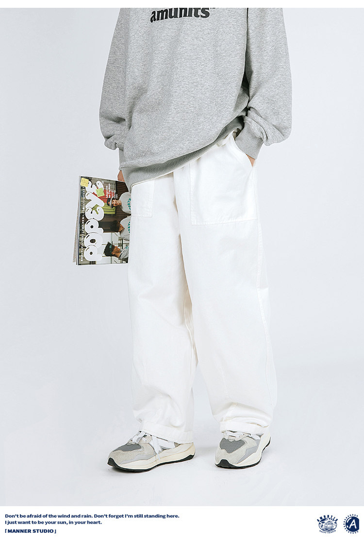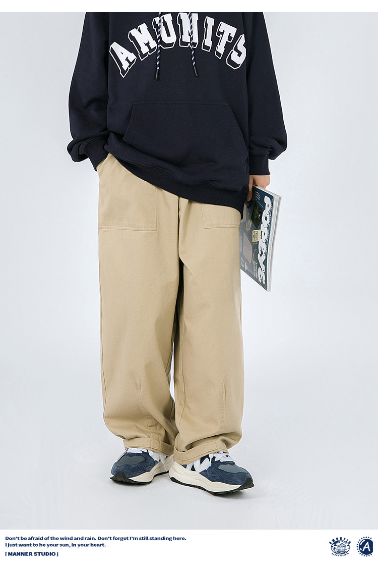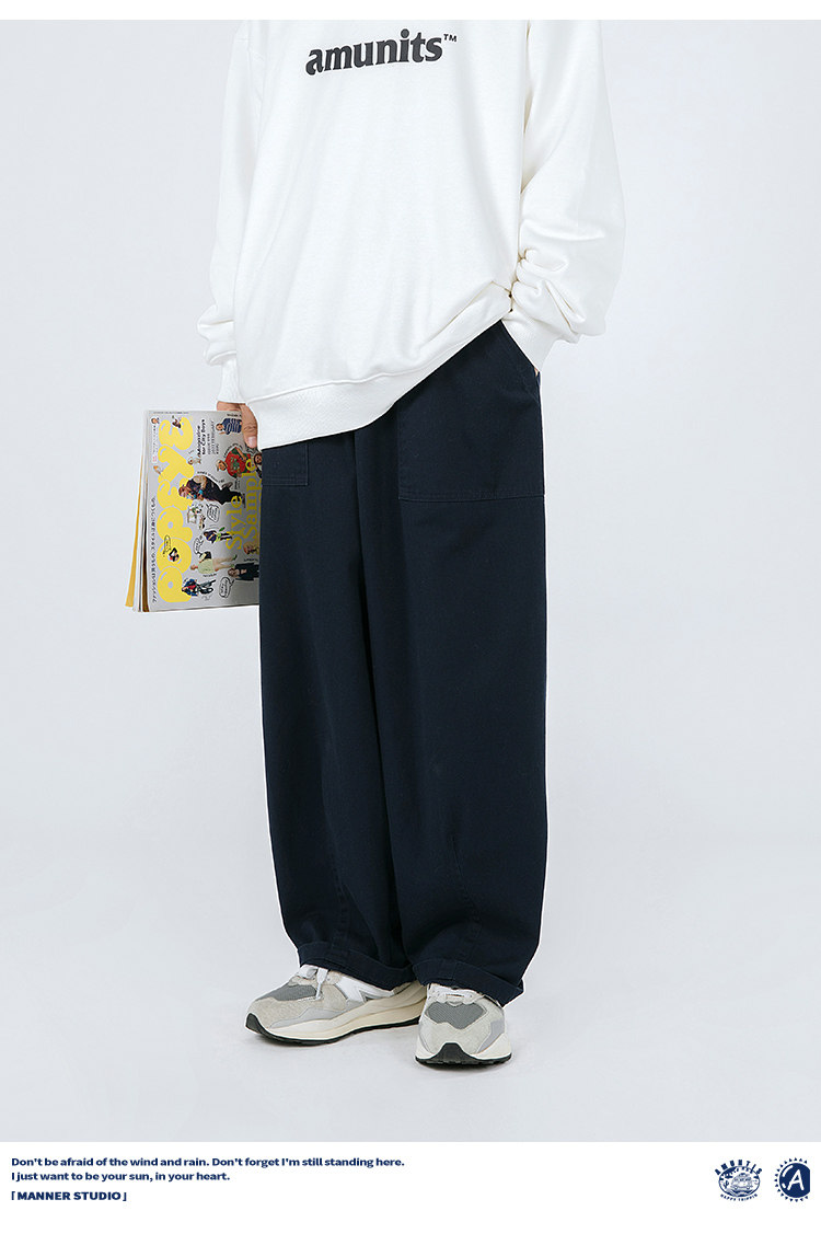 MANNSTU 2023秋季新款日系工裝直筒寬褲女情侶款BF休閒長褲潮男