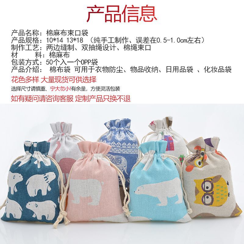 • 产品名称:棉麻布束口袋
