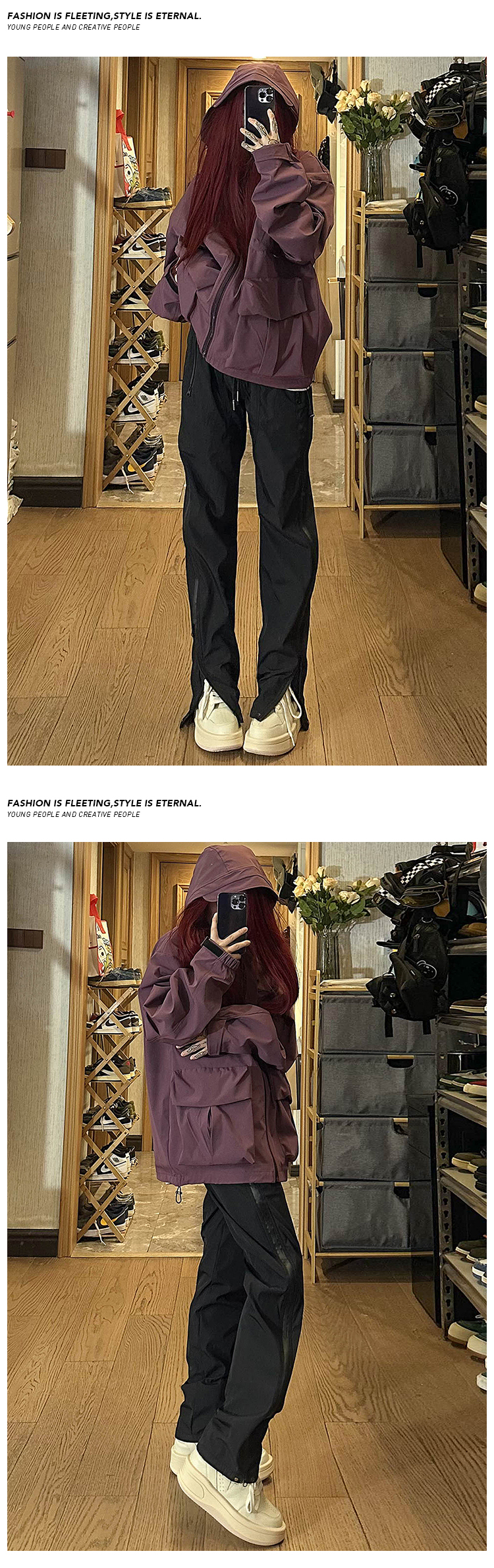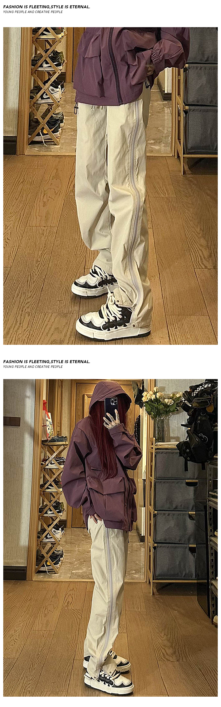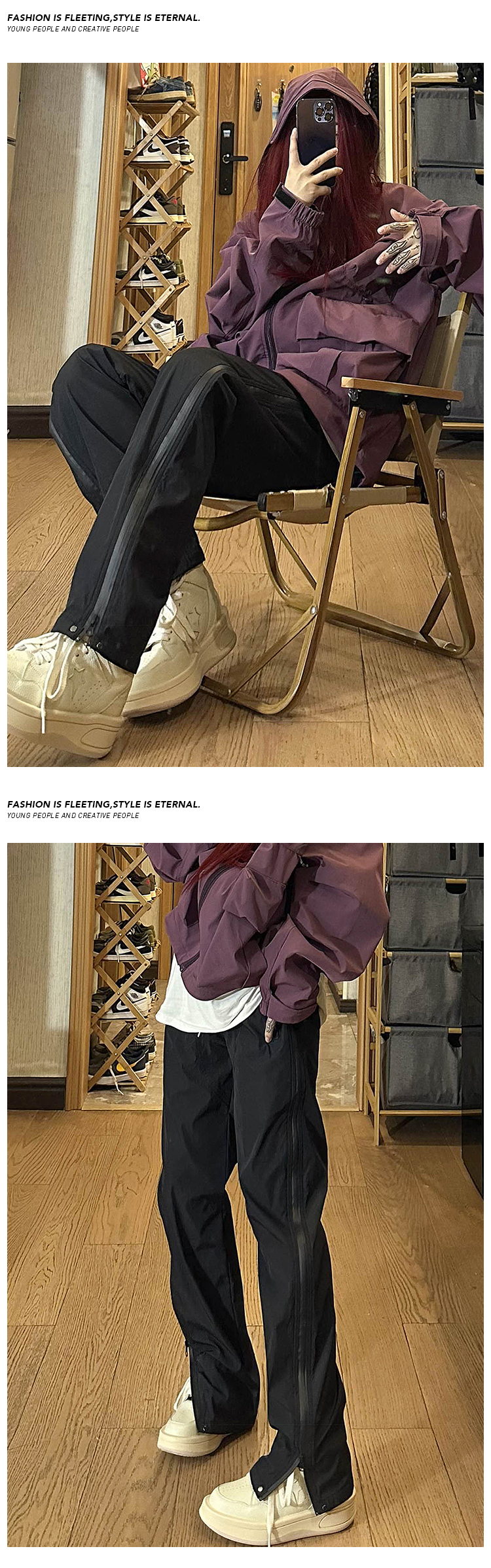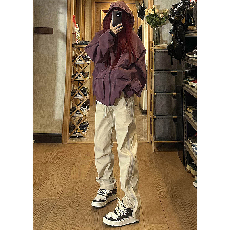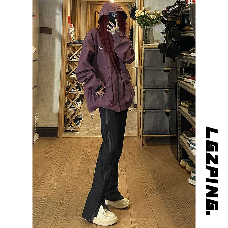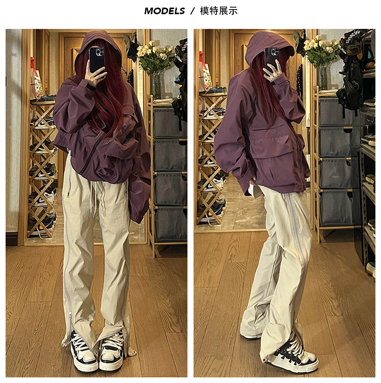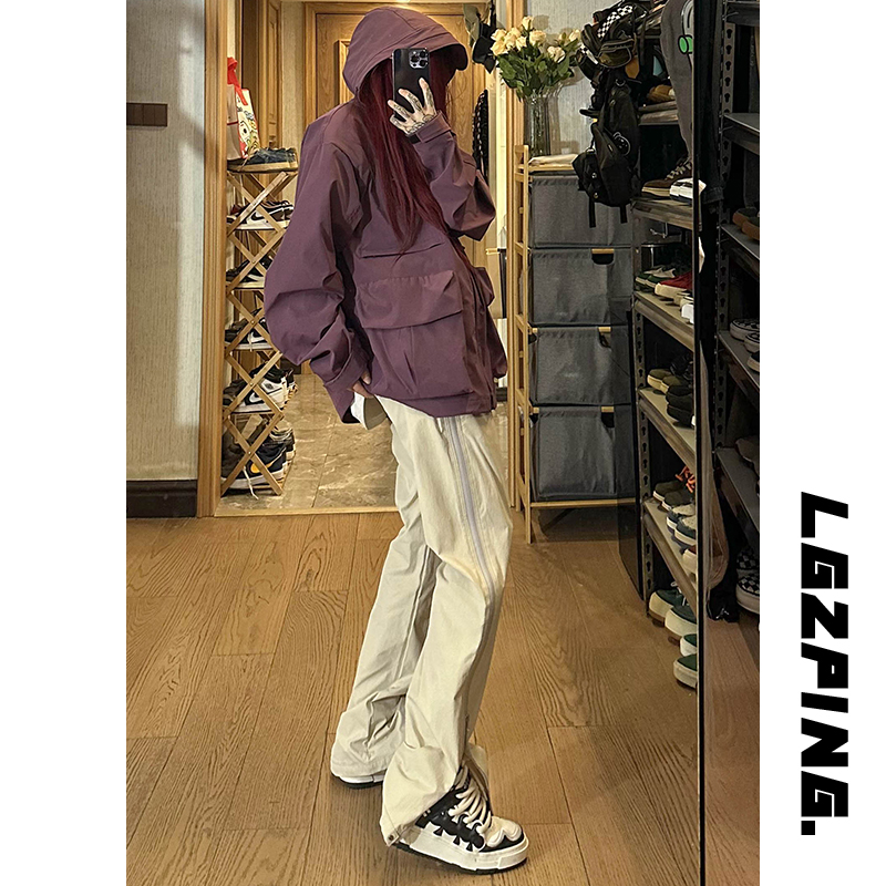 防水尼龍衝鋒褲夏季薄款側拉鍊微喇叭褲子高街vibe美式機能工裝褲