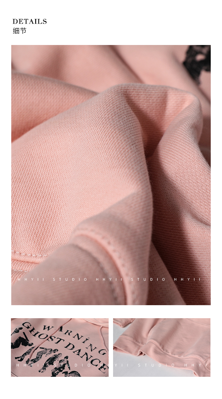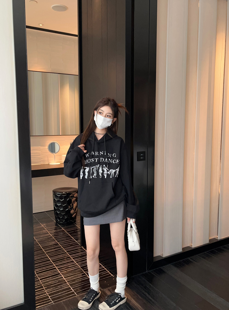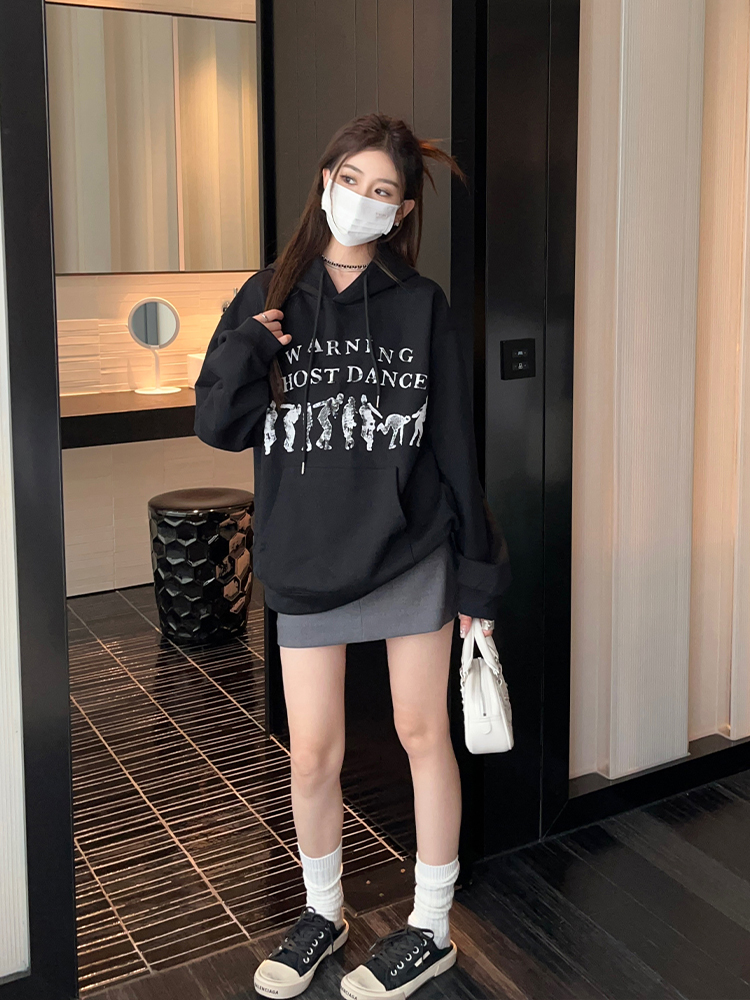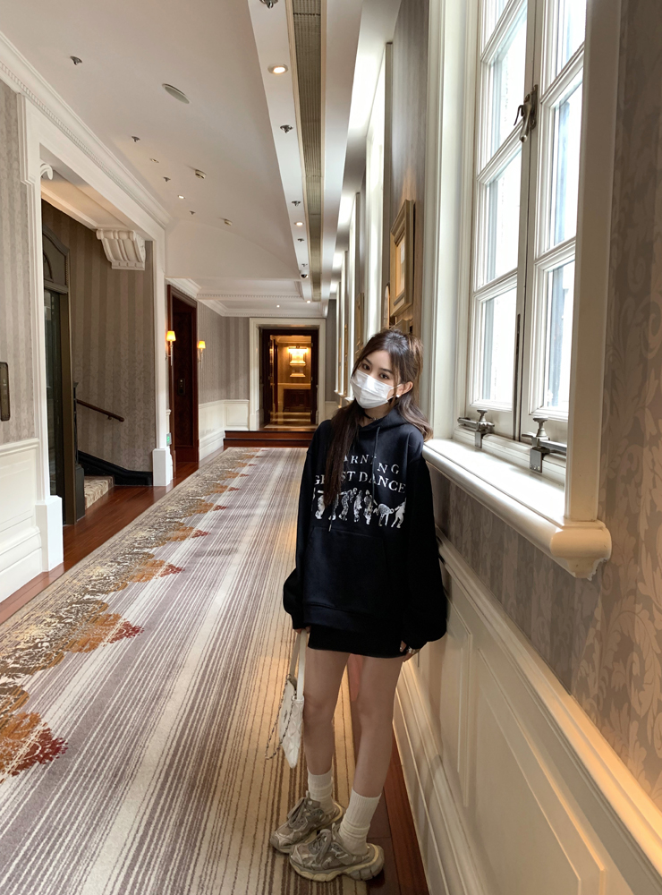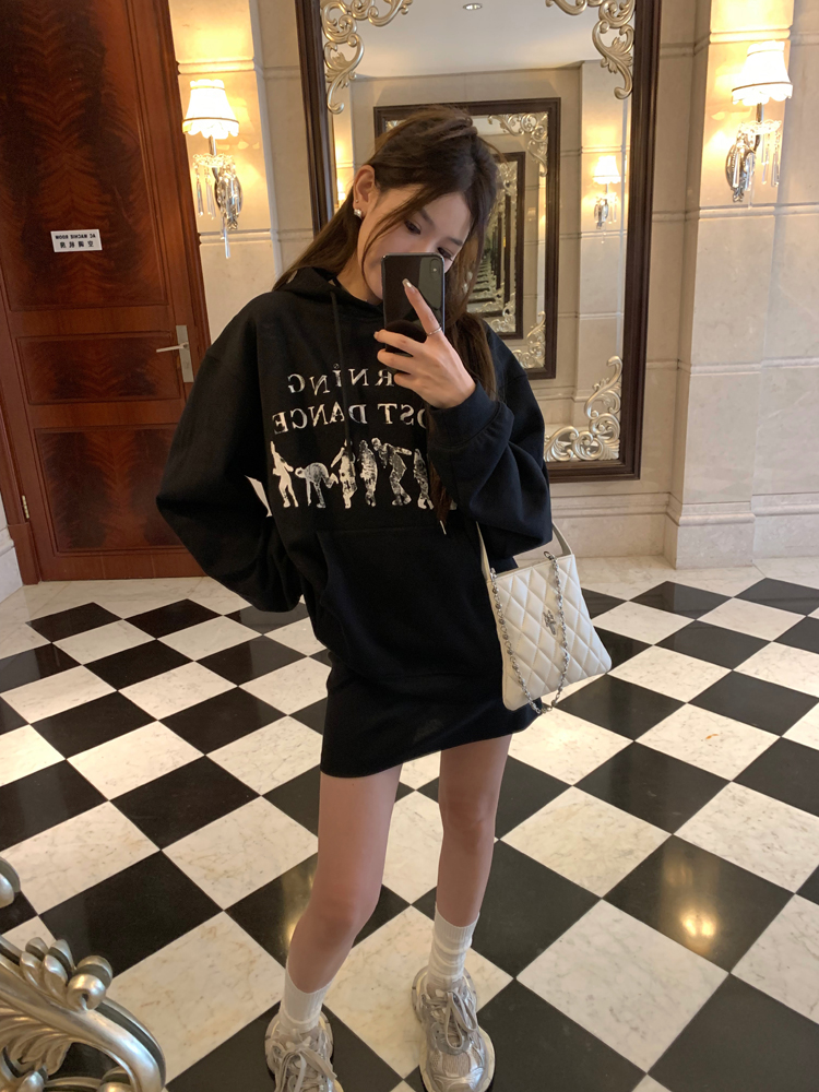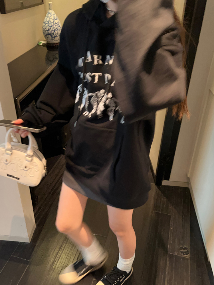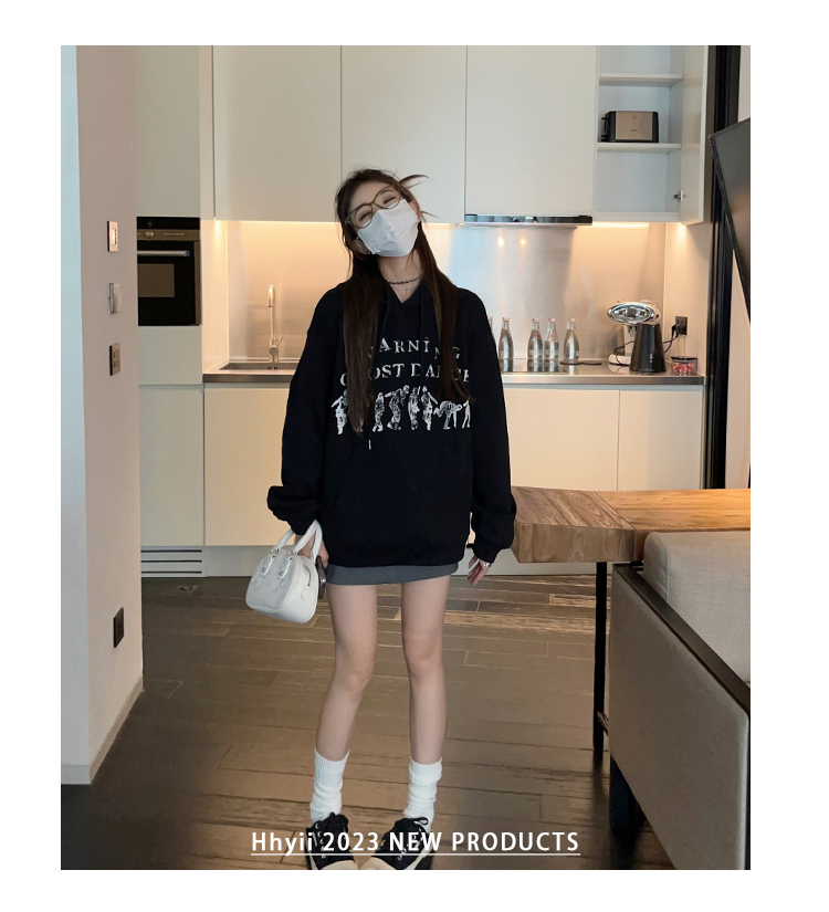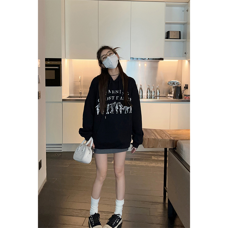 Hhyii 費城留學生 黑色印花連帽運動衫oversize純棉休閒秋季外套女