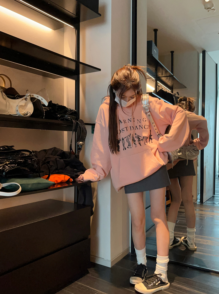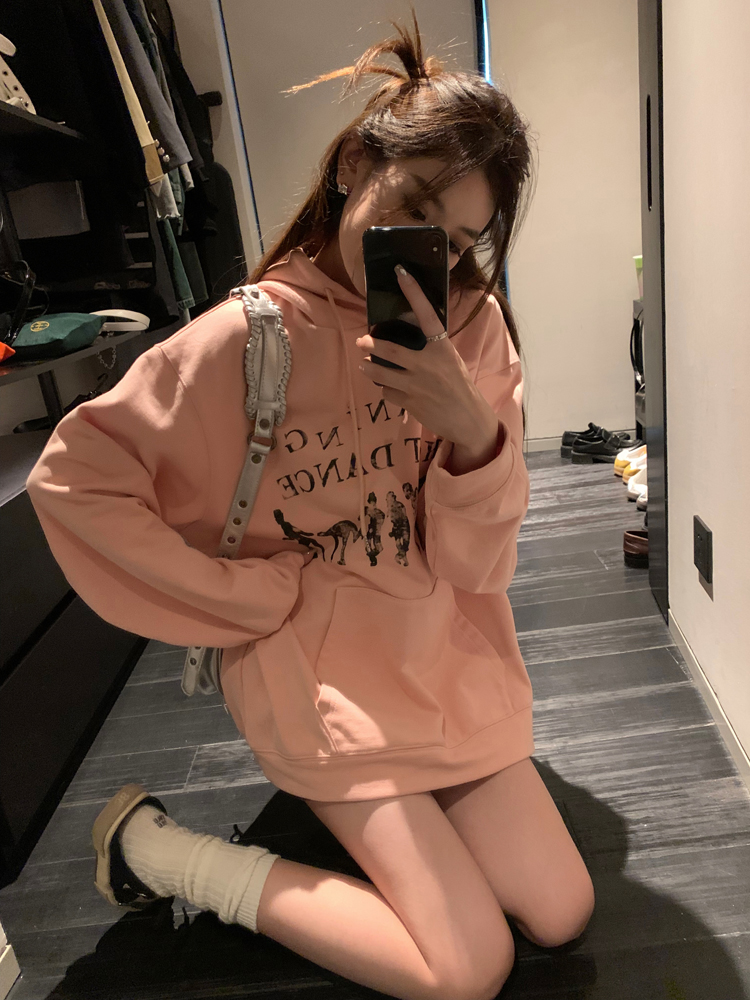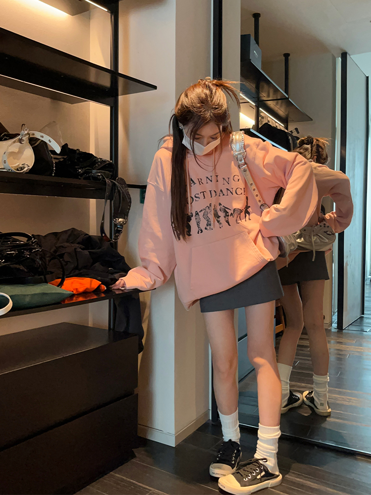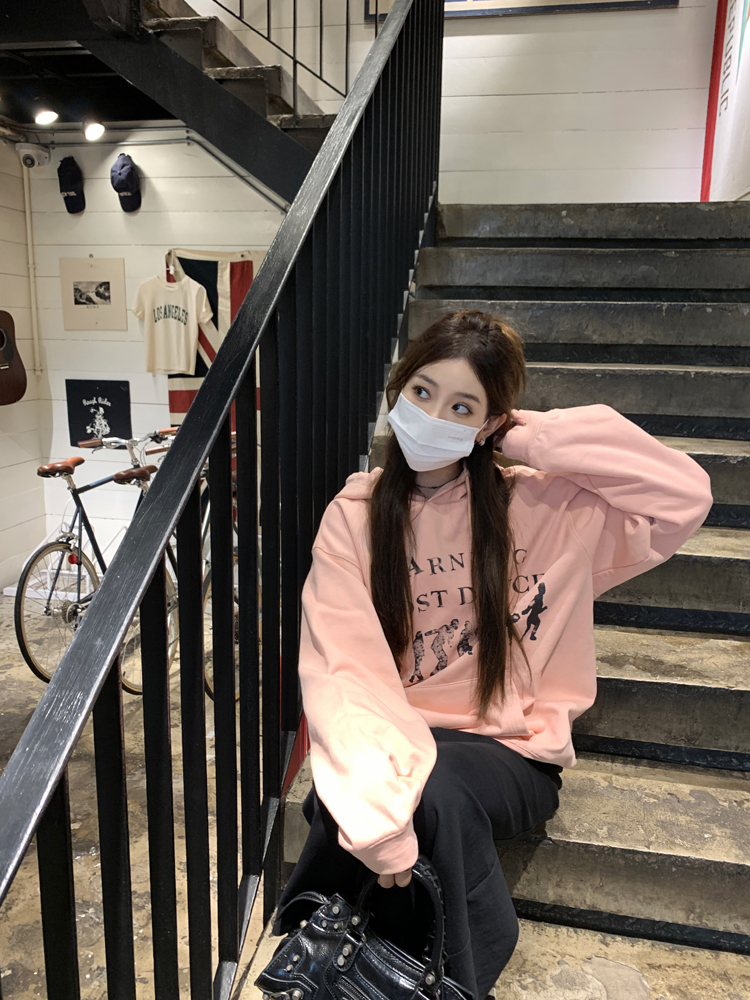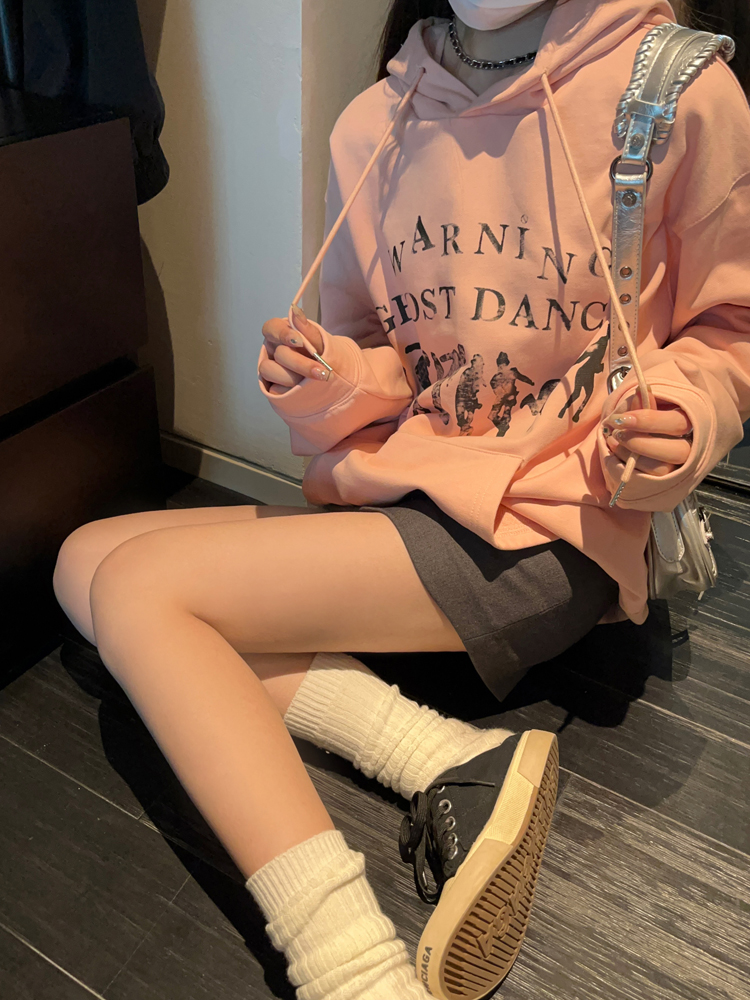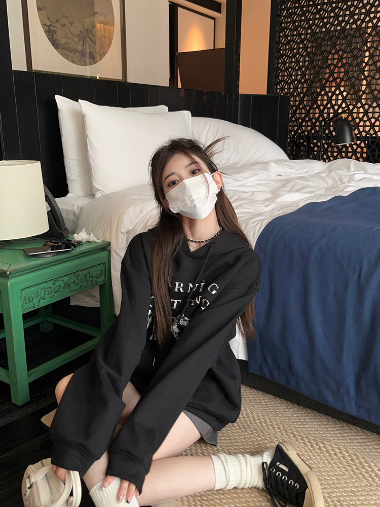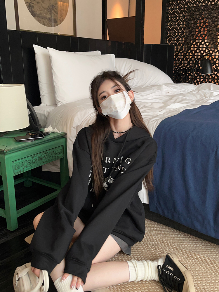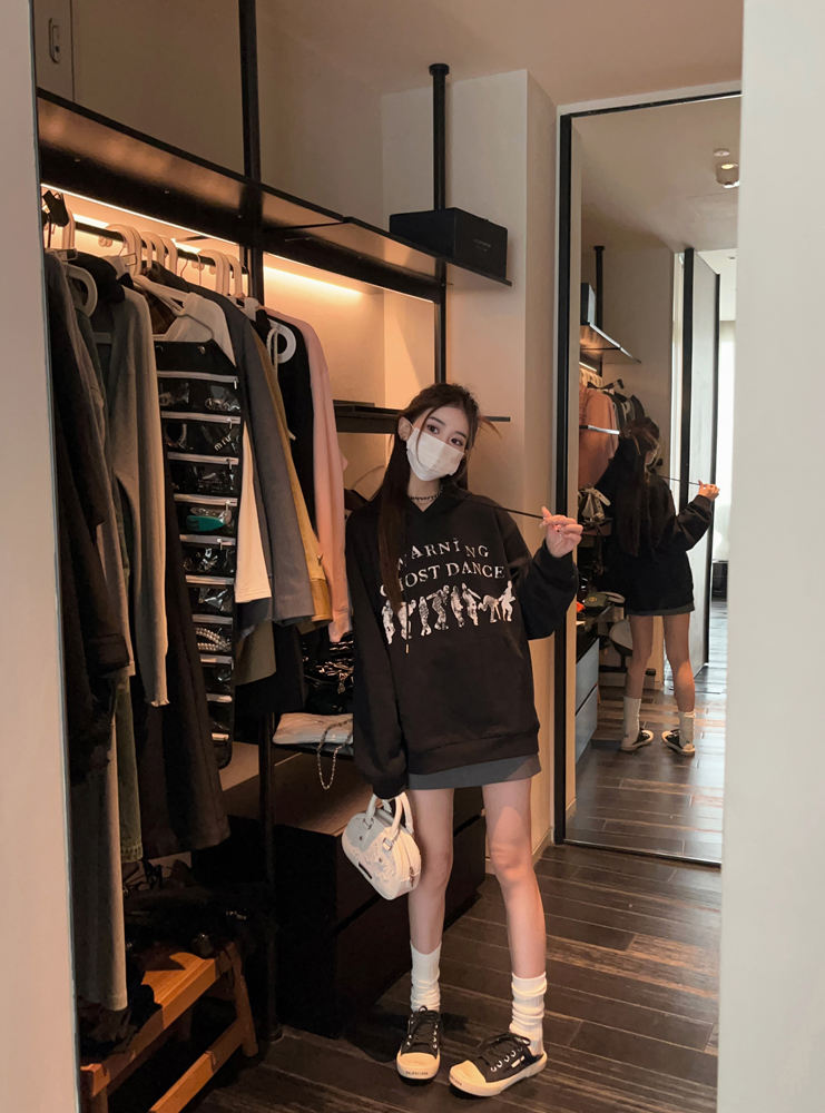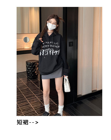 Hhyii 費城留學生 黑色印花連帽運動衫oversize純棉休閒秋季外套女