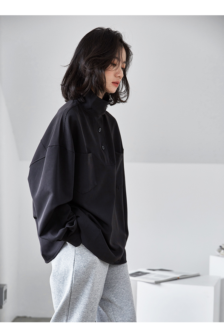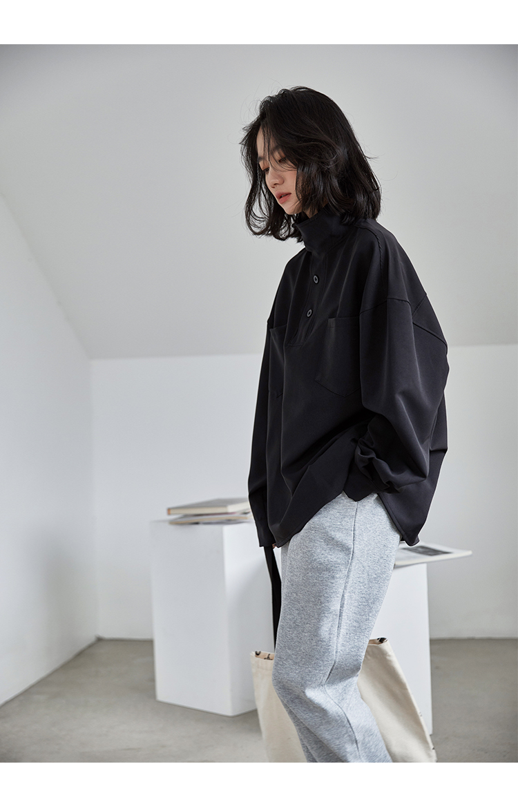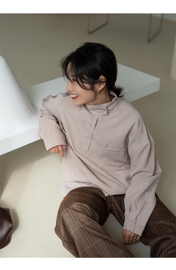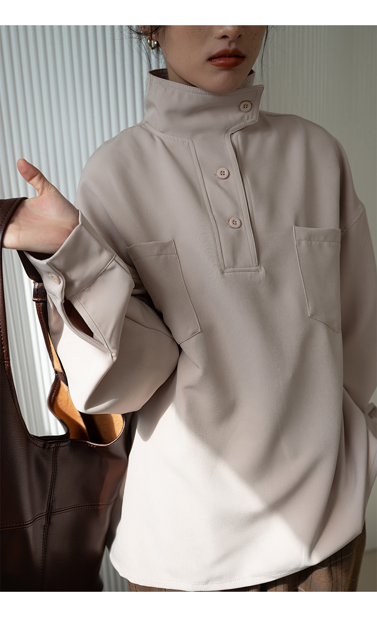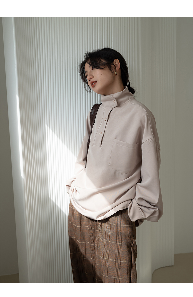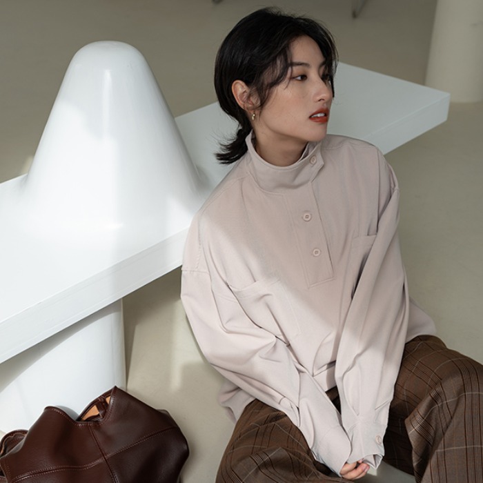 韓版chic小眾設計款立領寬鬆襯衫女秋季新款洋派休閒百搭長袖上衣