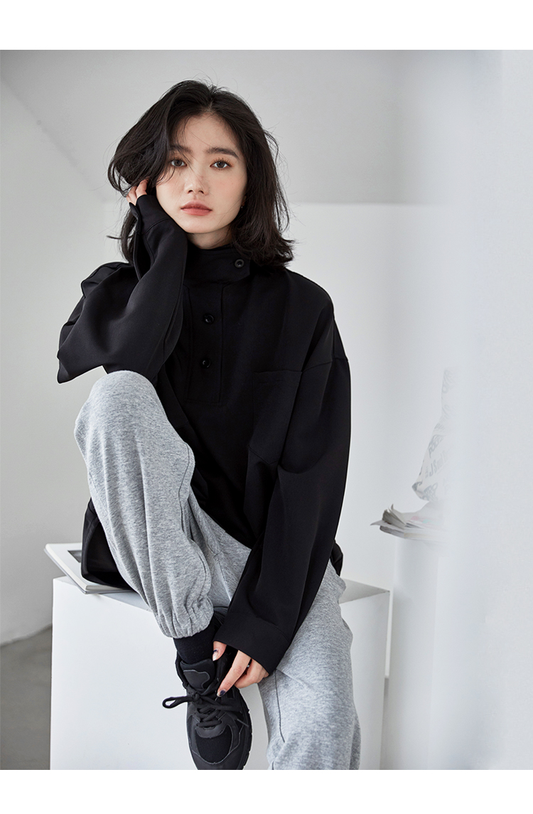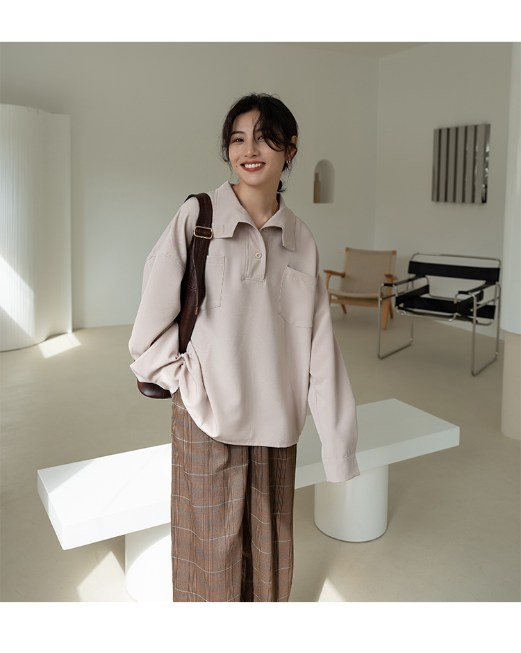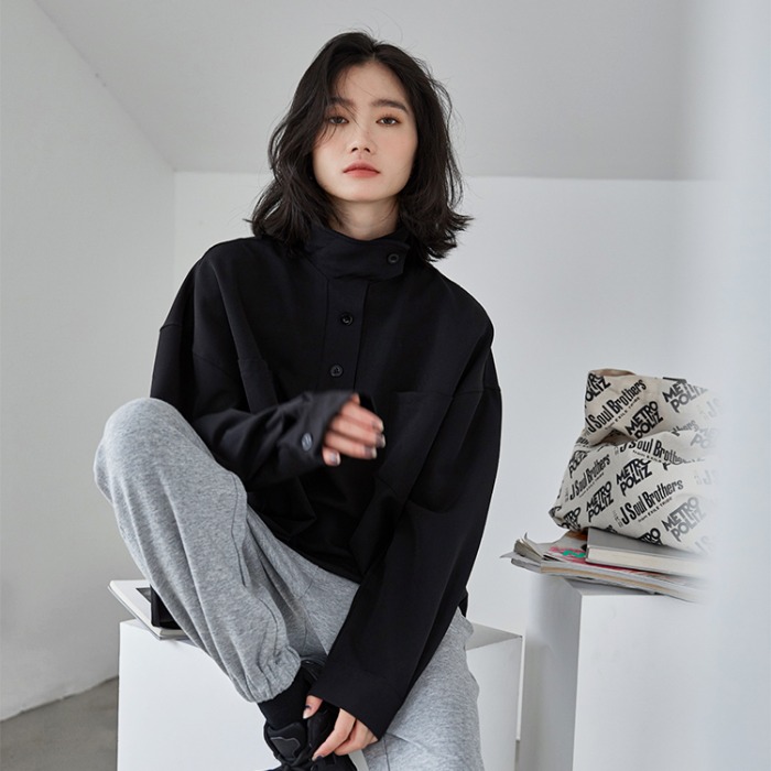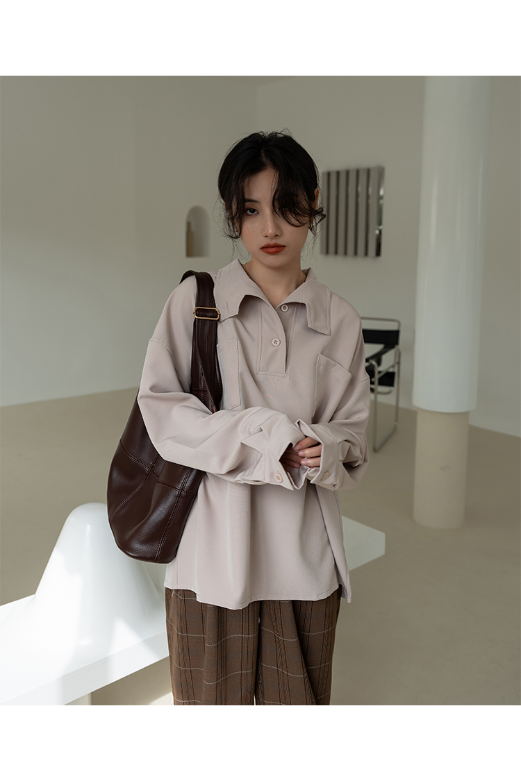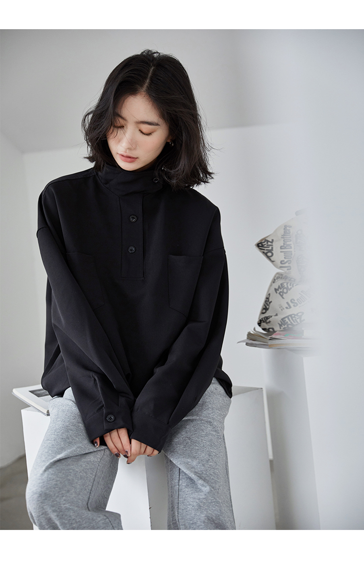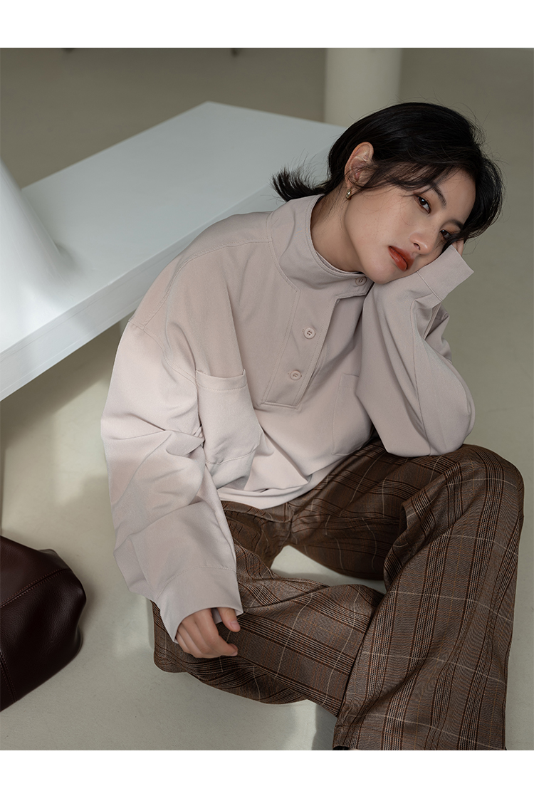 韓版chic小眾設計款立領寬鬆襯衫女秋季新款洋派休閒百搭長袖上衣