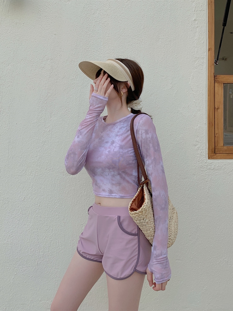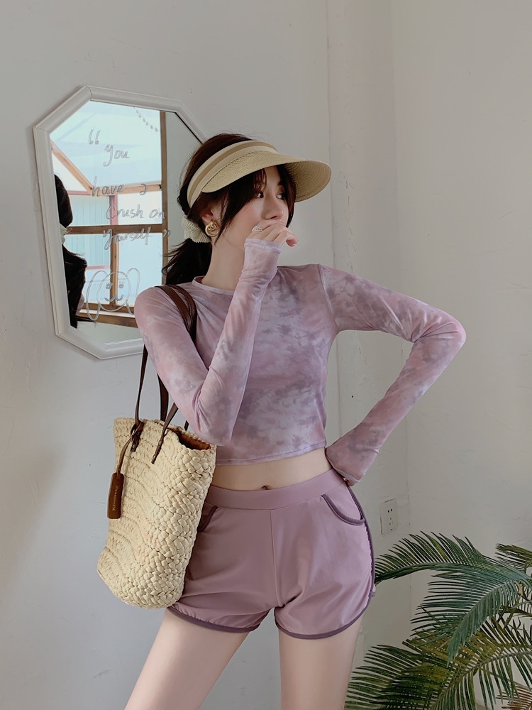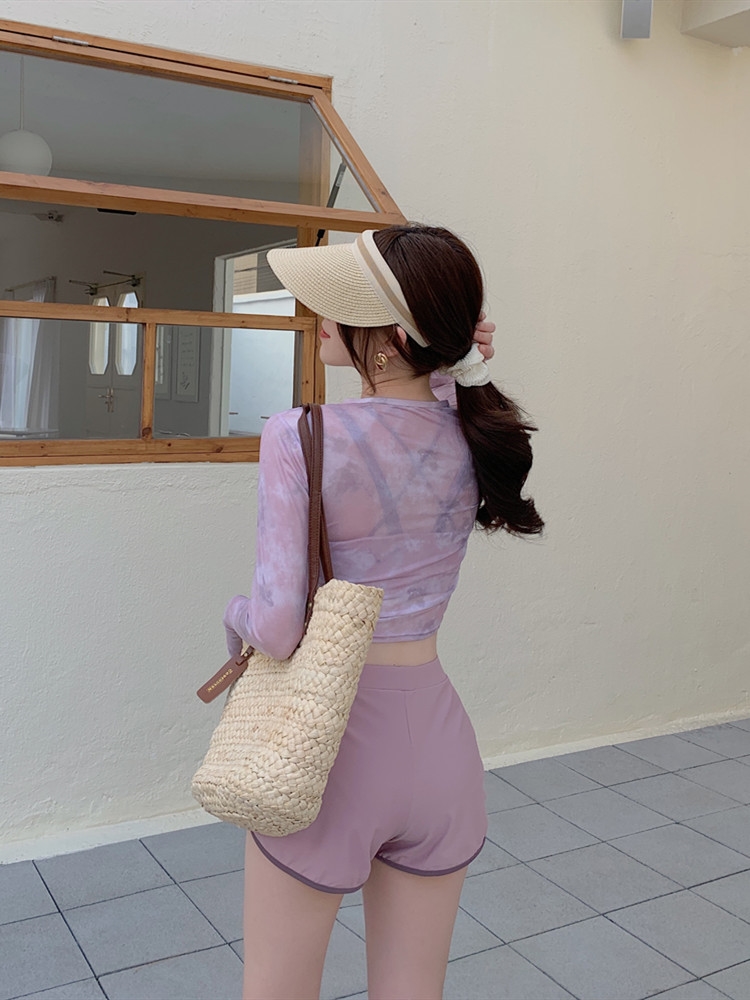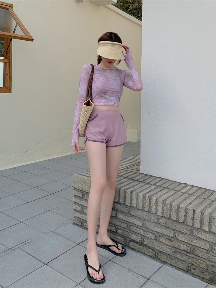 泳衣女夏季罩衫新款時尚溫泉兩件式平角泳裝保守顯瘦長袖防曬遊泳衣