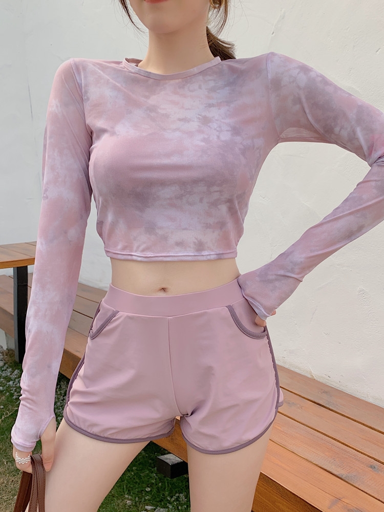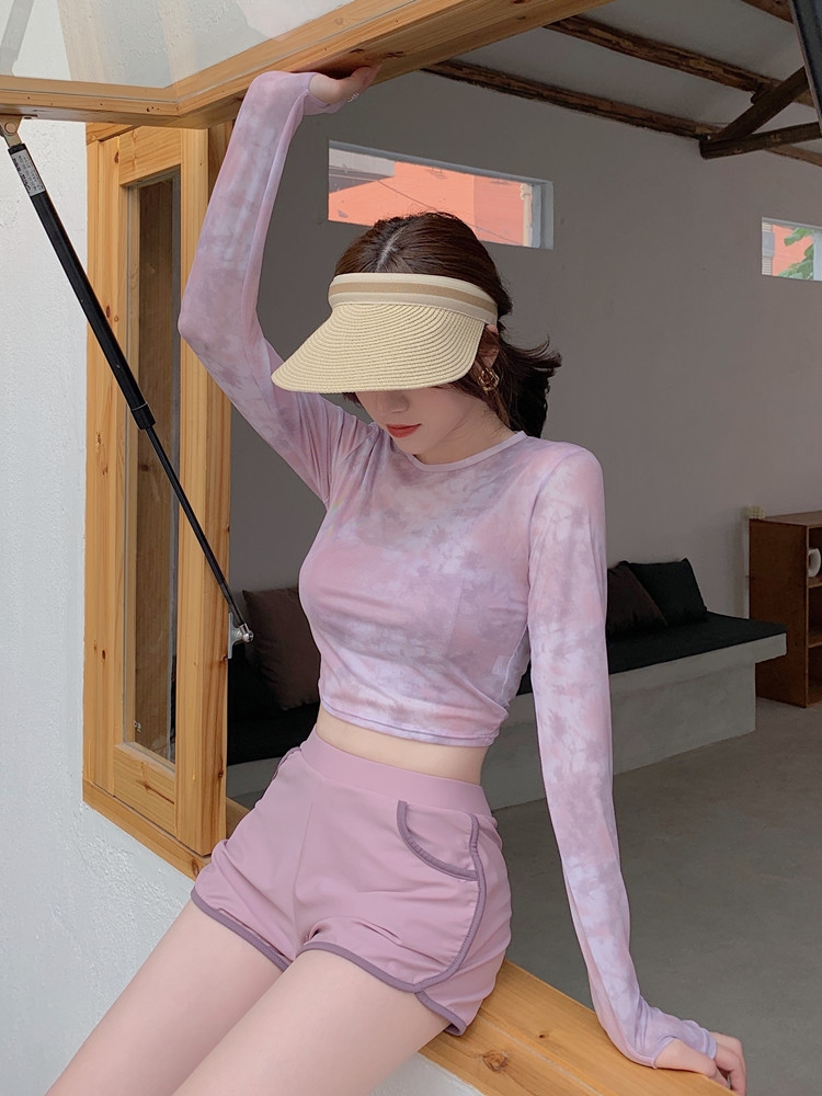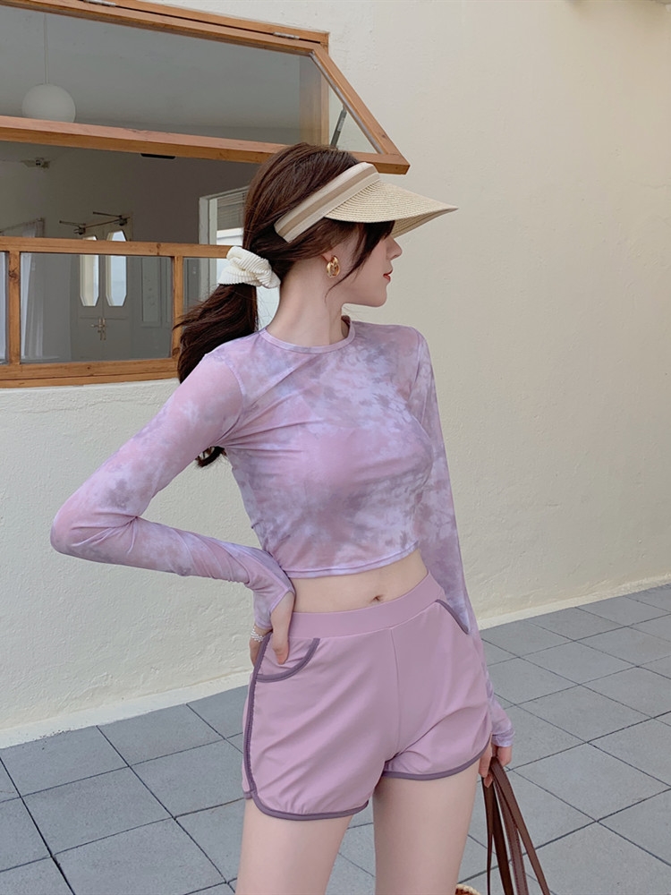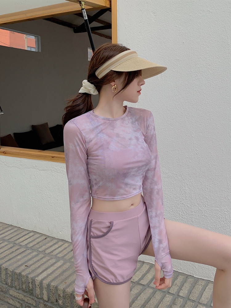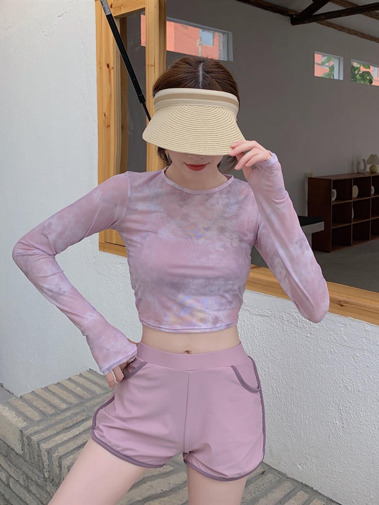 泳衣女夏季罩衫新款時尚溫泉兩件式平角泳裝保守顯瘦長袖防曬遊泳衣