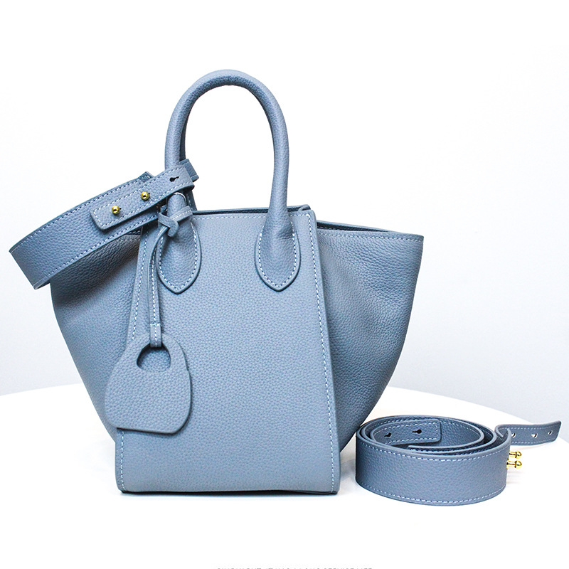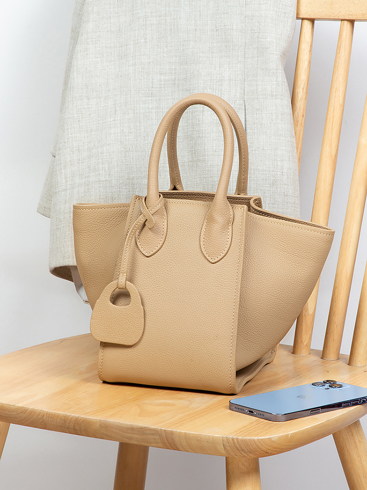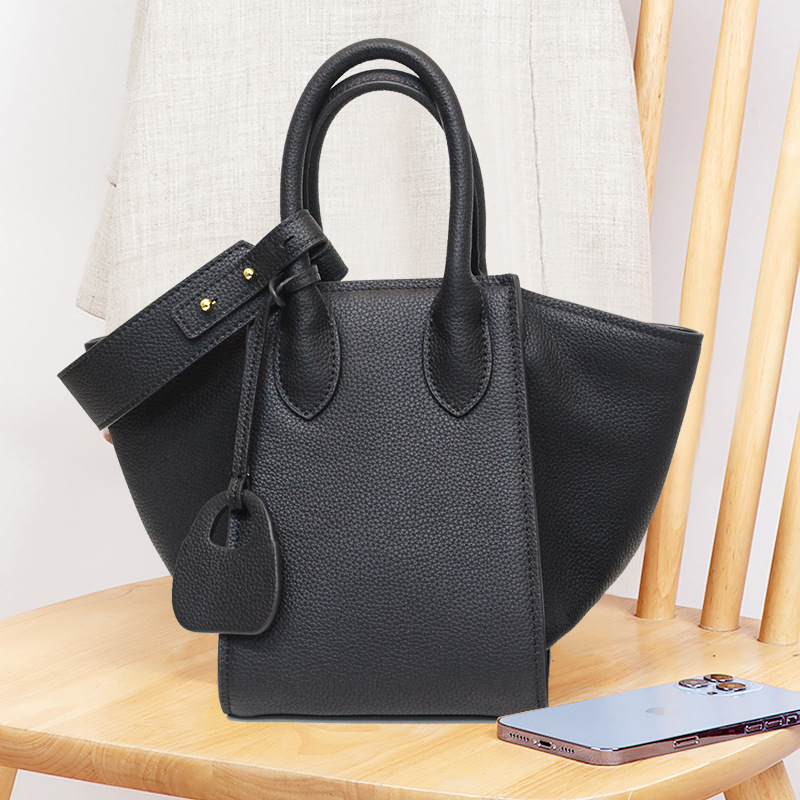 真皮菜蓝子翅膀手提女包2023新款单肩斜挎水桶包大容量托特包小众