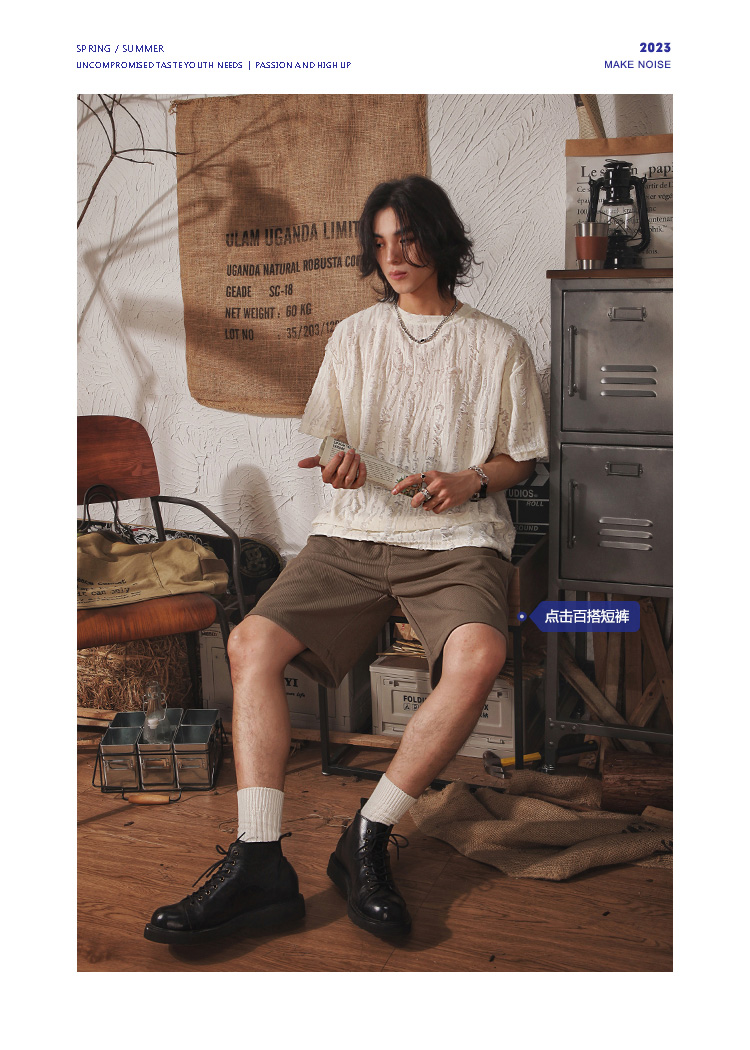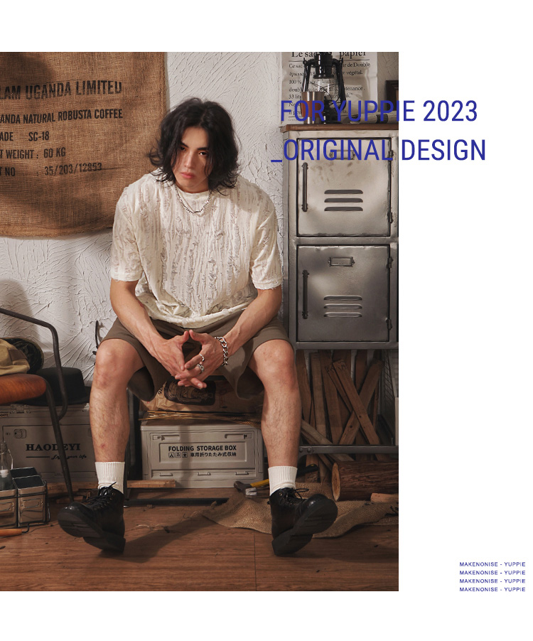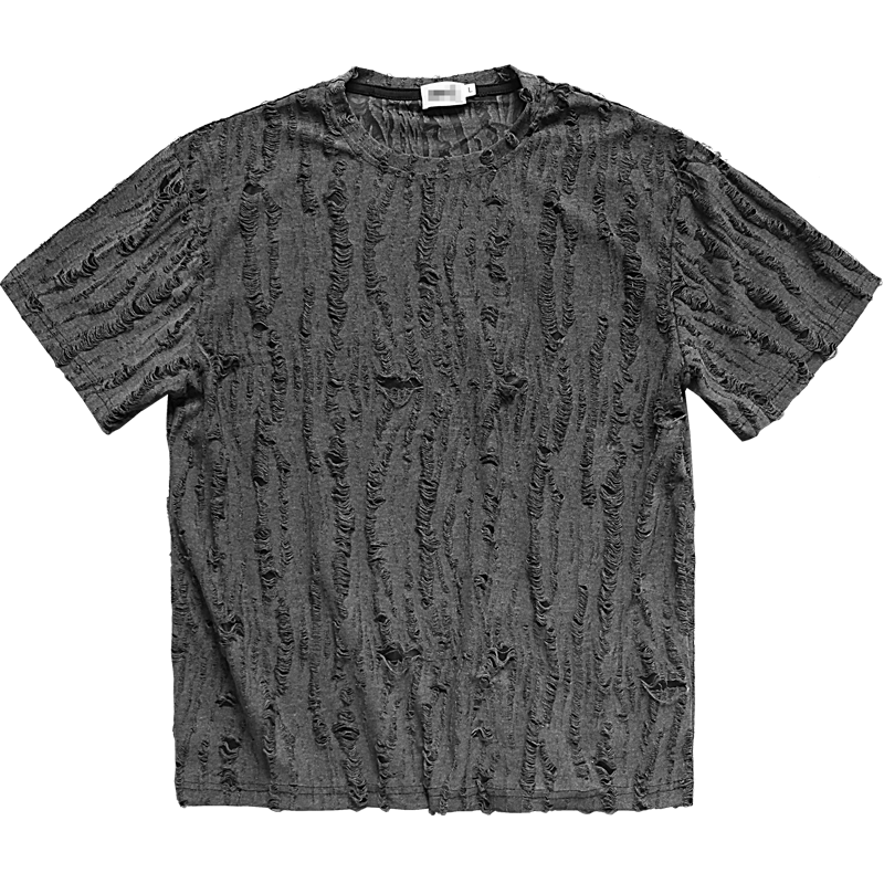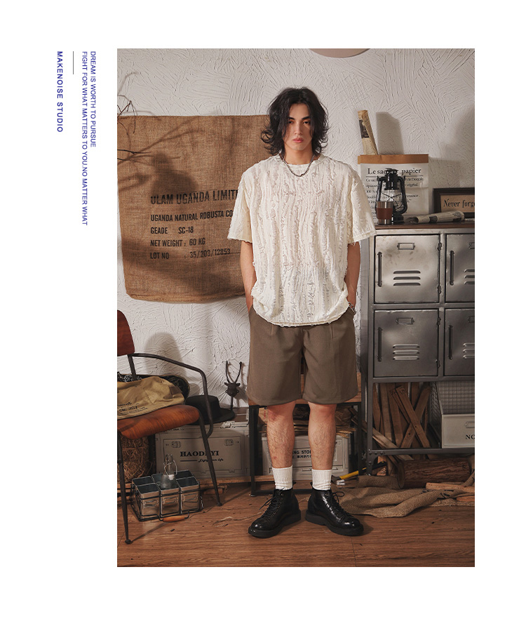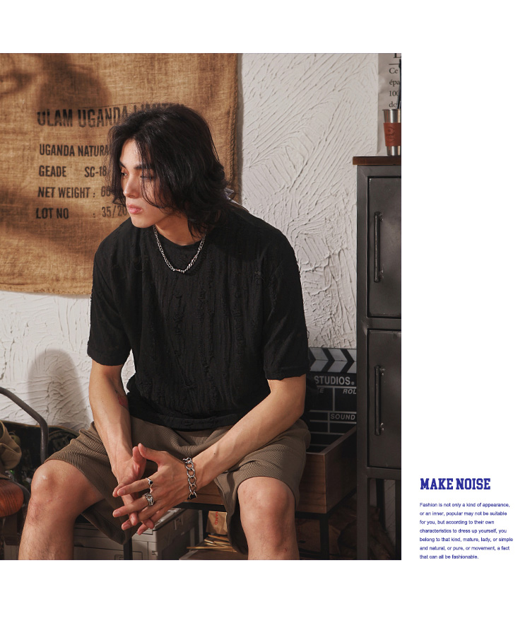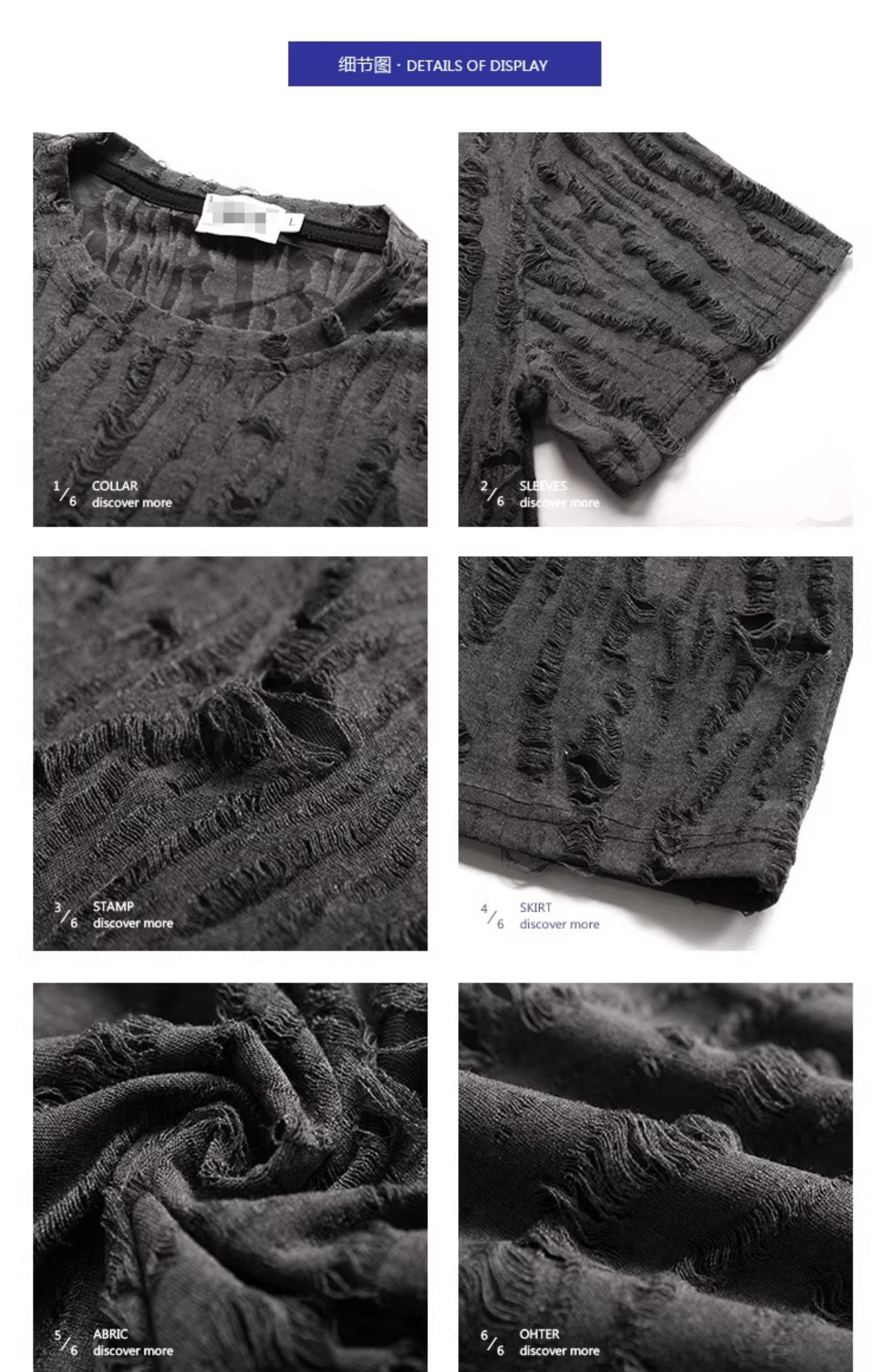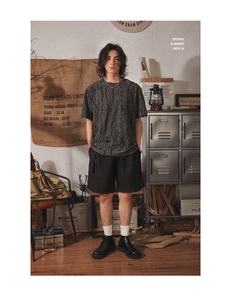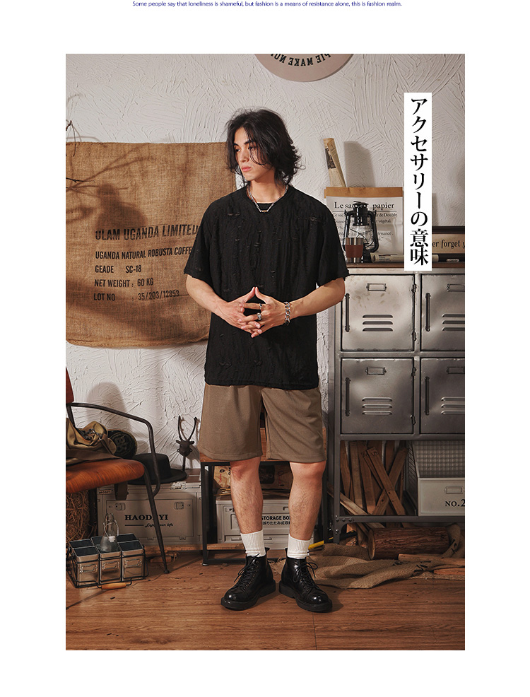 日系復古小眾設計感鏤空破洞短袖T恤男夏季潮牌純色休閒半袖T恤