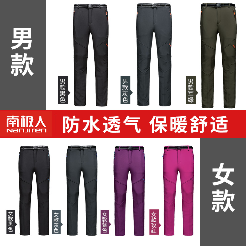 南極人冬季戶外衝鋒褲男女加絨加厚防風防水褲徒步登山滑雪軟殼褲
