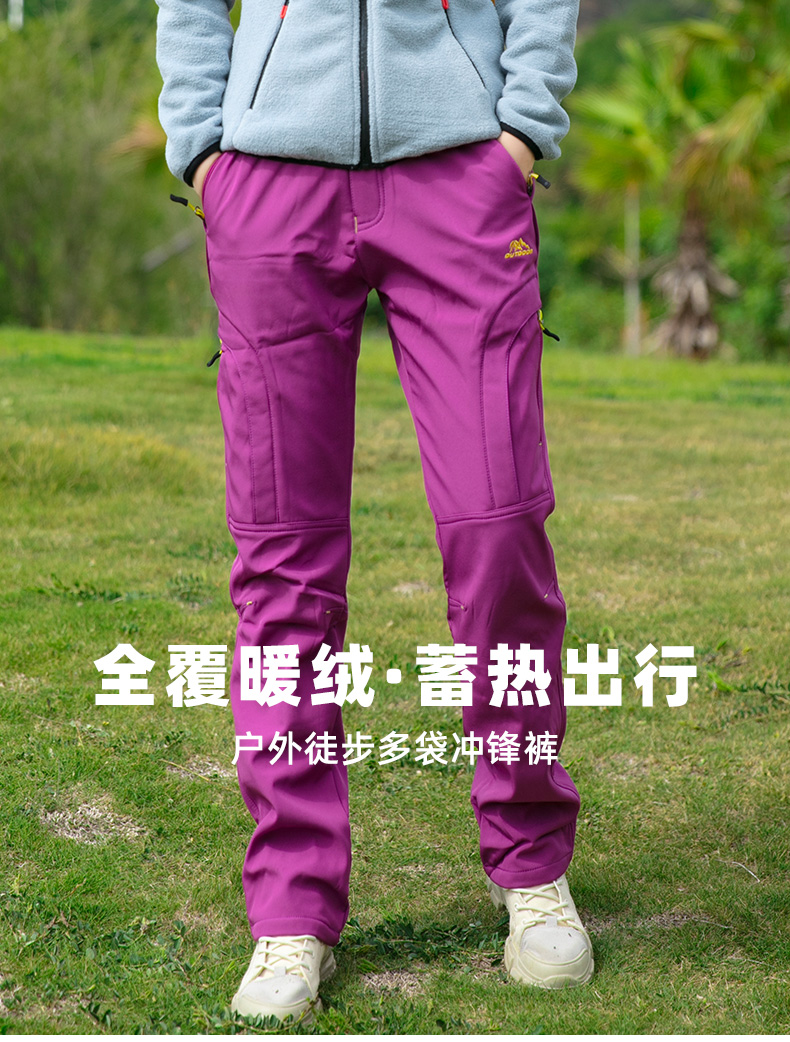 戶外衝鋒褲女式加絨加厚保暖防風抗寒防水軟殼騎車防寒進藏登山褲