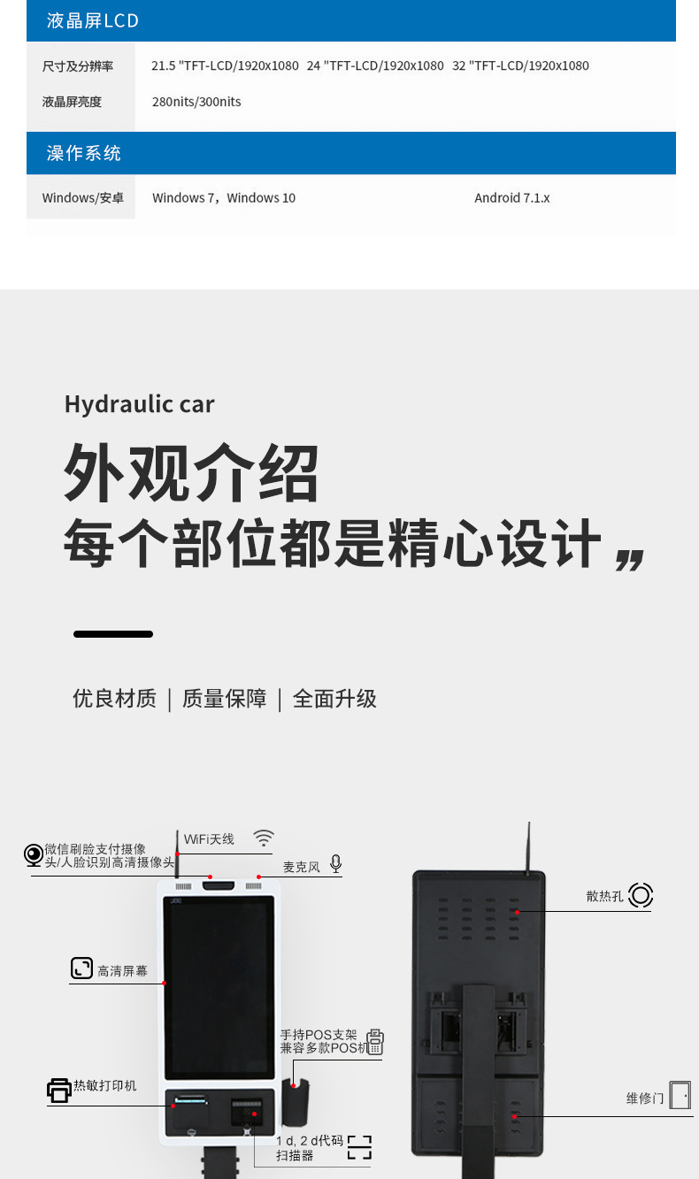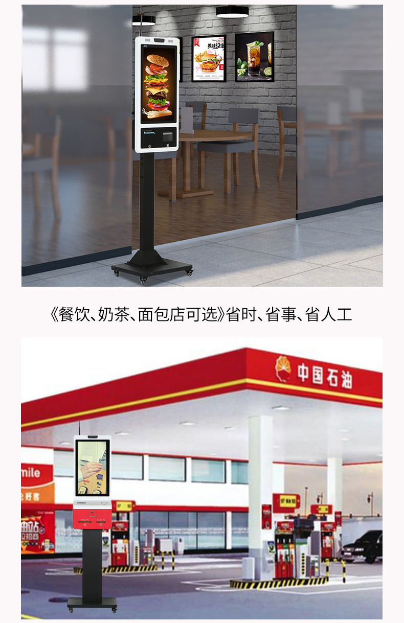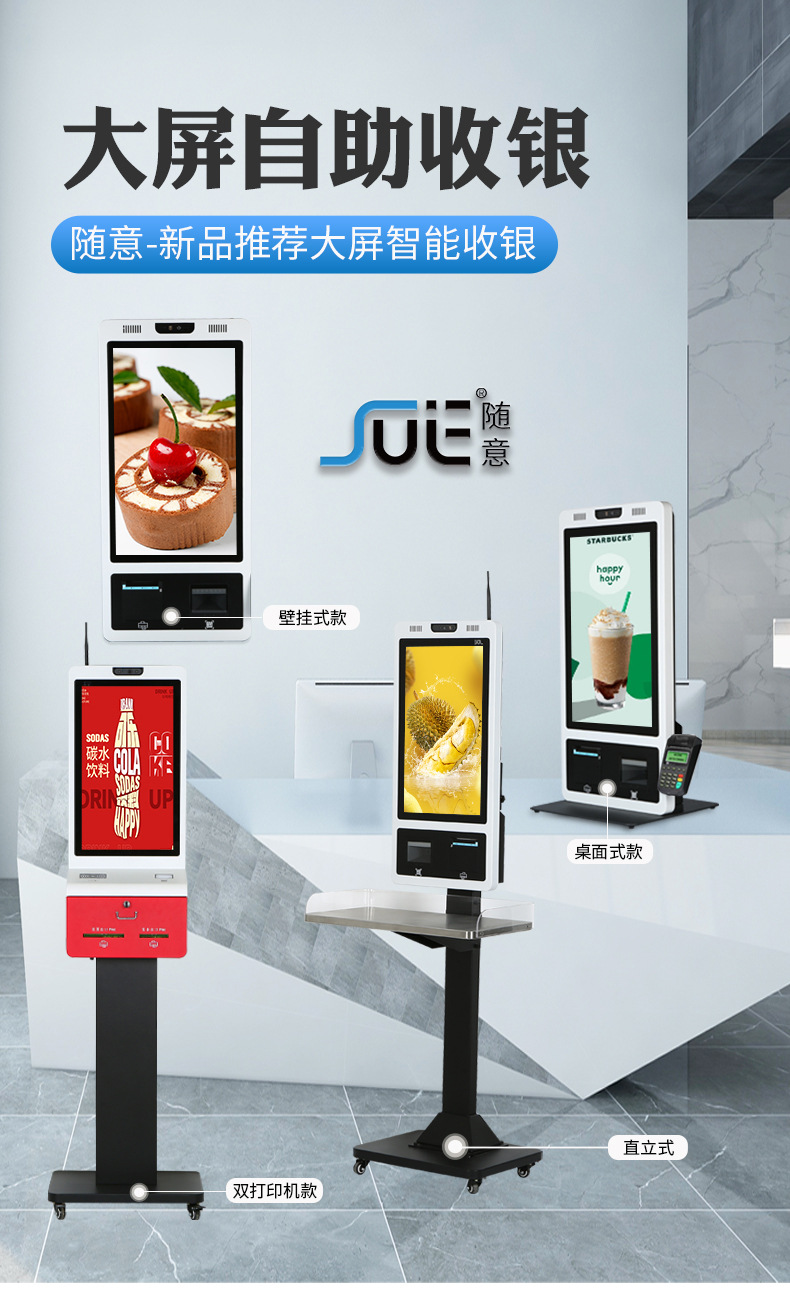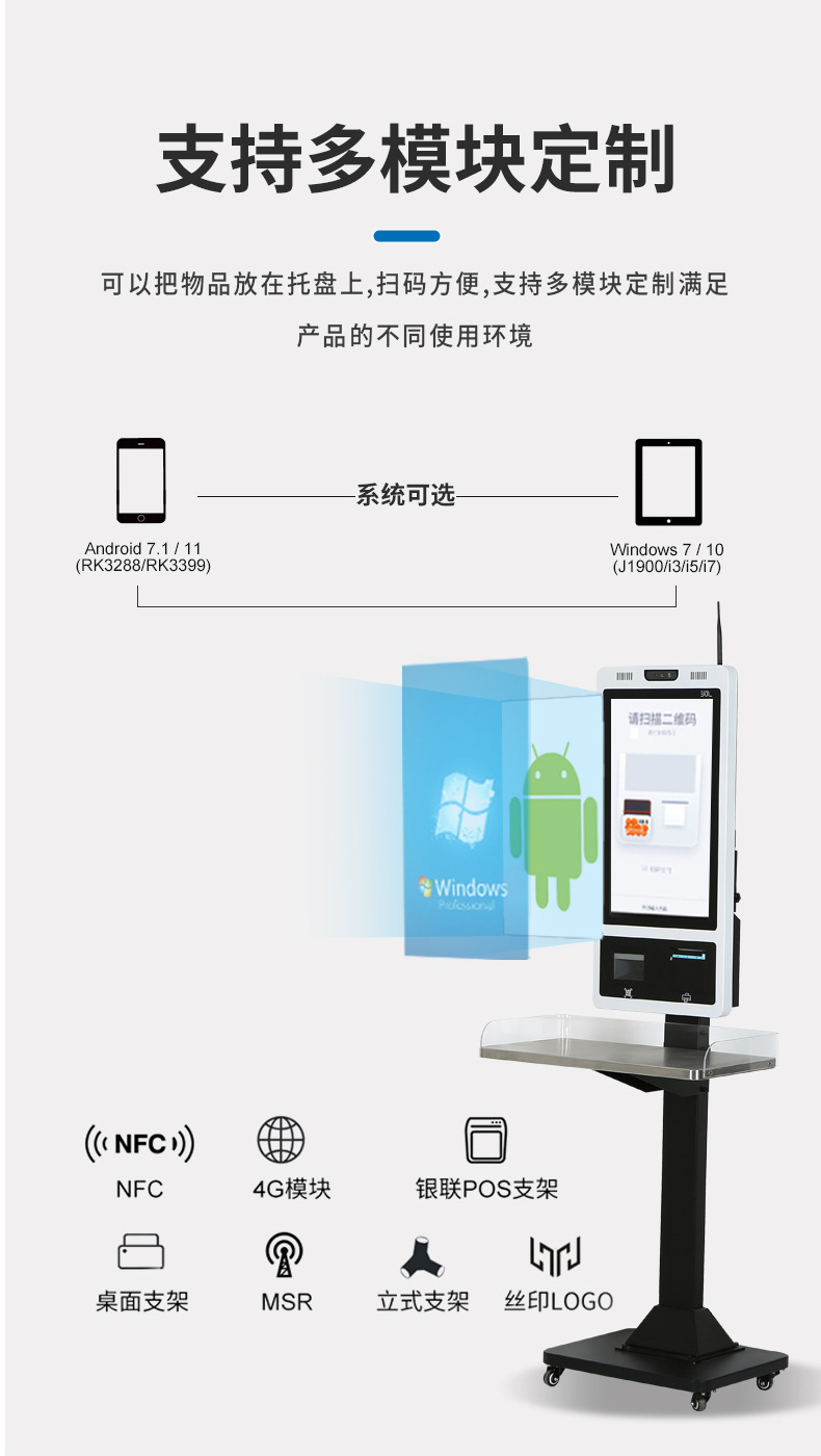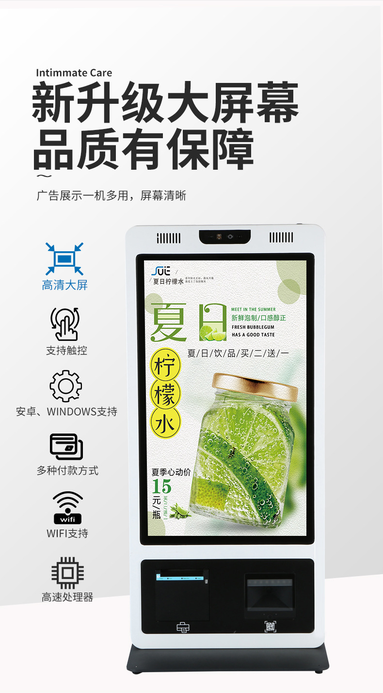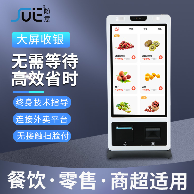 自助结算触摸屏餐饮超市立式点单刷脸扫码支付点餐收银结算一体机