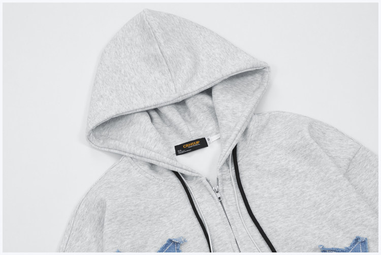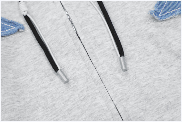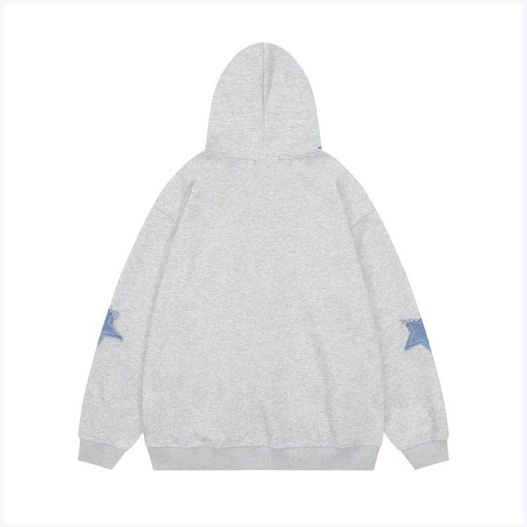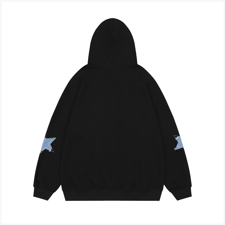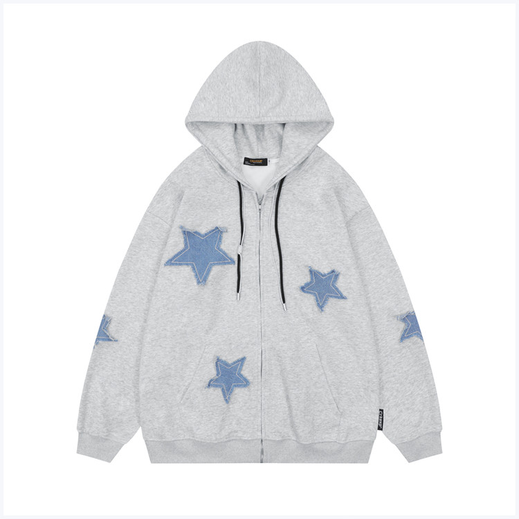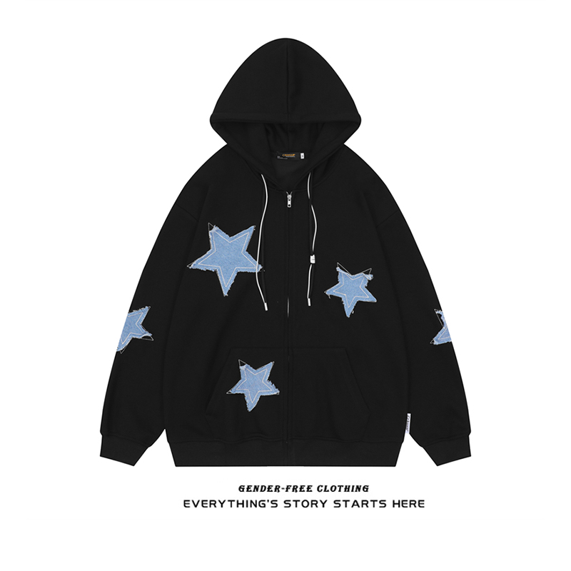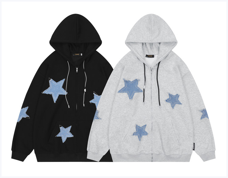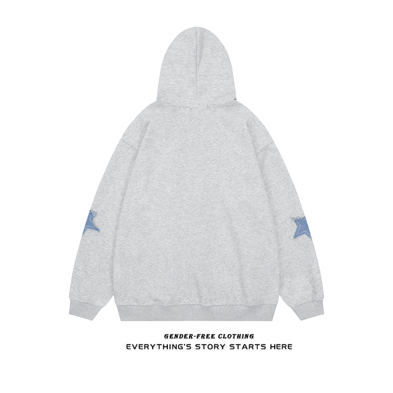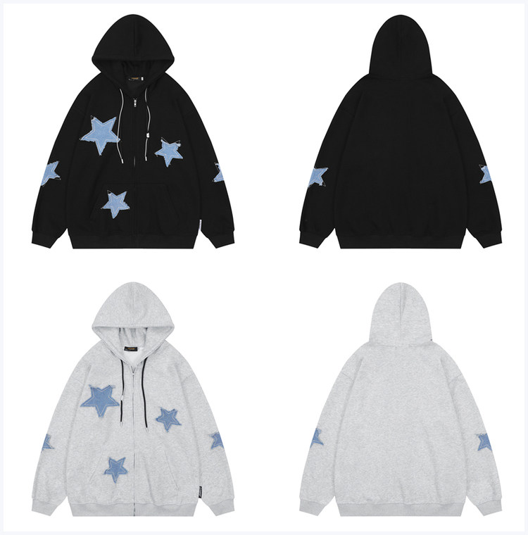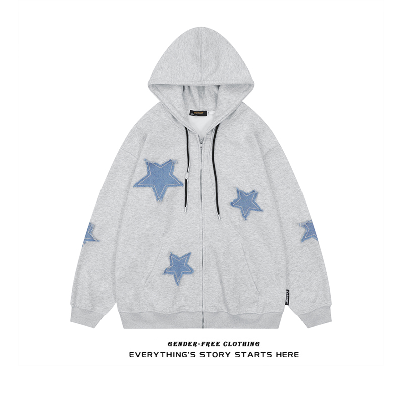 Jayihome加絨牛仔五角星連帽開衫拉鍊衛衣女寬鬆加厚保暖外套秋冬