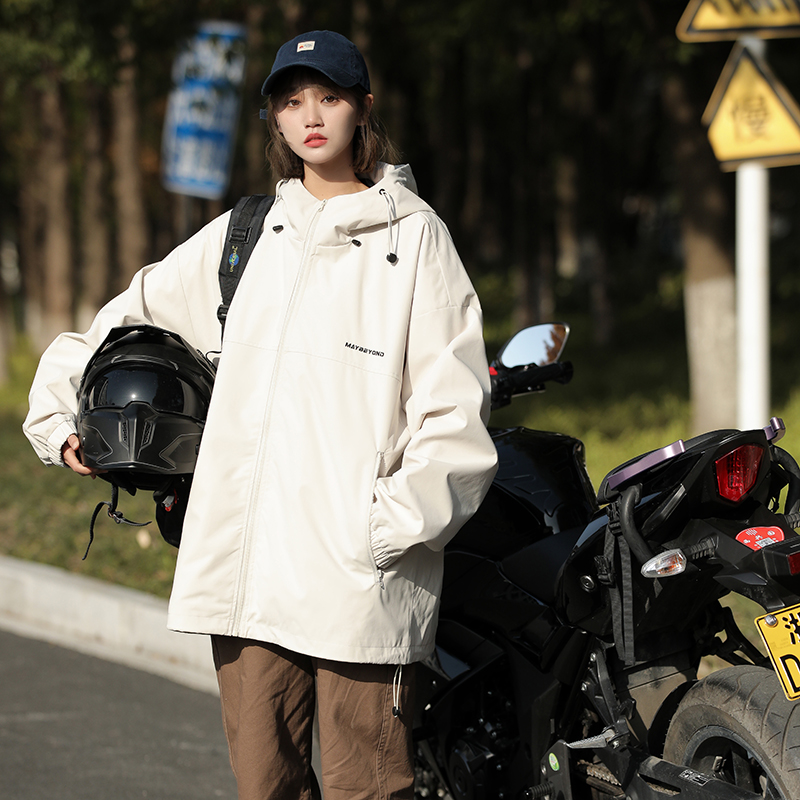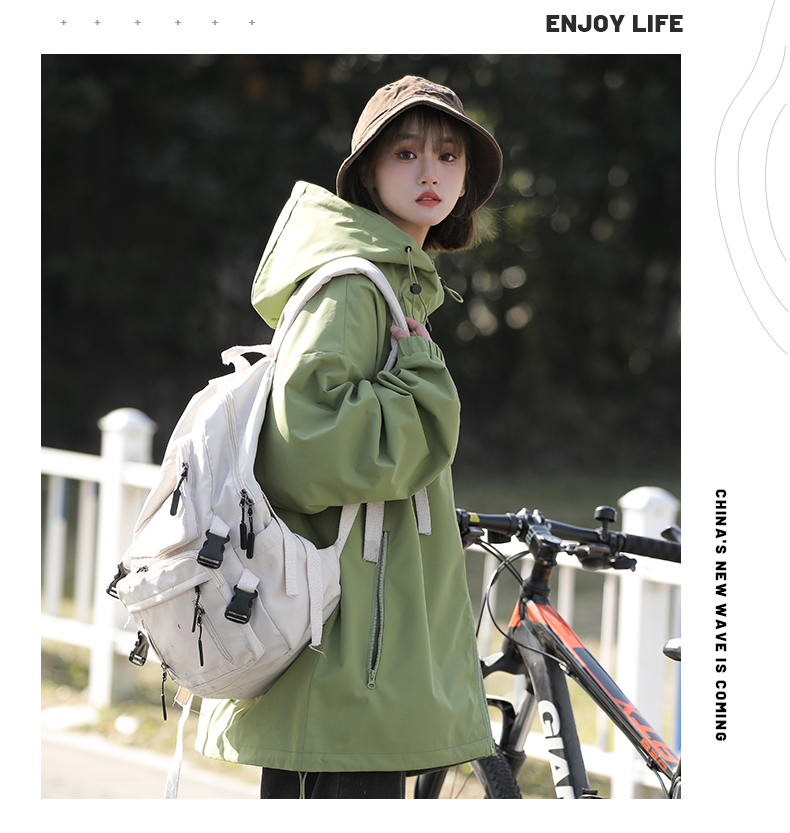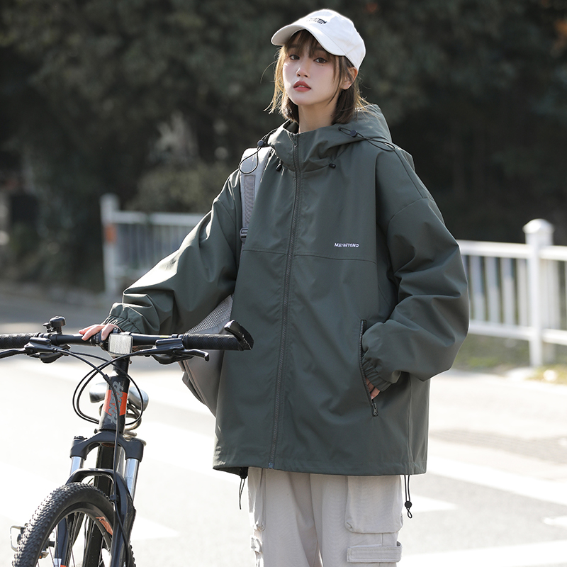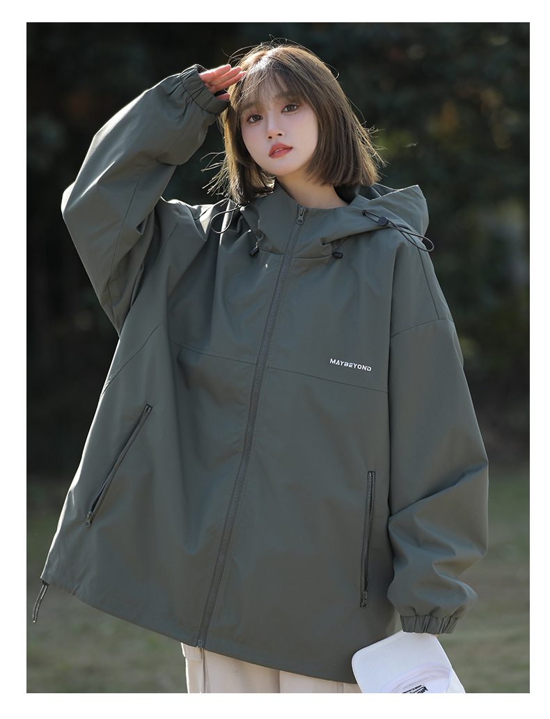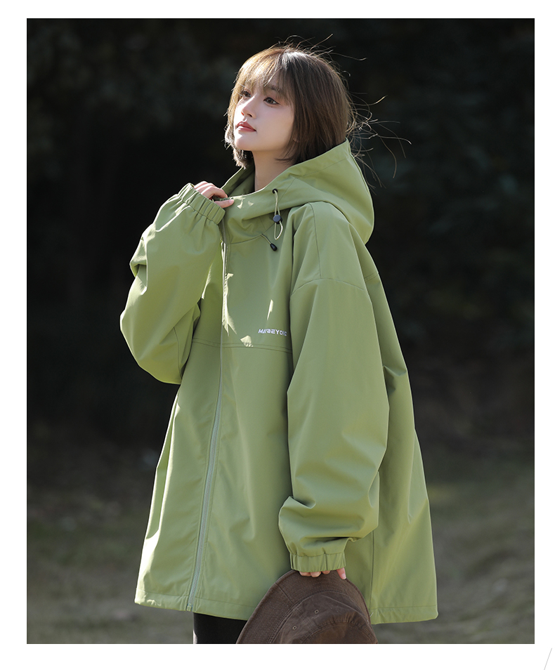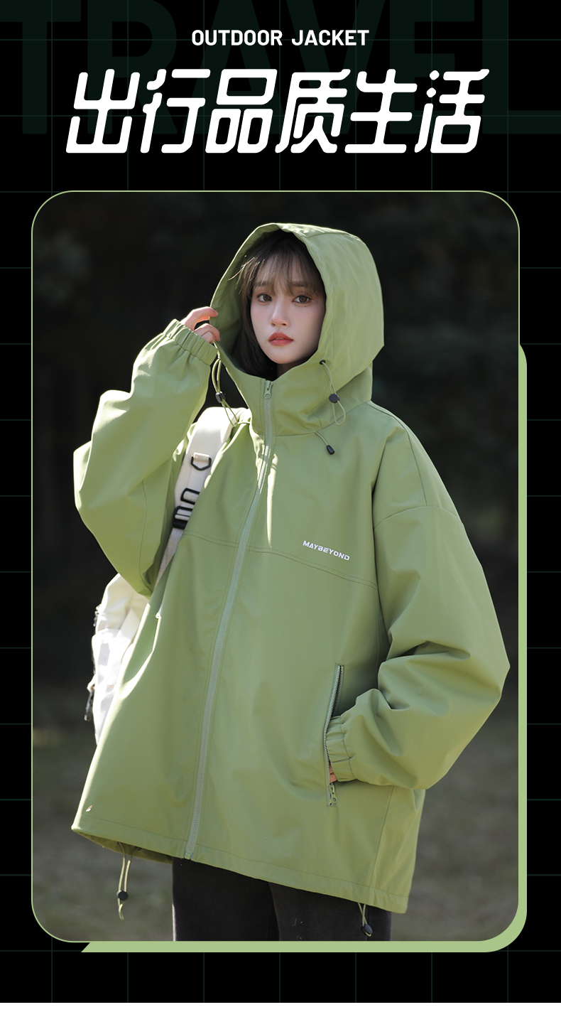 果綠色高級感外套女美式戶外衝鋒衣夏薄款工裝防曬衣登山爬山風衣