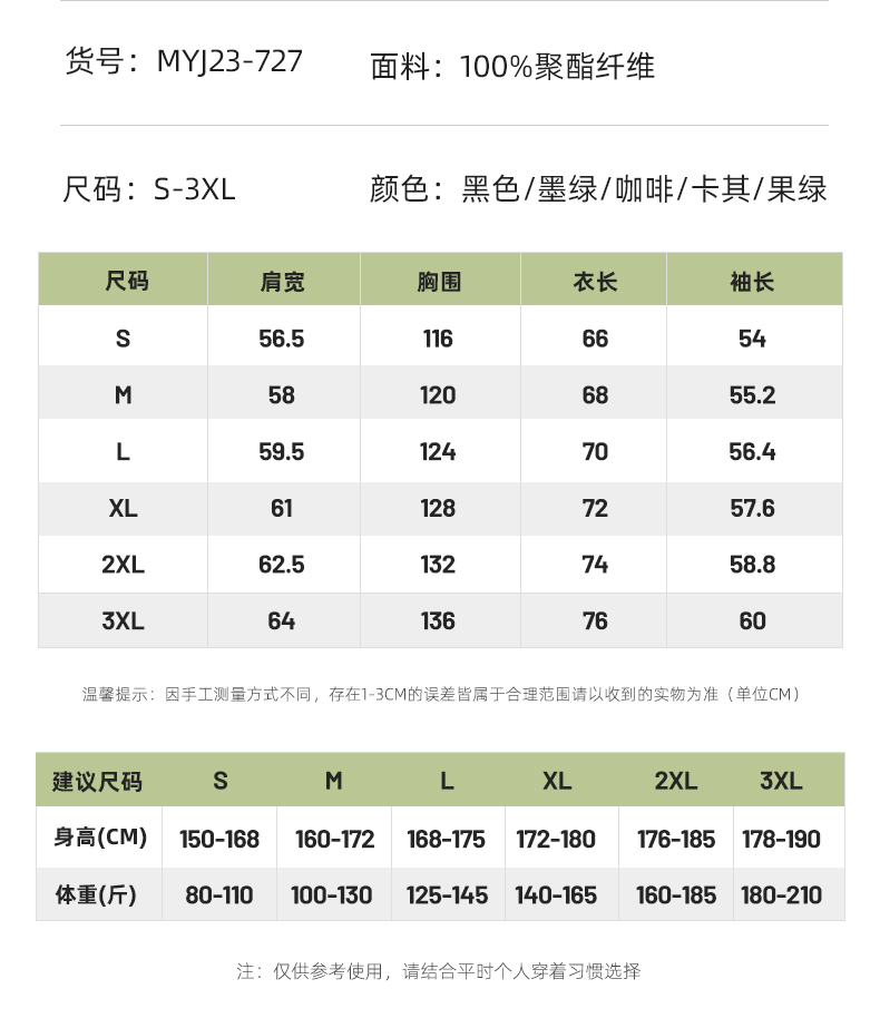 顏色分類 黑色 果綠色 卡其色 墨綠色 咖啡色 黑色防曬衣款 灰色防曬衣款 白色防曬衣款 果綠色防曬衣款