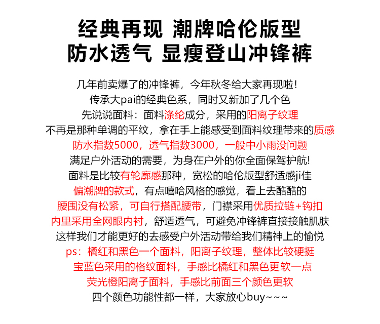 北京森林戶外秋冬新品登山旅行潮牌防水壓膠防風透氣哈倫衝鋒褲女