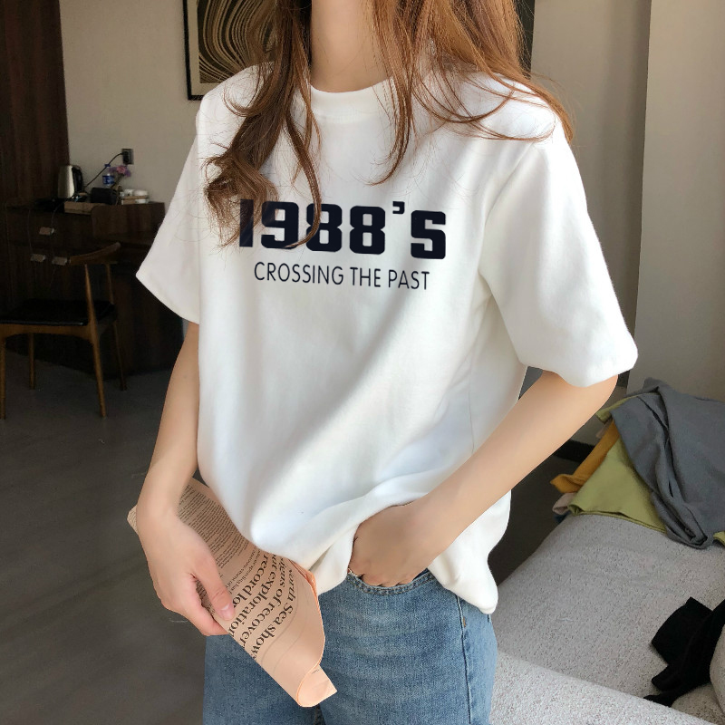 正肩短袖白色t恤女裝圓領夏季早秋打底衫2023年新款T恤女士上衣