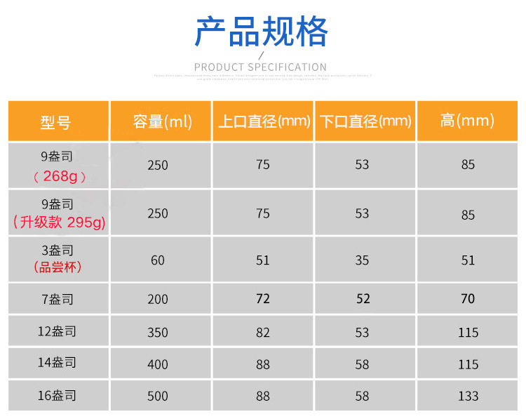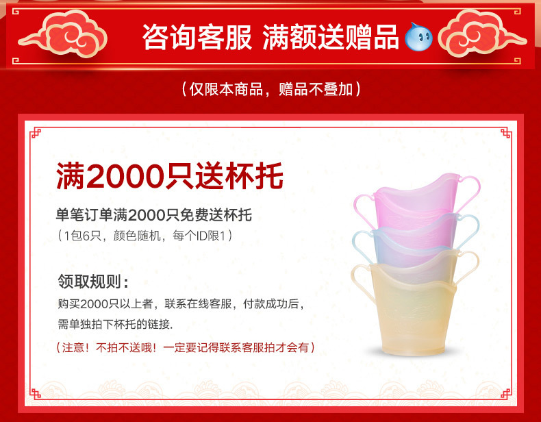型号 500个起订,1000个100元包邮,2000个190元包邮,5000个420元包邮,10000个810元包邮,【赠品】取杯器1只,,单拍不发货,联系客服满500元起送