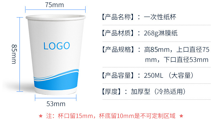 纸杯定 做批发定 制印logo纸杯一次性纸杯子9盎司加厚广告茶水杯