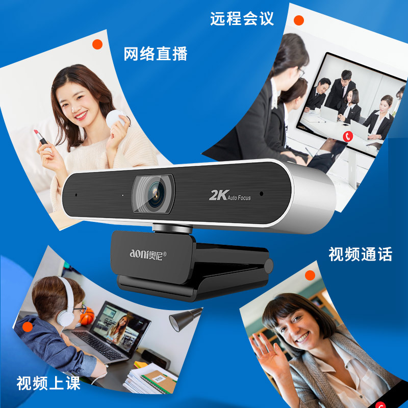 奥尼A30pro电脑摄像头2K高清大广角自动对焦视频直播会议网课带麦