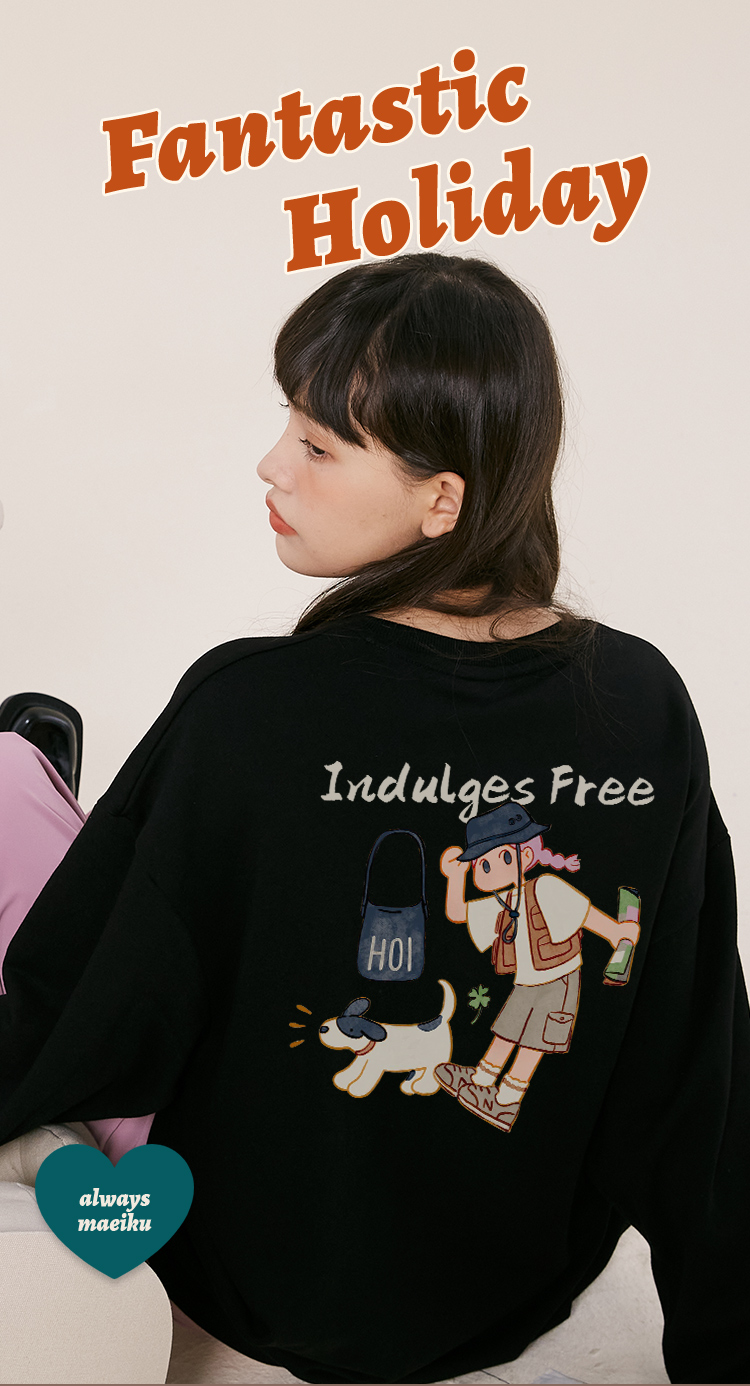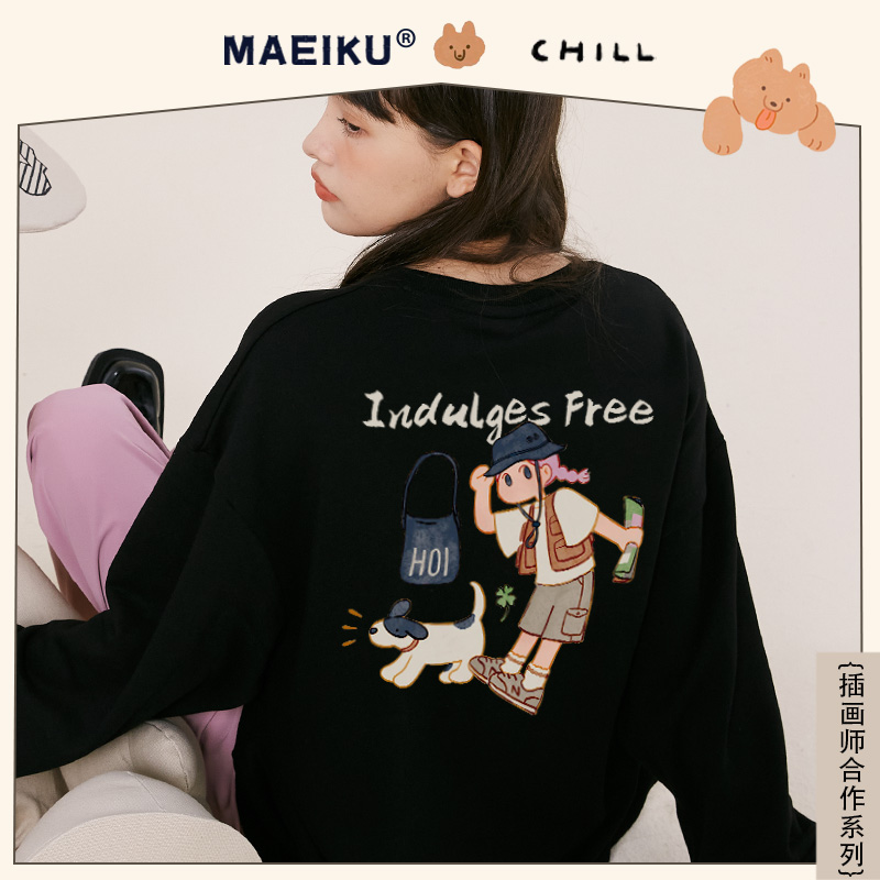 插畫師原創加絨加厚小眾女士厚T恤女款2023新款爆款寬鬆秋冬季黑色
