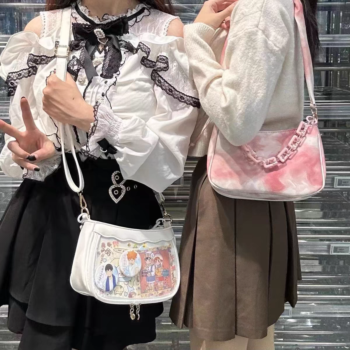 原创水墨痛小食量腋下痛包双面背单甜美lolita单肩腋下斜跨包