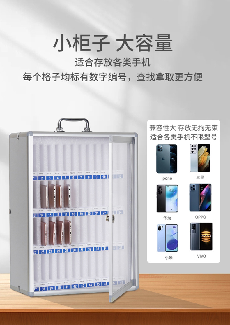 金隆兴手机保管箱宿舍会议学生教室带锁透明手提铝合金手机存放箱
