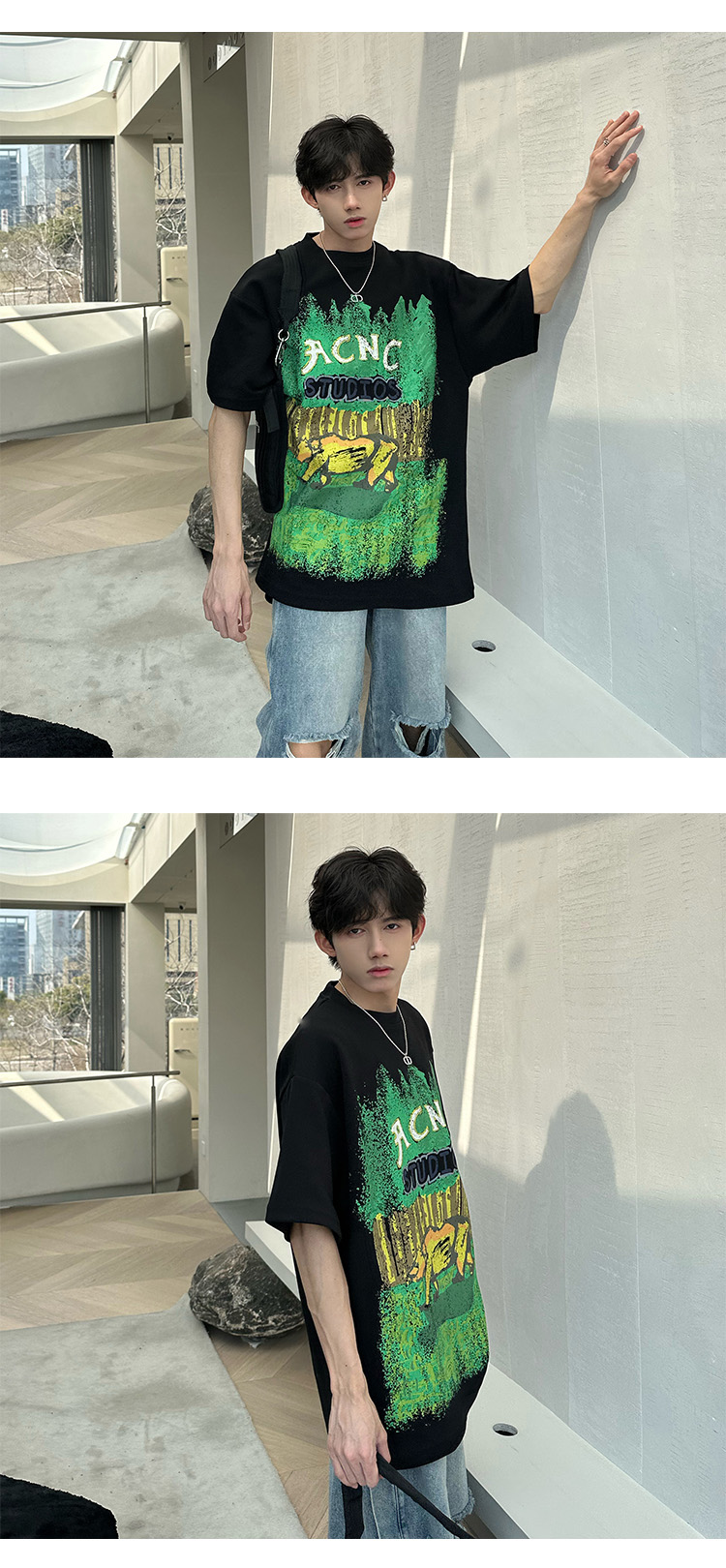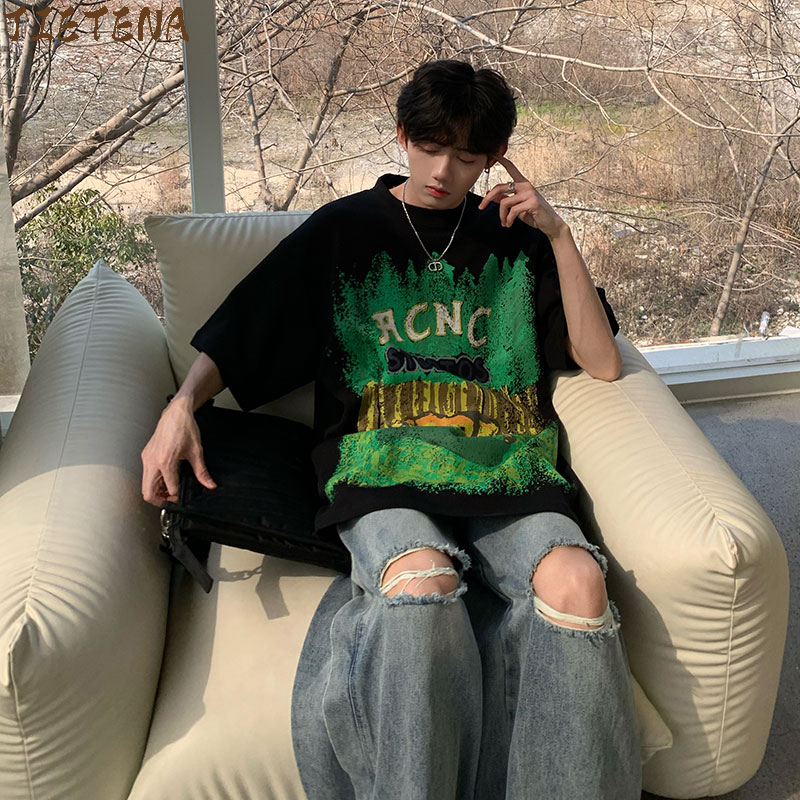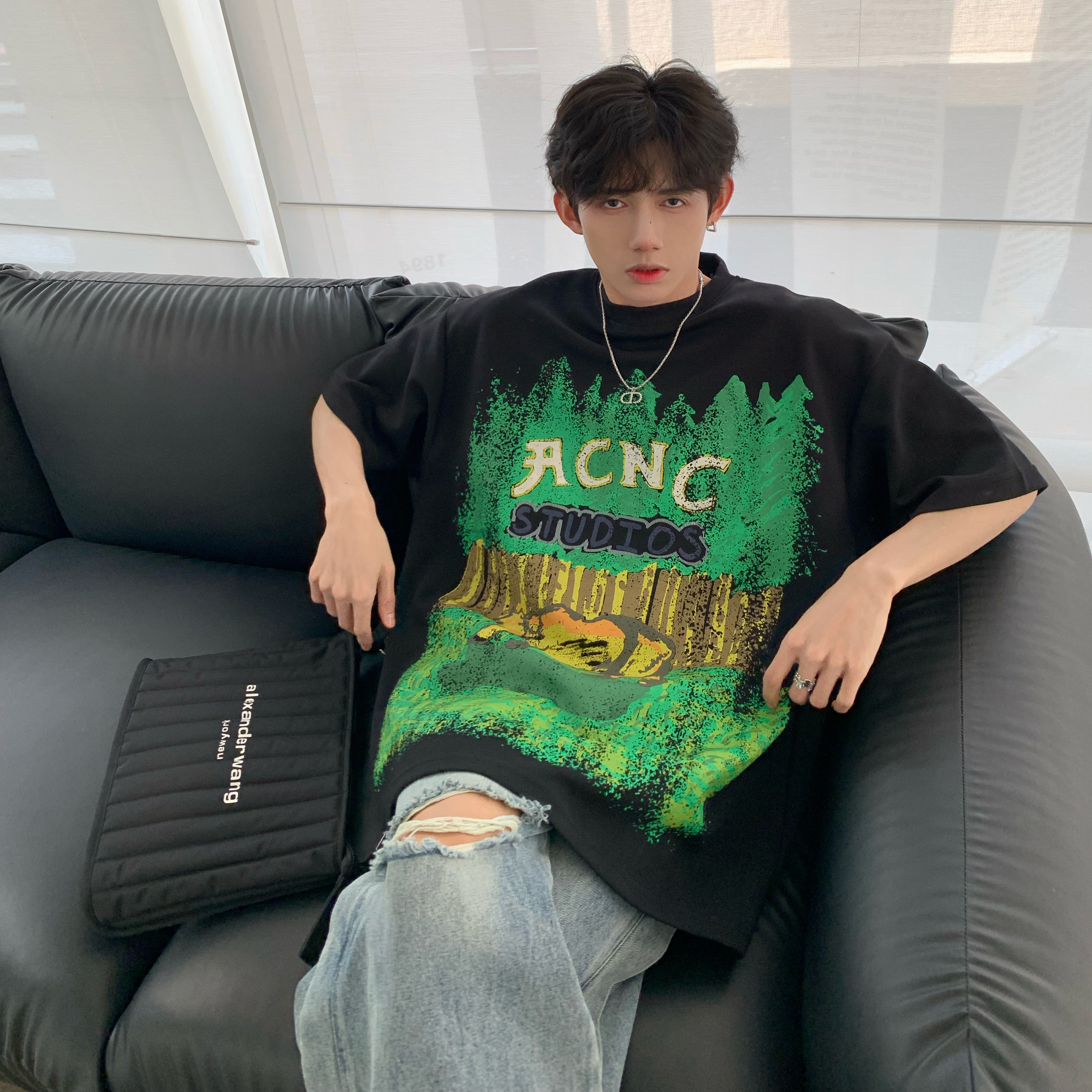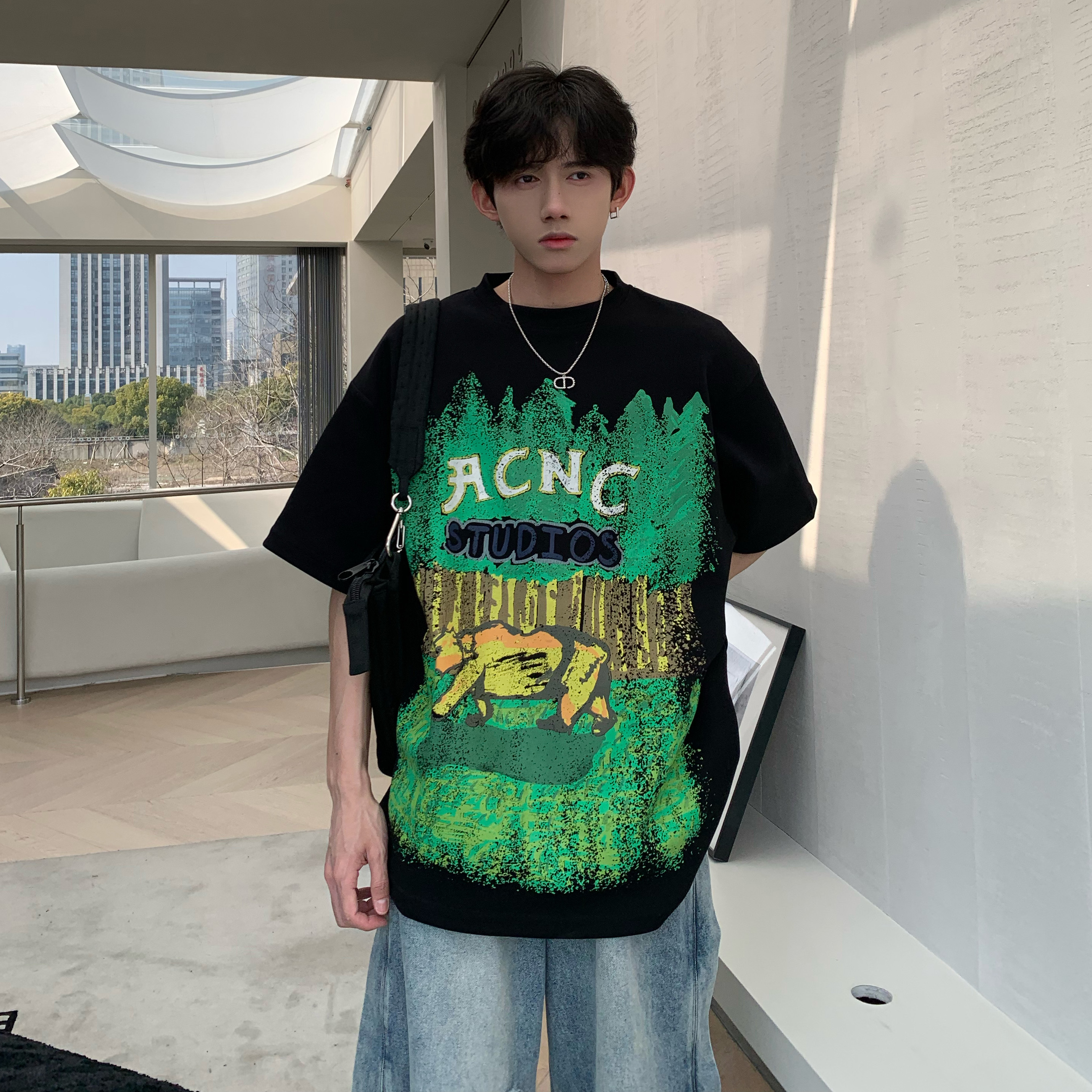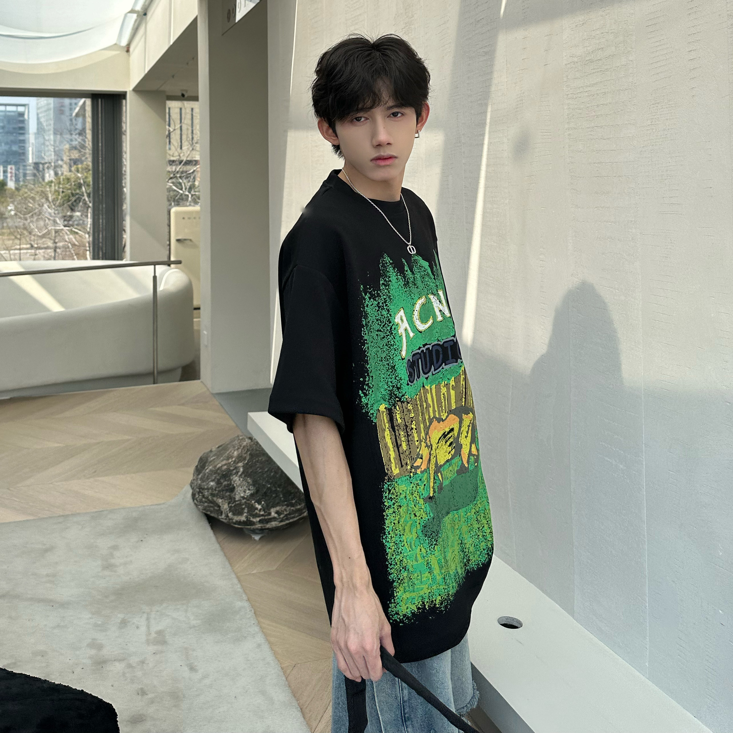 320g重磅T恤潮牌歐美高街純棉短袖oversize美式街頭西海岸七分袖