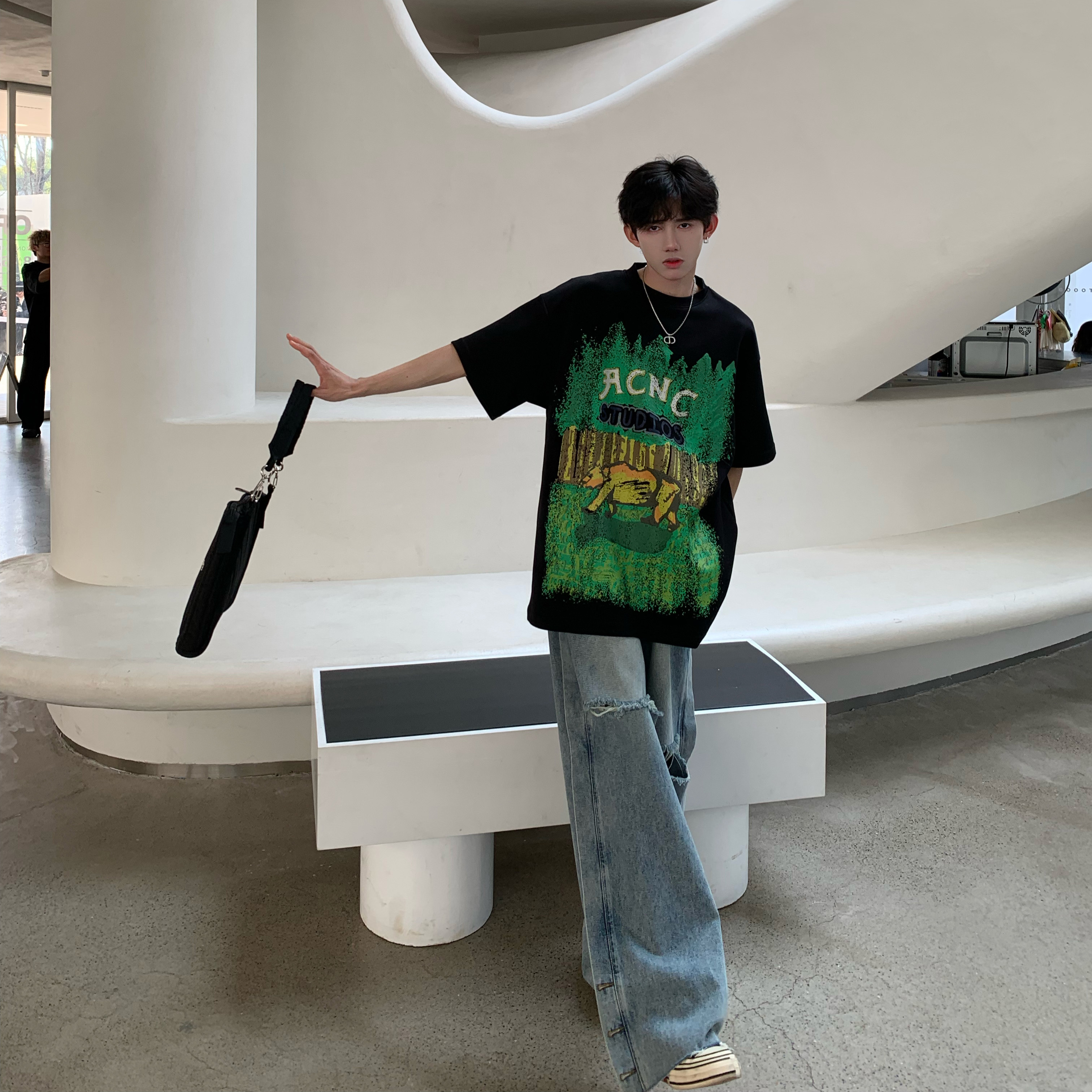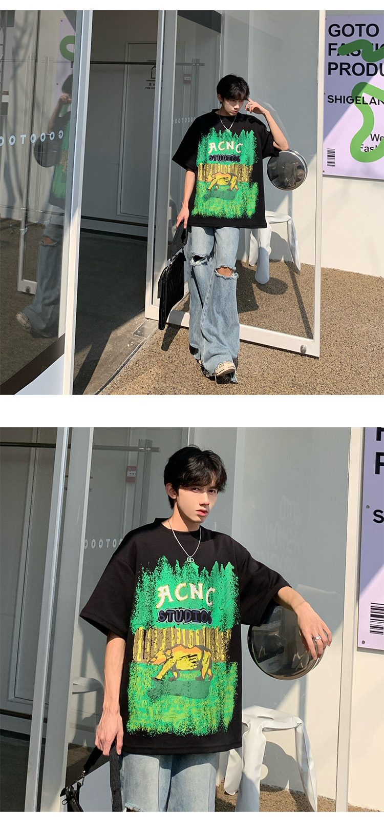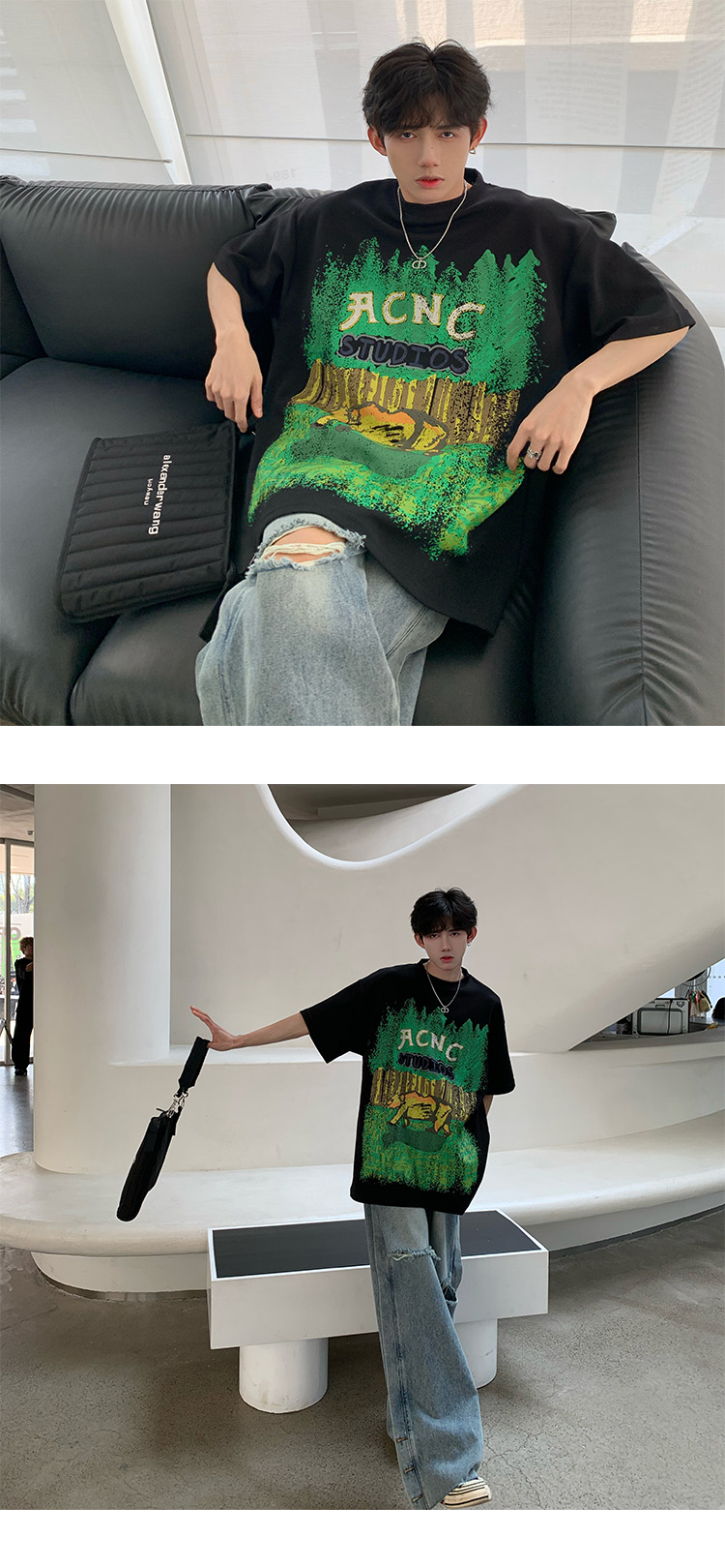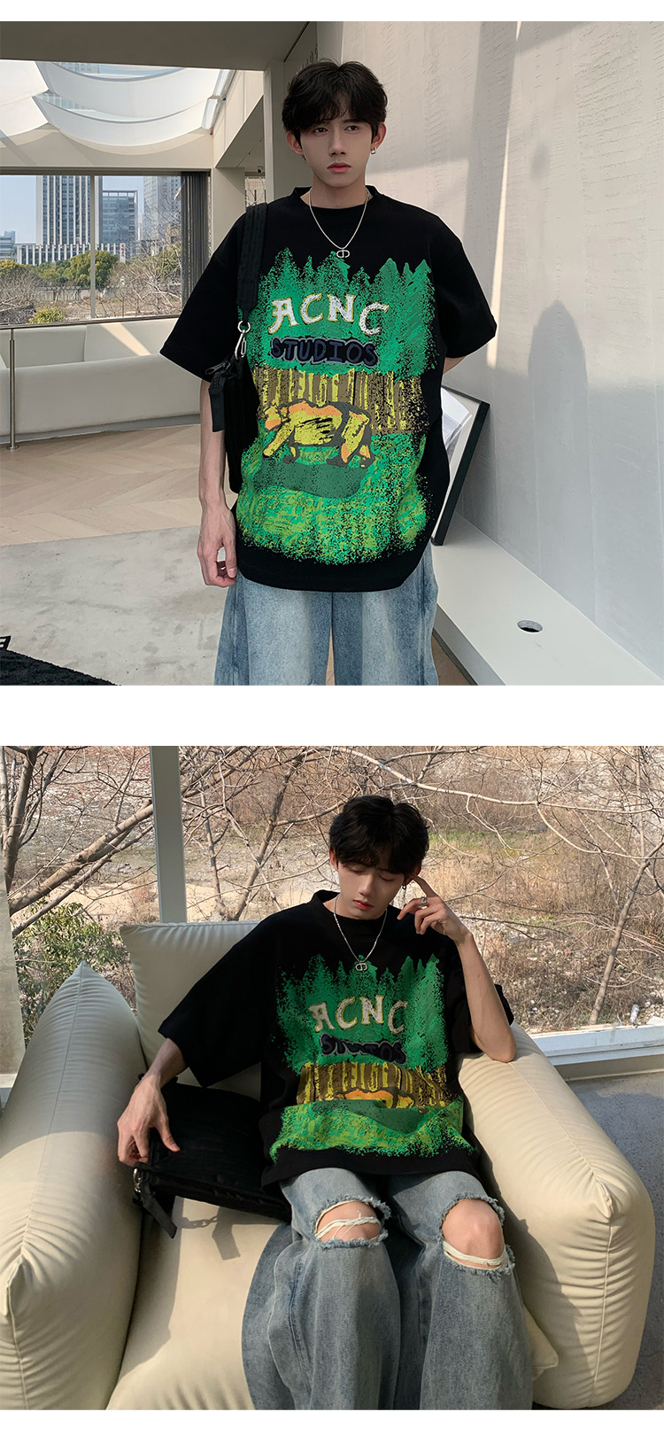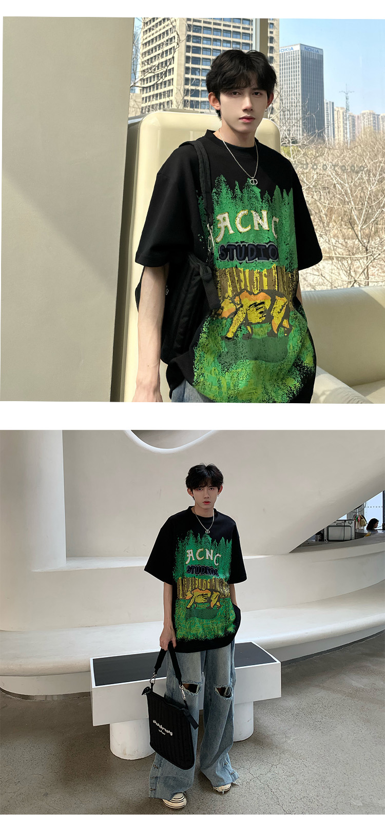 320g重磅T恤潮牌歐美高街純棉短袖oversize美式街頭西海岸七分袖