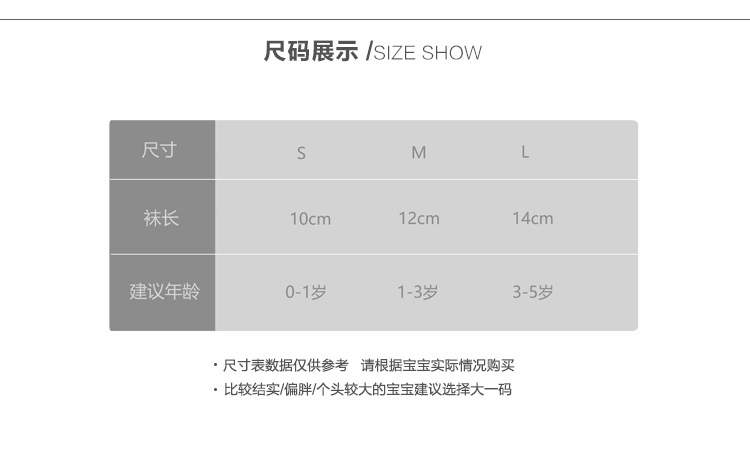 童袜尺码 S码0-1岁,M码1-3岁,L码3-5岁